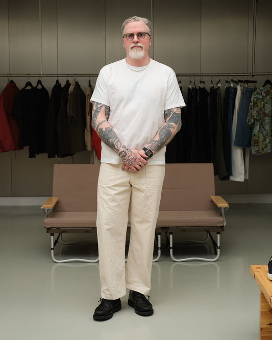 Seit 1996 verschiebt The Flat Head die Grenzen von japanischem Denim und klassischem Americana. Bekannt für markante Ausbleichungen, akribische Verarbeitung und eine kompromisslose Hingabe an Qualität, schafft die Marke Kleidungsstücke, die sich mit dem Tragen wunderschön entwickeln. Ein wahrer Maßstab für heritage-inspirierte Mode.