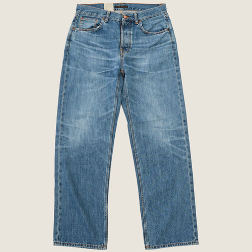 Die Tuff Tony Basement Tracks sind eine originalgetreue Nachbildung eines gut eingetragenen Paars Nudie Jeans, bei dem jede Ausbleichung, jeder Abrieb und jede Spur sorgfältig reproduziert wurde. Gefertigt aus hochwertigem Denim mit einer leuchtenden Indigo-Waschung und fast weißen Highlights, bieten sie eine weite, lockere Passform und einen eingetragenen Look schon ab dem ersten Tag. Als Teil der Life-Tracks-Reihe feiern sie Denim als Erzählung durch authentisches Tragen.