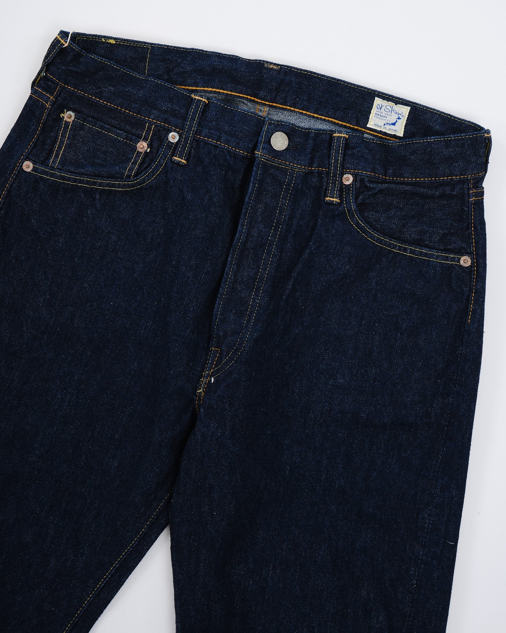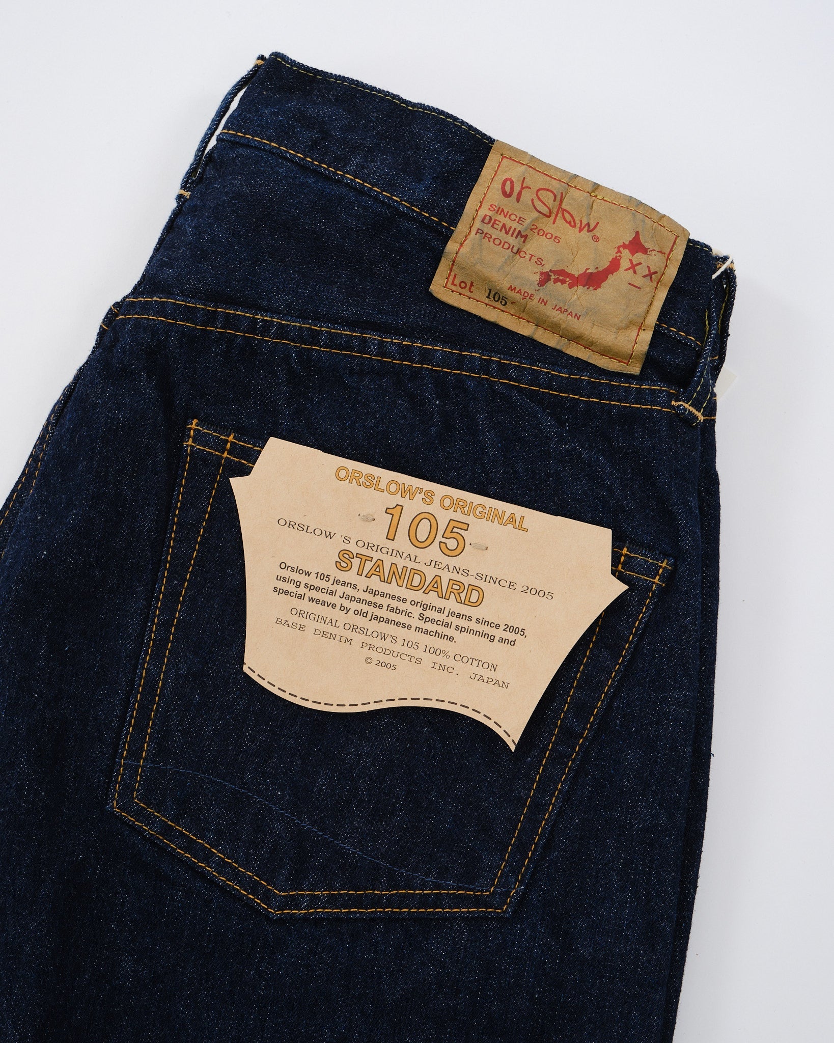Vorstellung der 105 STANDARD SELVEDGE DENIM ONE WASH, ein handgefertigtes Stück, das die Zeit überdauert. Seit 2005 wurden orSlow Jeans sorgfältig in Japan handgefertigt. Diese Jeans fangen perfekt die Essenz des Denims der Mitte des 20. Jahrhunderts ein. Sie werden aus japanischem Stoff hergestellt, um ein authentisches Aussehen und Gefühl zu erreichen. Durch den One-Wash-Prozess erhalten diese Jeans einen Indigoton, ohne dabei einzulaufen, während sie den Beindreh behalten, der Ihnen das natürliche Altern eines nicht sanforisierten Denims verleiht und einen Hauch von Vintage-Charme und Authentizität hinzufügt.