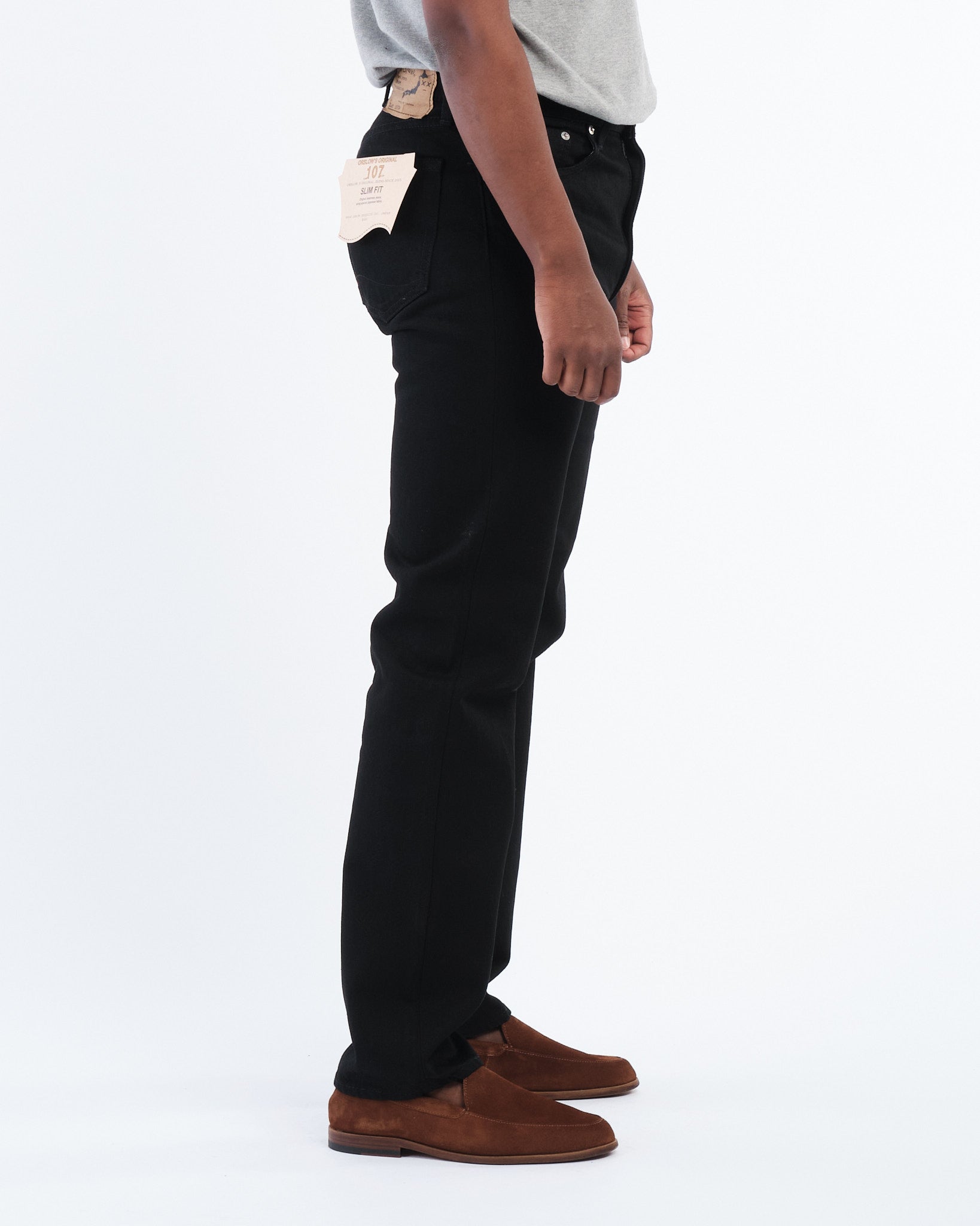 Entdecken Sie die Zeitlosigkeit von schwarzem Denim mit den 107 Ivy Fit Black Denim Jeans von orSlow. Diese Slim-Fit-Jeans sind der Inbegriff des durchdachten Ansatzes von orSlow zur Denim-Produktion, bei dem Baumwollfäden in seinem Atelier in Hyogo, Japan, von Hand ausgewählt werden. Gewebt auf einem Vintage-Webstuhl, haben diese Jeans eine robuste, authentische Haptik, die sich mit dem Tragen weich anfühlt. Ob mit Sneakern oder Loafern kombiniert, sie passen sich nahtlos jeder Gelegenheit an. Die Jeans verfügen über Gürtelschlaufen, fünf Taschen, einen Knopf- und Reißverschluss sowie ein Leder-Markenpatch. Hergestellt aus 100% Baumwolle, spiegeln diese Jeans den langsamen Ansatz von orSlow in einer schnelllebigen Modewelt wider und liefern einen dauerhaften All-Black-Style mit einem zeitgemäßen Slim-Fit und einem verjüngten Bein.