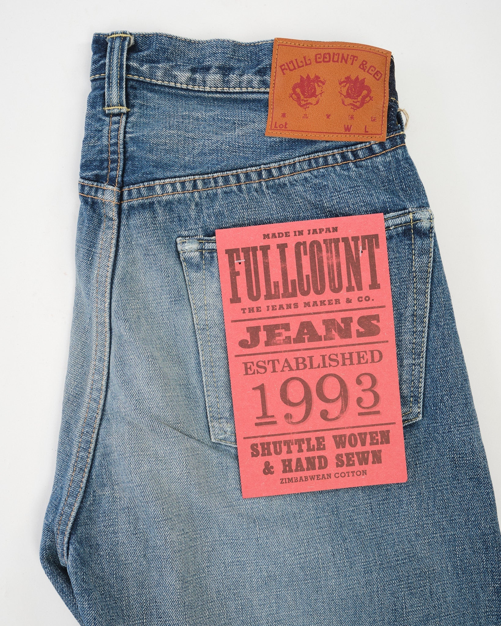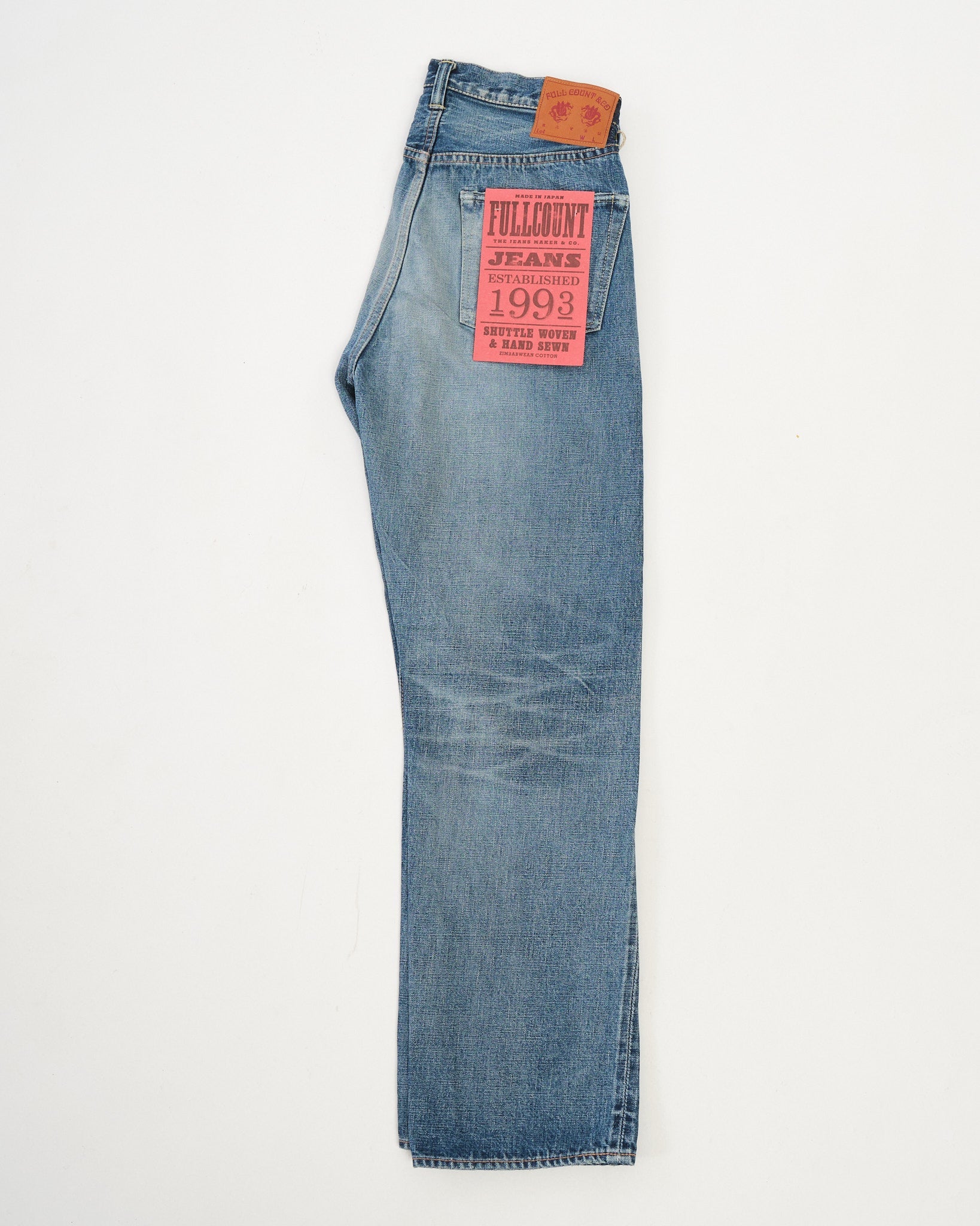 The Fullcount Dartford 1101 jeans carry a strong dose of rock ’n’ roll spirit. Inspired by a young Mick Jagger’s denim jacket and the legendary meeting of the Rolling Stones in Dartford, these jeans are finished with an authentic worn-in look. Made in Japan from 13.7oz original selvedge denim woven with 100% Zimbabwe cotton, they combine durability with a natural stretch that ensures all-day comfort. The processed indigo tone, yellowish fades, and crisp creases make them look like an old favorite from the very first wear. Built on old shuttle looms, each pair offers its own unique character, so no two are ever the same.
