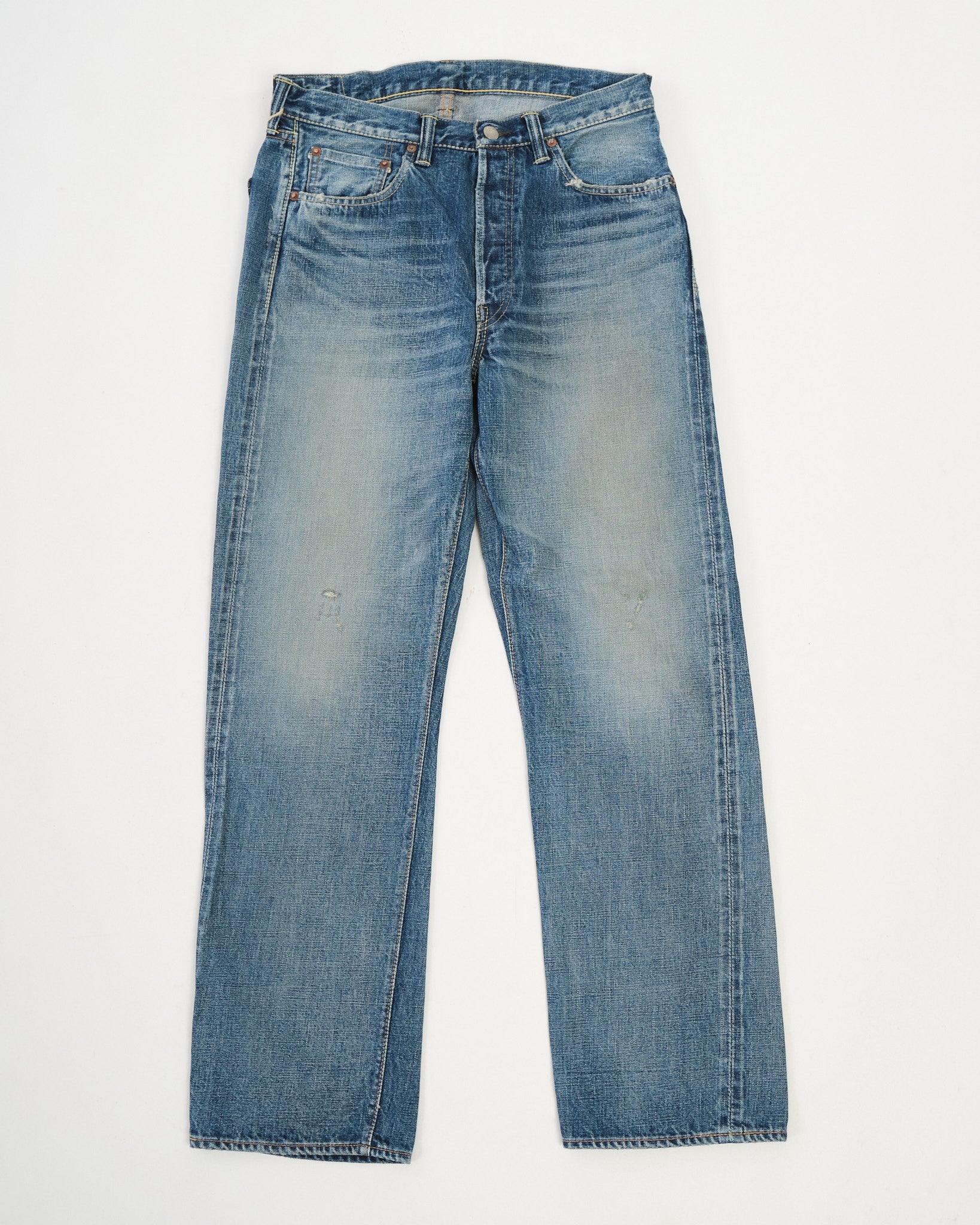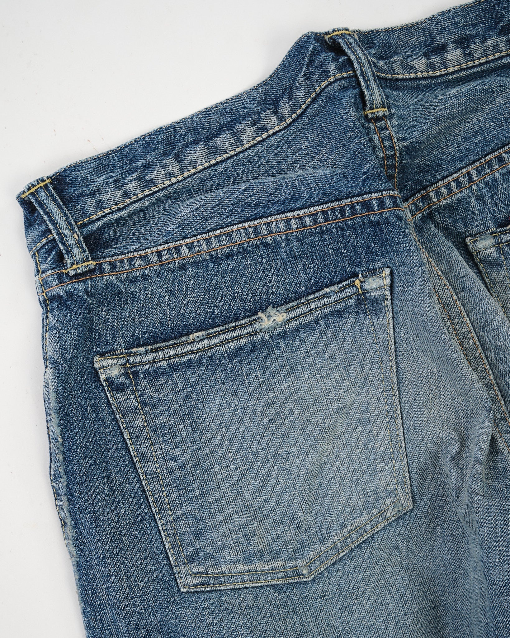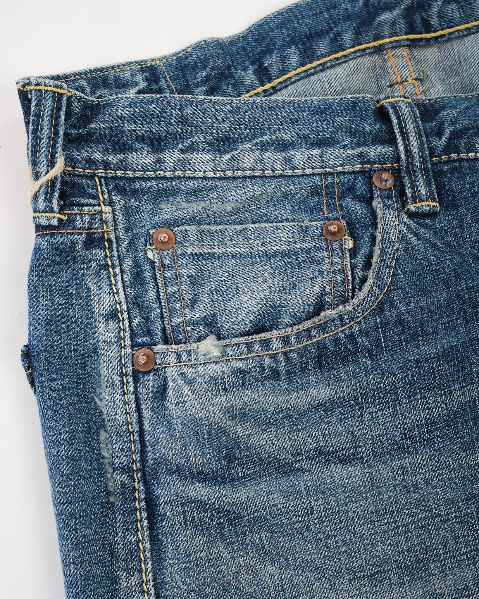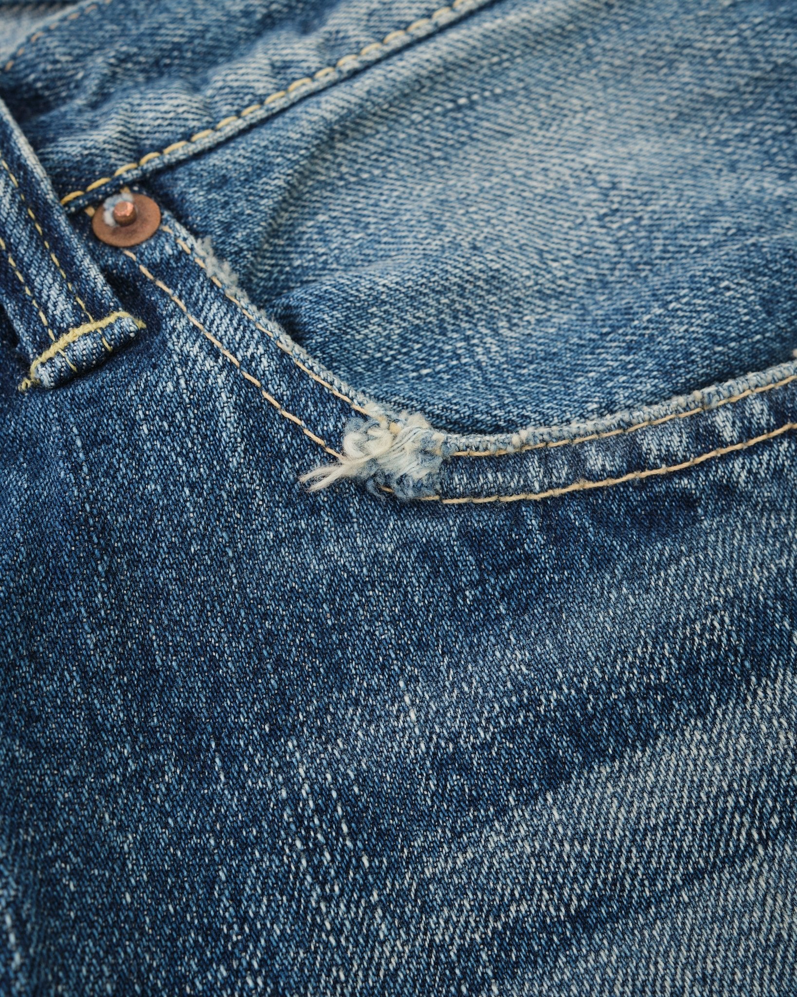 • Indigo blue with processed vintage fades