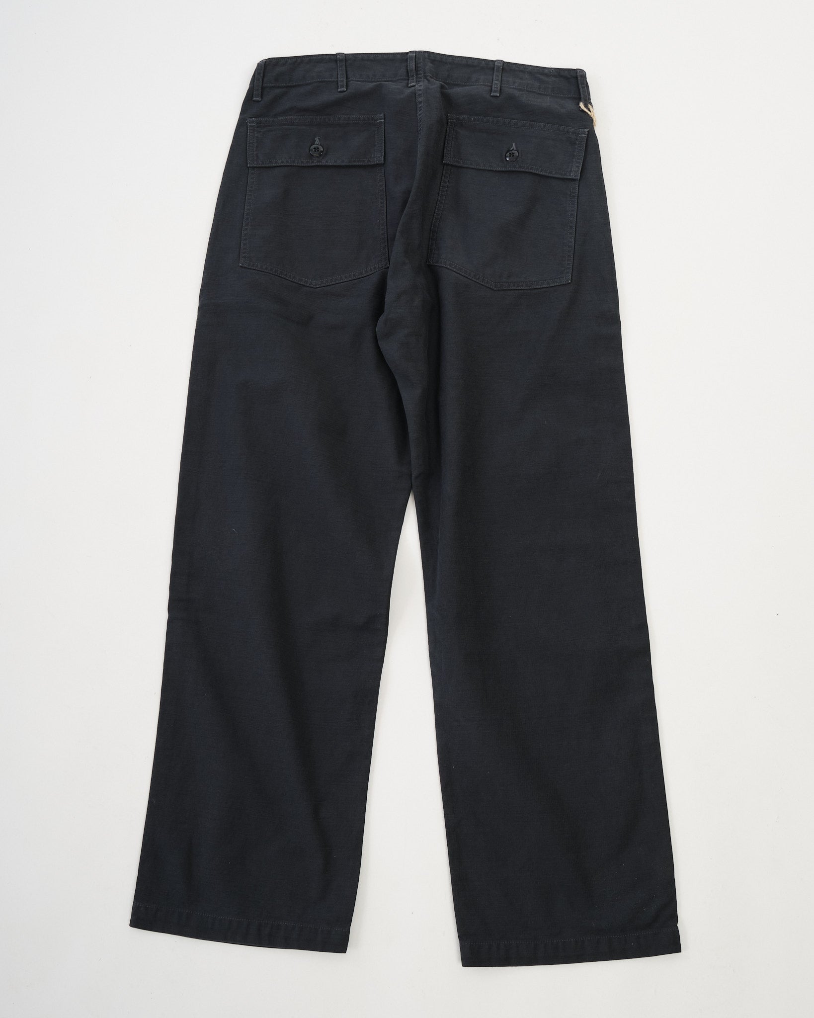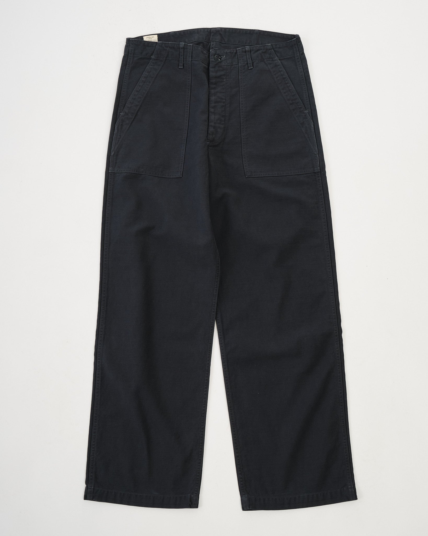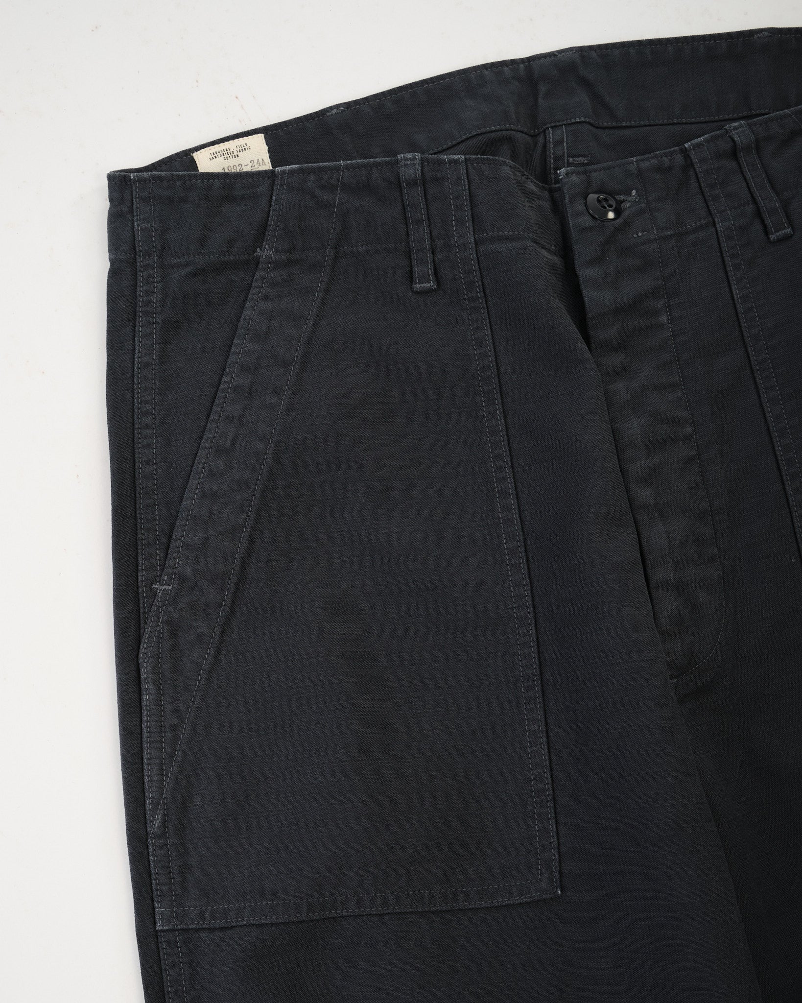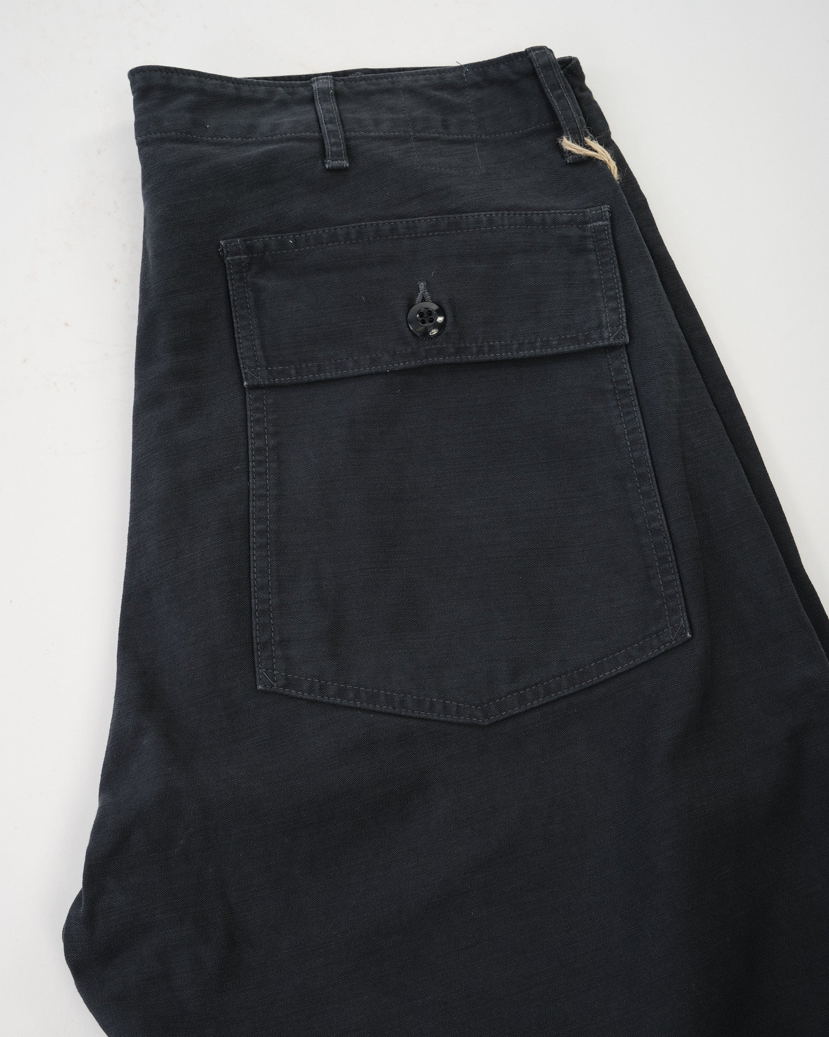 Die FULL COUNT 1992-24A UTILITY TROUSERS in BLACK (1992-24A) sind eine moderne Interpretation der klassischen Baker-Hose, bekannt für ihr militärisches Erbe und funktionales Design. Nach Jahren der Forschung und Verfeinerung wurden diese Hosen perfektioniert, um die authentische Weichheit und Haltbarkeit von Vintage-Arbeitskleidung einzufangen. Hergestellt aus 100% Baumwolle Militär-Rückensatin, wurde der Stoff bis auf die Fasern sorgfältig analysiert, um das geschmeidige Gefühl der originalen Baker-Hosen zu replizieren. Der mit Schwefel gefärbte schwarze Stoff gewährleistet einen allmählichen Alterungsprozess, der mit der Zeit eine einzigartige Patina entwickelt. Zusätzlich verbessert eine Ozonbehandlung den eingetragenen Komfort und die Textur des Stoffs vom ersten Tragen an.