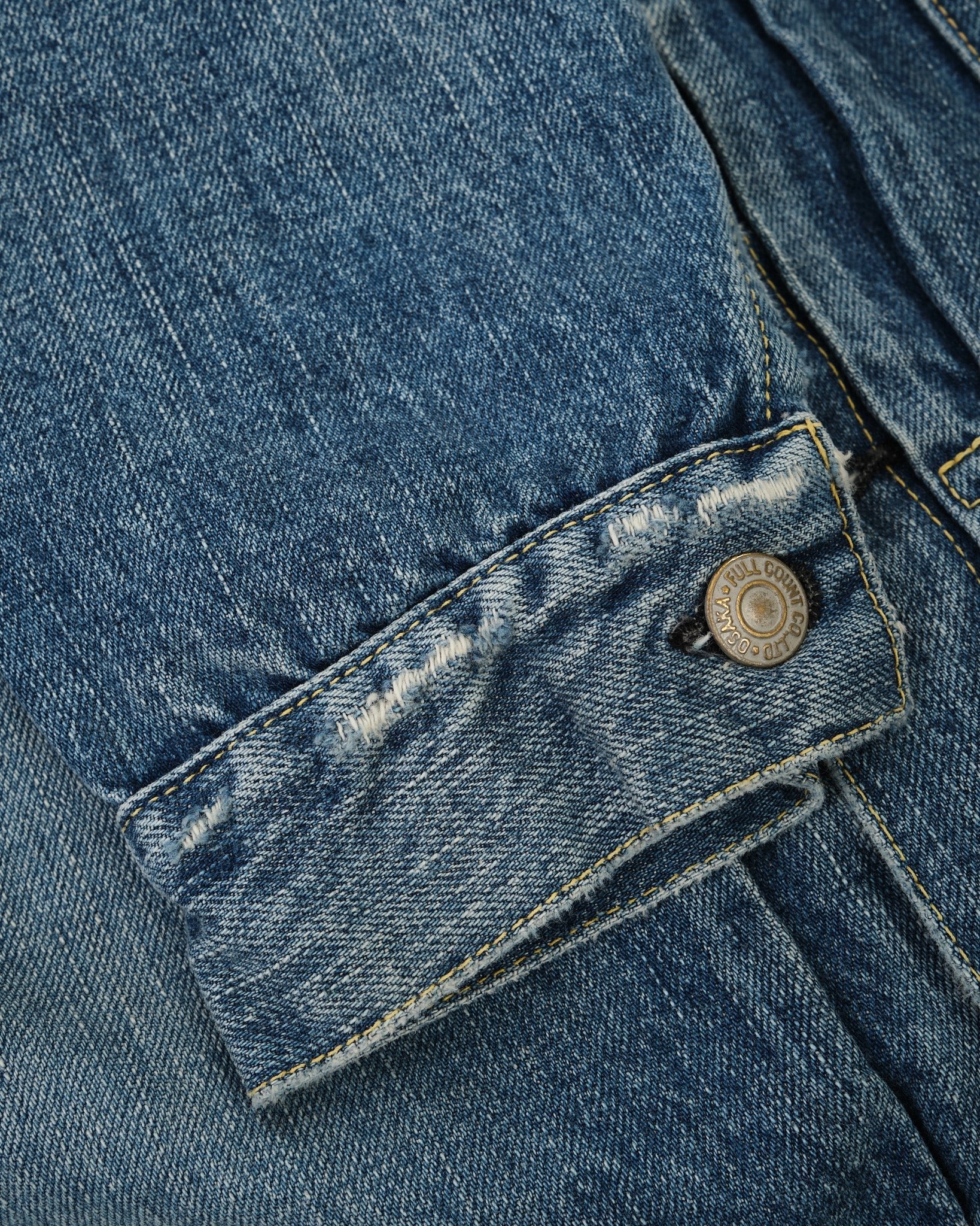 • Tiefes Indigogewebe, das mit der Zeit eine einzigartige Patina entwickelt