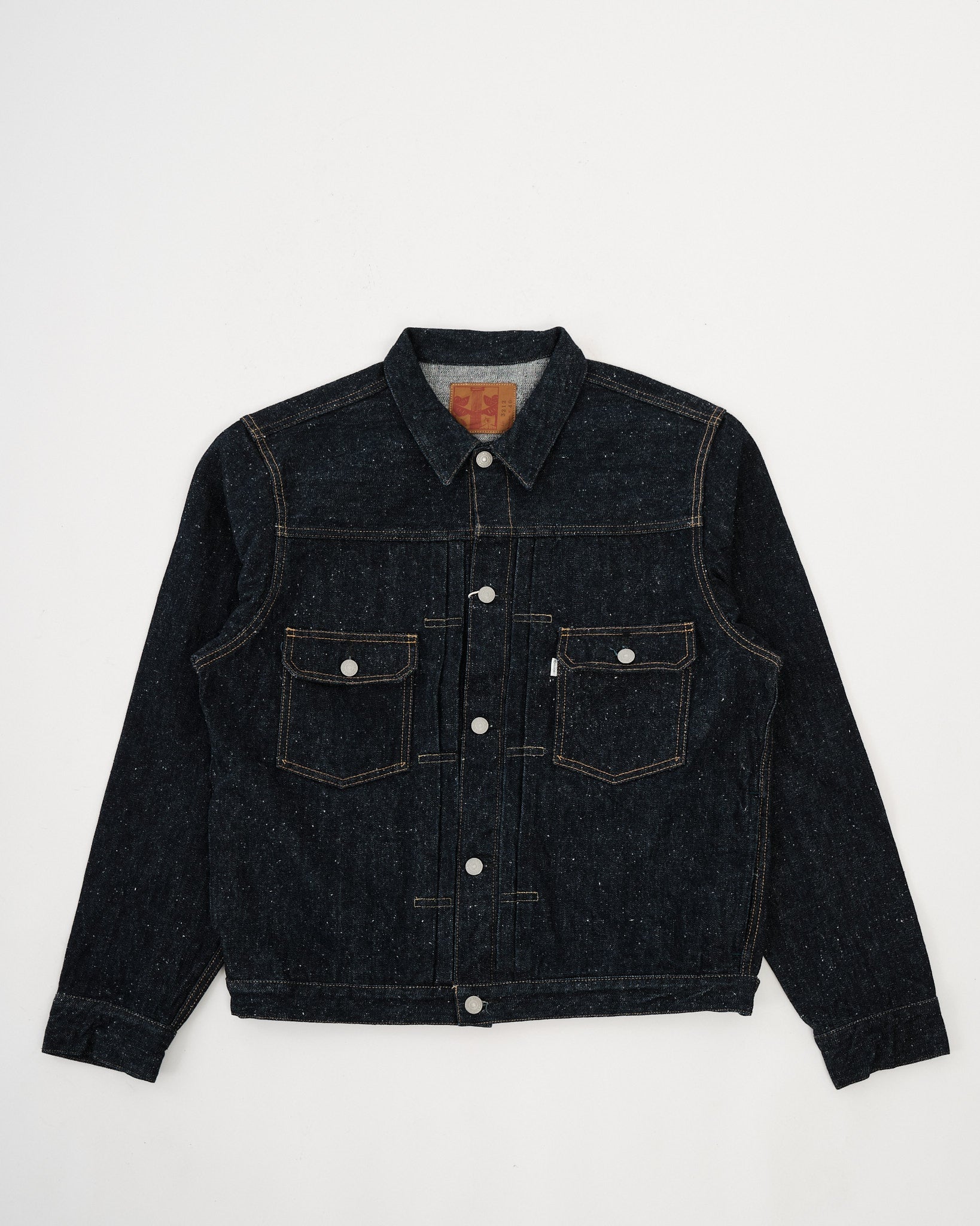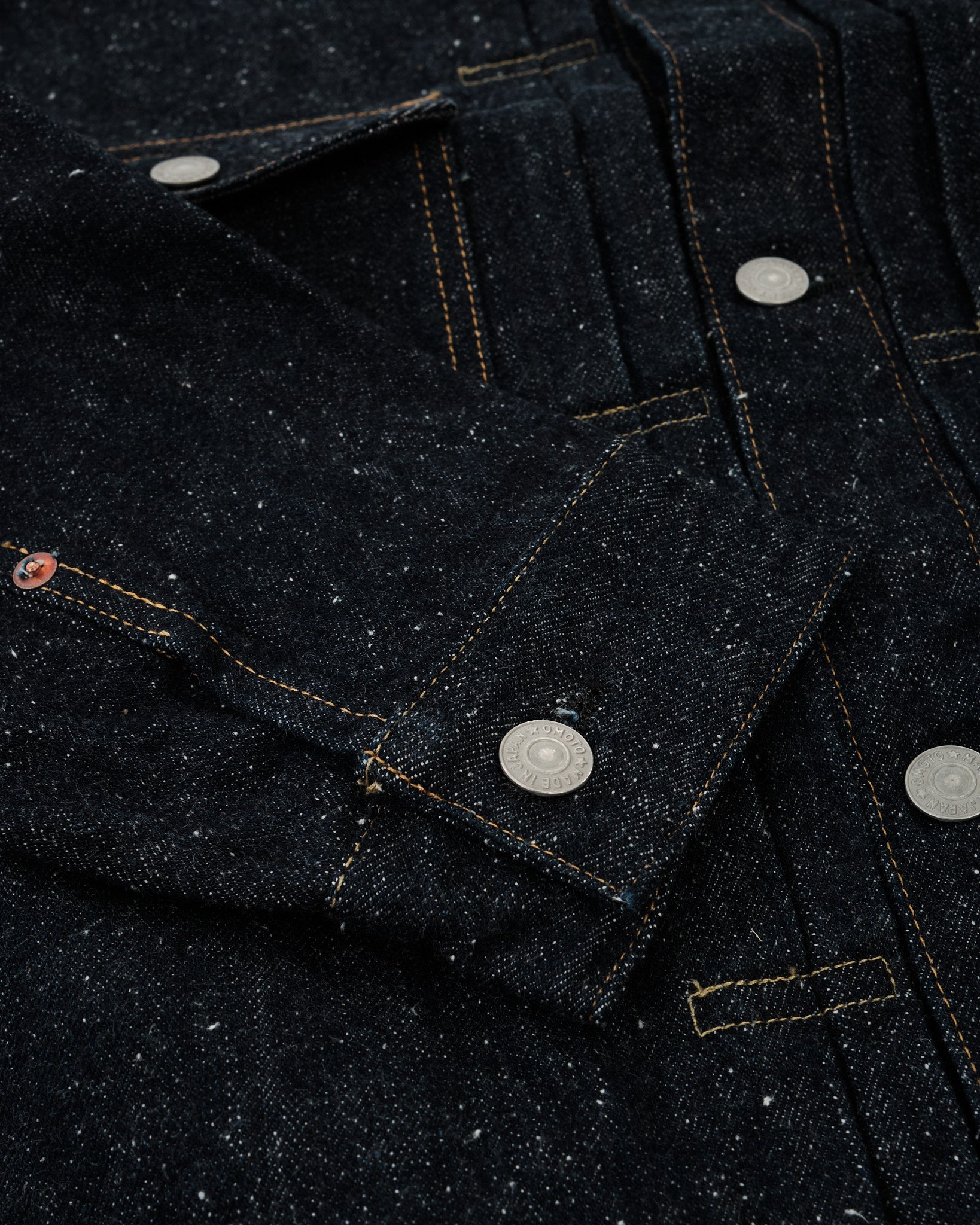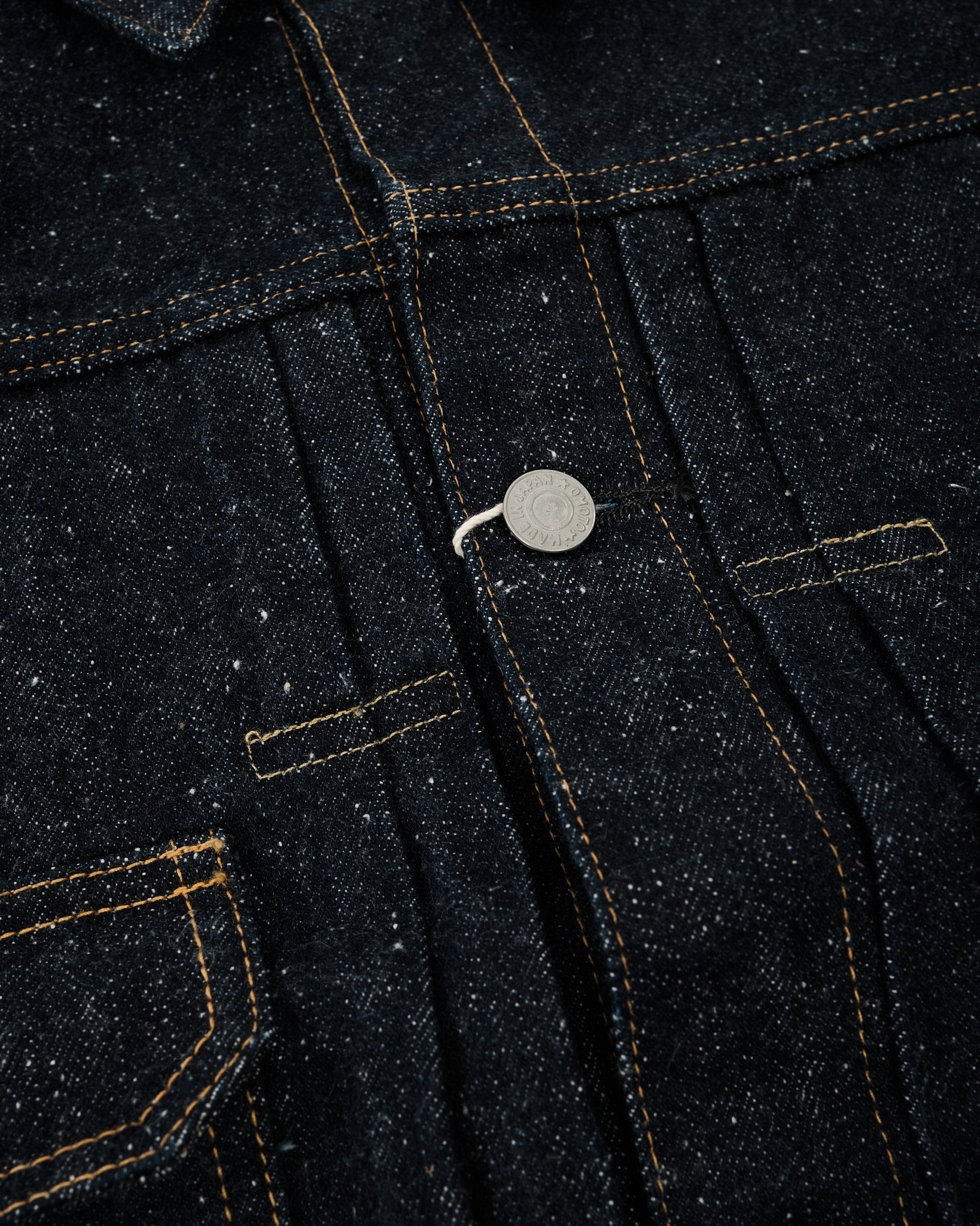 Die OMOTO 3212 2nd Type Denim Jacke ist eine moderne Hommage an klassische Arbeitskleidung, gefertigt aus 16oz Nep-Denim mit einer reichen, texturierten Oberfläche. Die Kettfäden beinhalten kurze Baumwollfasern (27mm oder weniger), was eine robuste, unebene Textur erzeugt, während die Schussfäden unter Verwendung der traditionellen "Gara-bo"-Technik gesponnen werden, was eine rustikale, handgesponnene Ästhetik mit einer atmungsaktiven, luftigen Struktur verleiht.