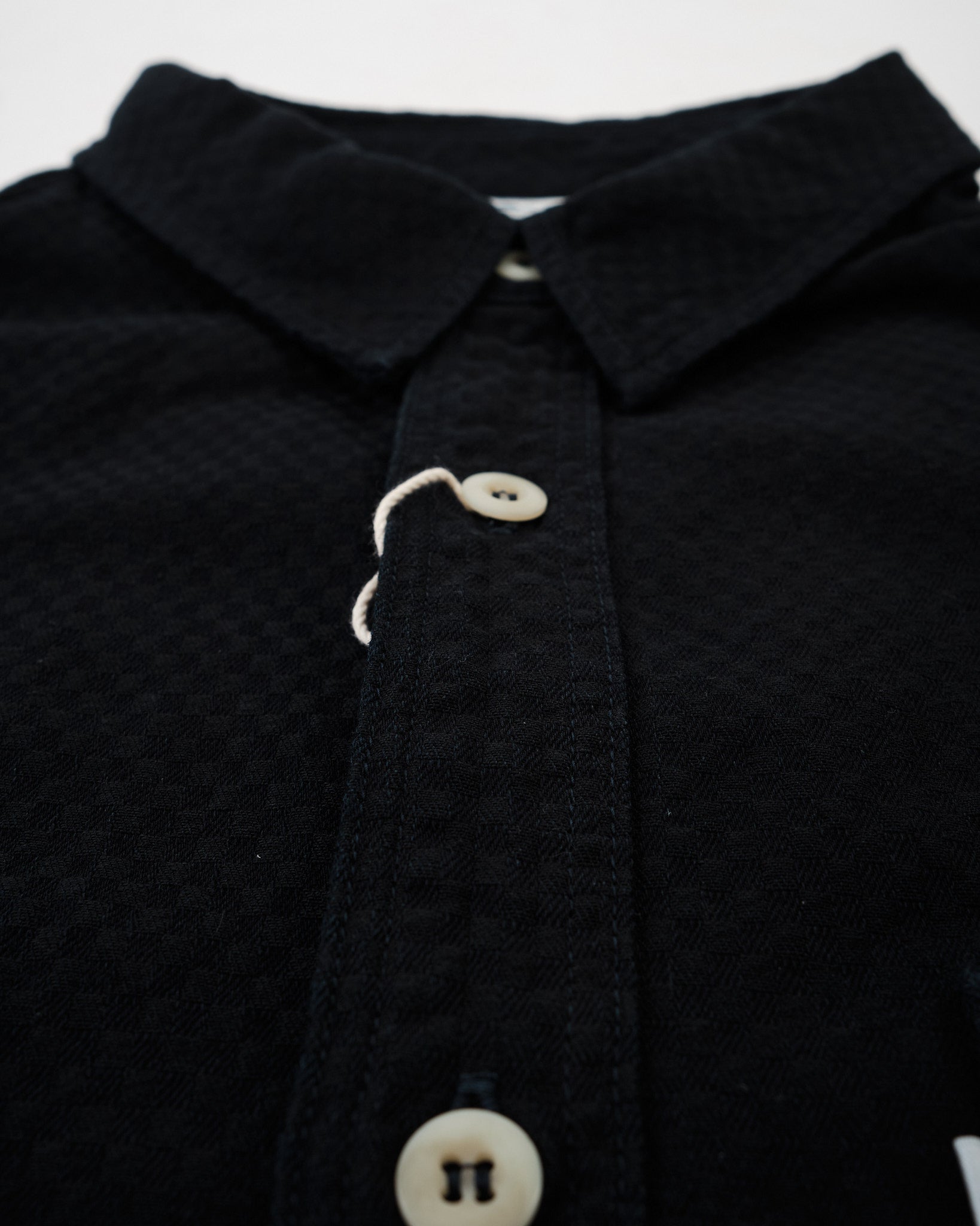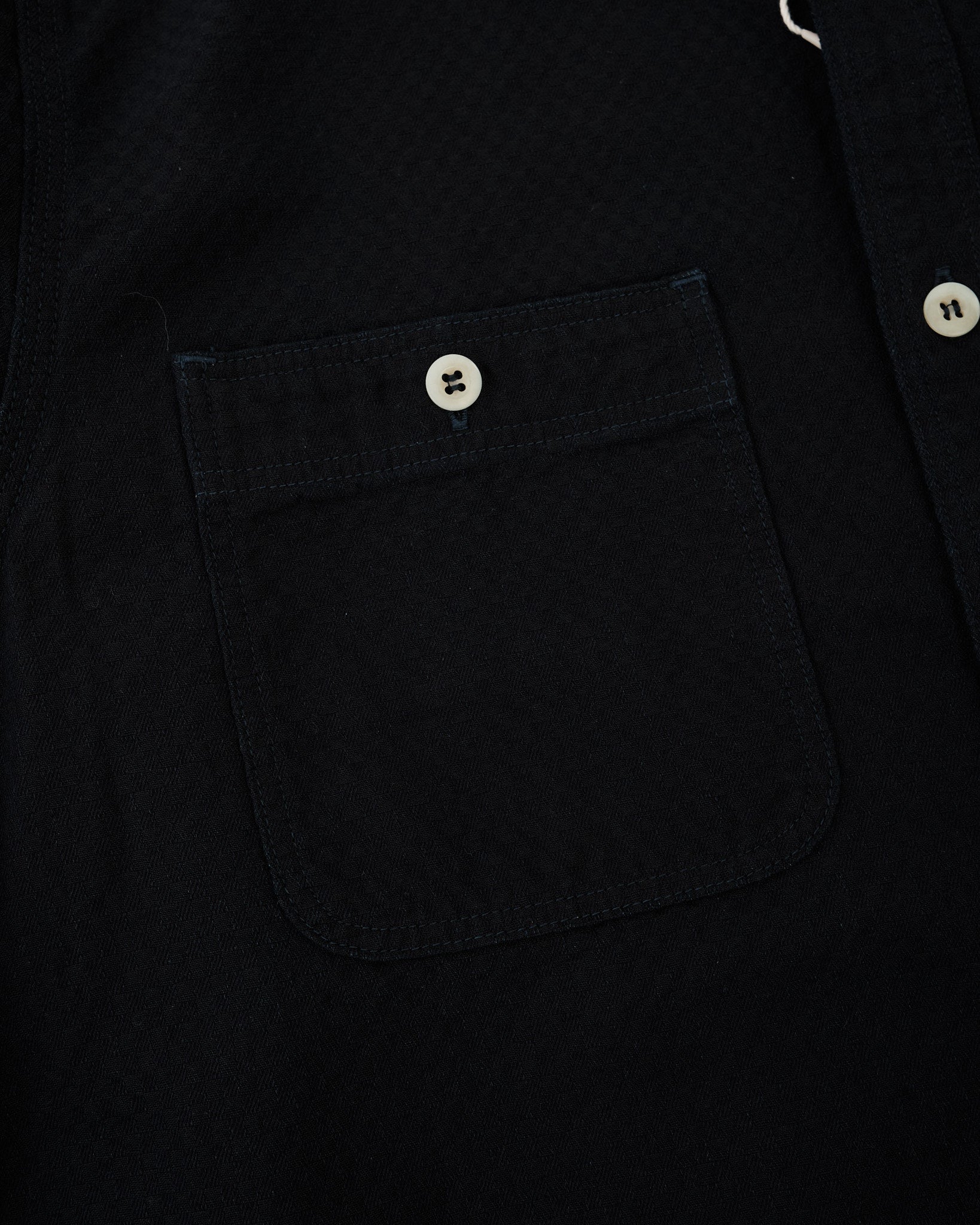 Stilnummer: 5019 8oz Ichimatsu-Denim mit einem leichten, aber strapazierfähigen Gefühl Merkmale des traditionellen Ichimatsu-Musters aus der Edo-Zeit Inspiriert vom Kabuki-Schauspieler Sanogawa Ichimatsu, neu interpretiert in Denim Indigogefärbt für tiefe, kontrastreiche Ausbleichungen, die sich mit dem Tragen entwickeln Gewebt mit Denim-Garnen, um die Tradition zu bewahren und gleichzeitig die Strapazierfähigkeit zu gewährleisten Atmungsaktiver, leichter Stoff für das ganze Jahr OMOTOs blau-grünes „MIMI“-Selvedge für eine authentische Denim-Berührung Verstärkte Nähte & originale Metallknöpfe für langanhaltende Strapazierfähigkeit Klassische Arbeitshemd-Silhouette, die Erbe und Funktionalität verbindet