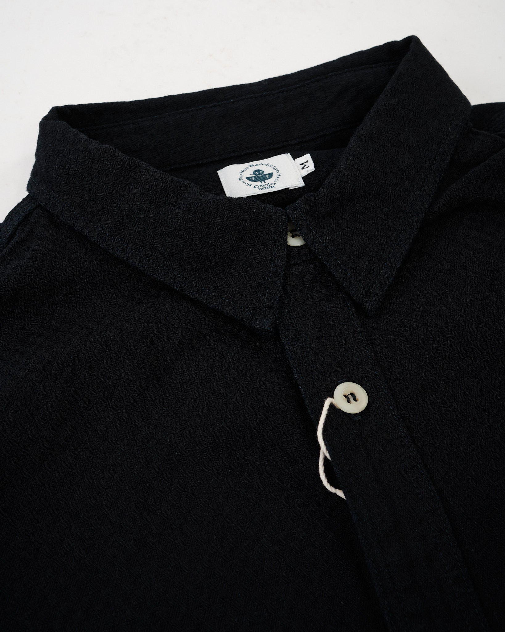 Zu den Schlüsseldetails gehören OMOTOs blau-grünes “MIMI”-Selvedge, originale Metallknöpfe und verstärkte Nähte für langanhaltendes Tragen. Eine klassische Arbeitshemd-Silhouette macht dies zu einem zeitlosen Grundnahrungsmittel, das Erbe-Handwerkskunst mit modernem Styling verbindet.