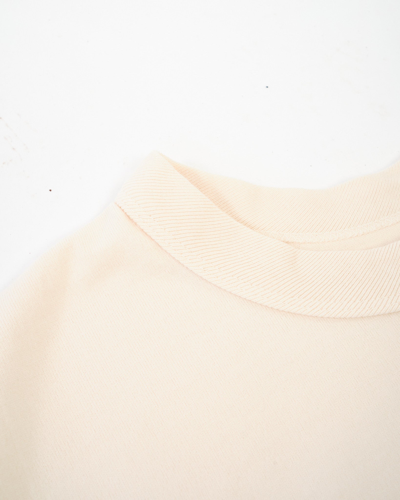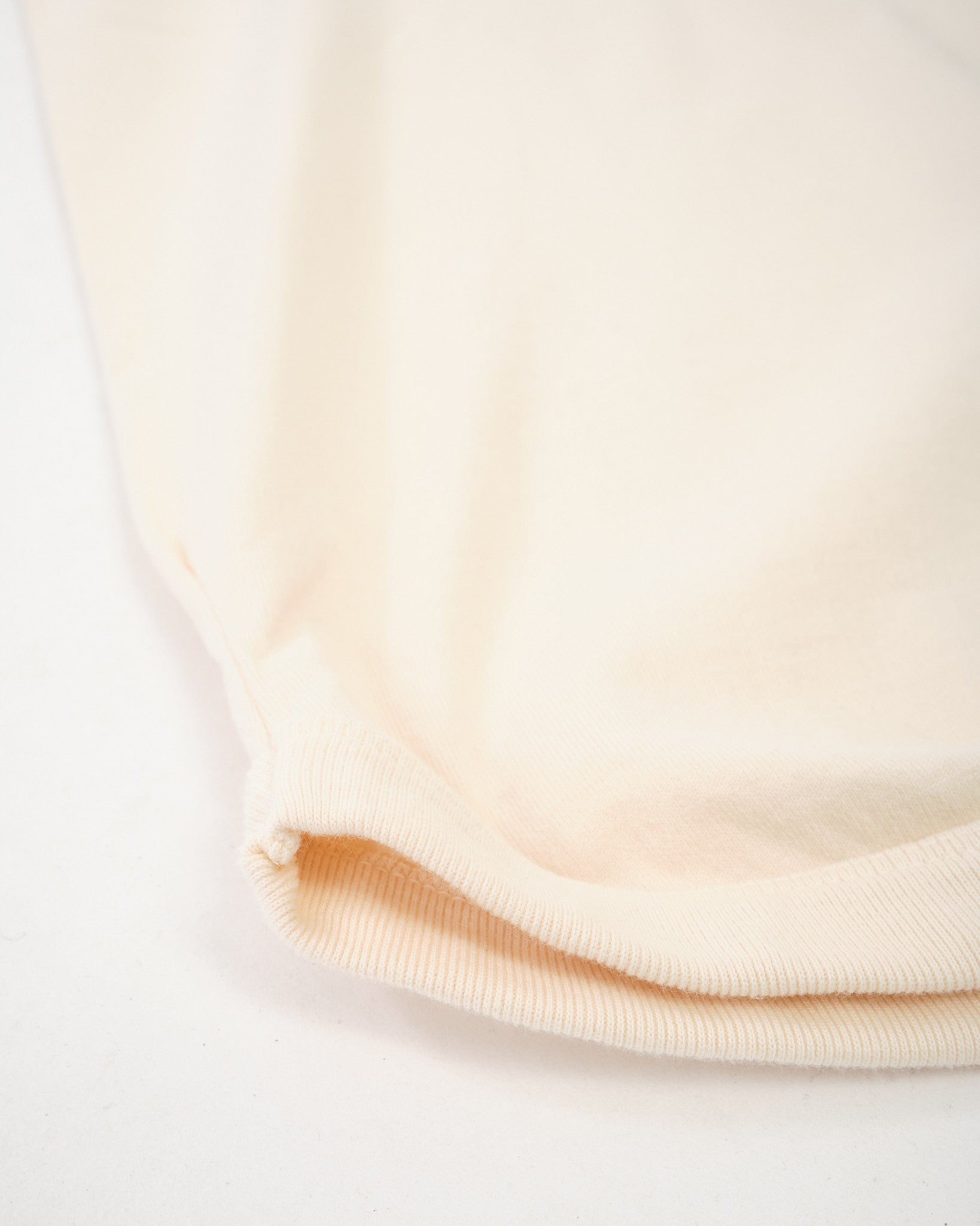 The Fullcount Flat Seam Heavyweight T-shirt in ecru is built to feel like a classic American tee, but with Japanese craftsmanship at its core. Made from 100% cotton with a 30/2 tight tension jersey stitch, this piece is heavyweight yet surprisingly soft, thanks to a spinning method that traps air in the yarn. Each tee is circular knitted per size, giving it a smooth, tubular body with no side seams and a natural fit that only improves over time. The collar, cuffs, and hem are reinforced with rib and binder construction to prevent twisting, while the four-needle flat seam sleeves keep it comfortable and irritation-free. This is a T-shirt that’s made to age gracefully and stay in your rotation for years.