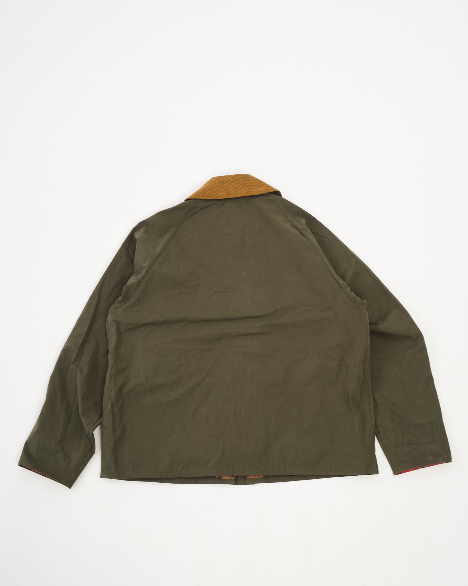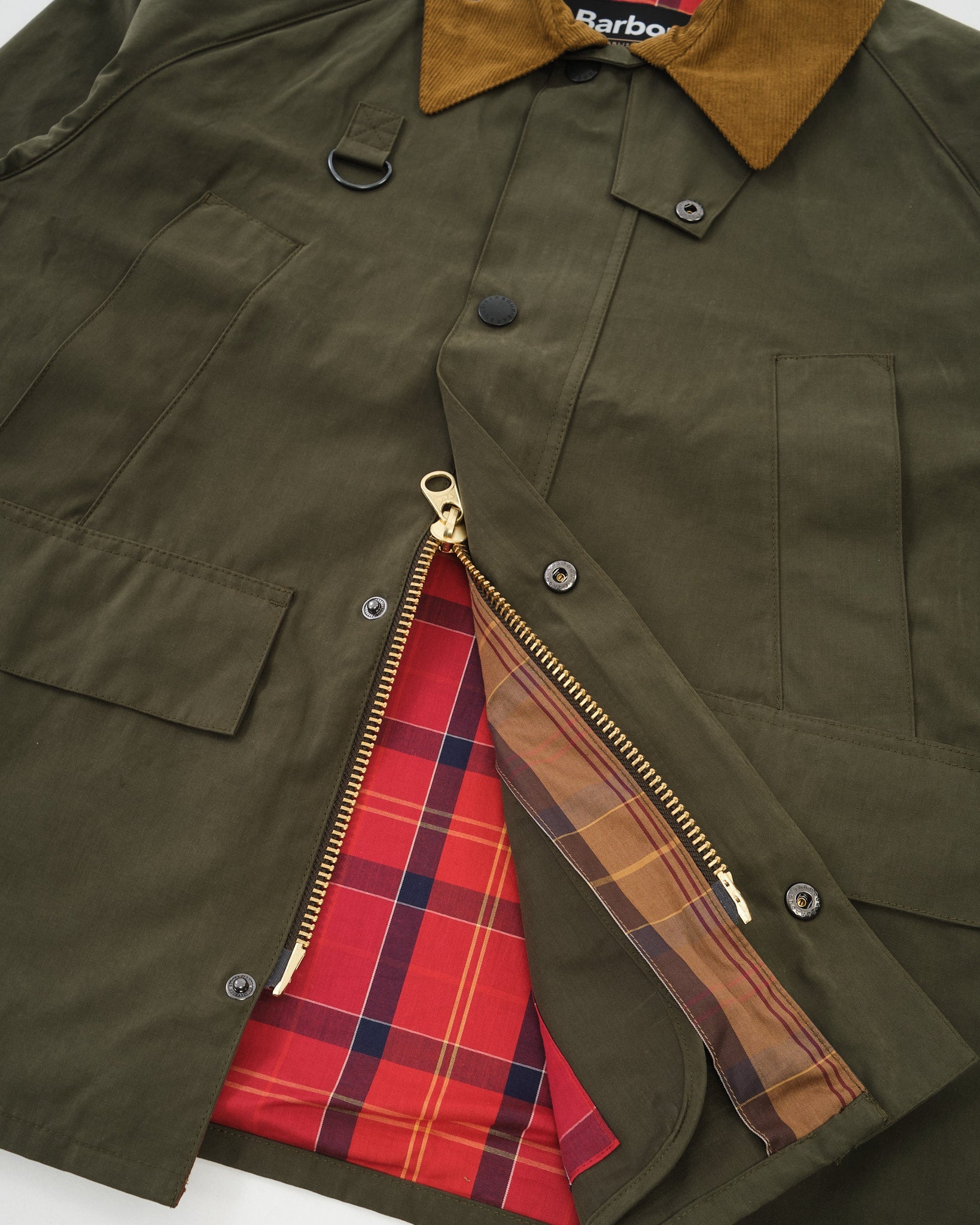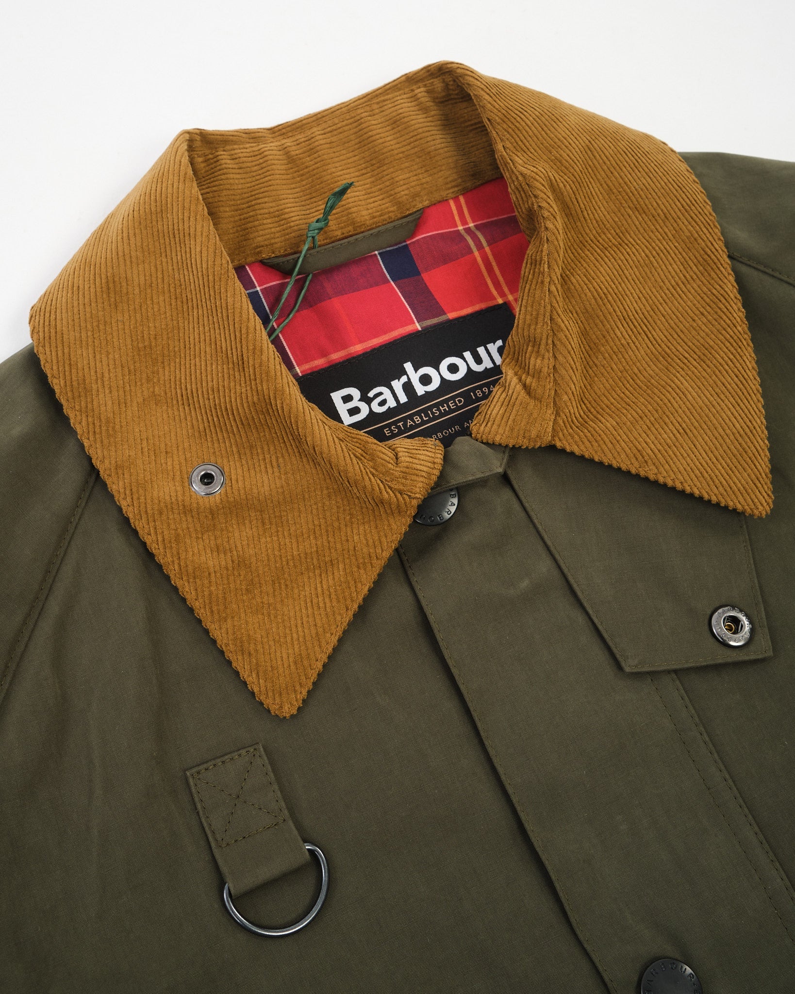 Die Barbour Solar Spey Freizeitjacke in Salbei ist eine limitierte Neuinterpretation der klassischen Spey-Silhouette, herausgegeben zur Feier des Lunar Neujahrs. Hergestellt aus Barbours charakteristischem gewachstem Baumwoll-Touch-Stoff, bietet sie eine leichte, wetterfeste Außenschicht mit einem knackigen Finish. Das Innere zeichnet sich durch eine kühne rote Version von Barbours ikonischem Tartan-Futter aus, das im chinesischen Kulturkreis Glück symbolisiert. Designmerkmale umfassen einen Cordkragen mit Kehlriemen, zwei große Frontklappentaschen, einen Reißverschluss vorne mit Druckknopf-Sturmleiste und einen roten oberen Nietenverschluss begleitet von einem Barbour Lunar Neujahr Anstecker. Diese Jacke verbindet Erbe-Design mit festlichen Details und macht sie zu einem herausragenden Stück für die Saison.
