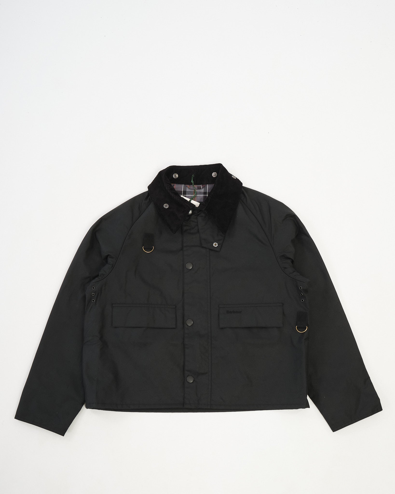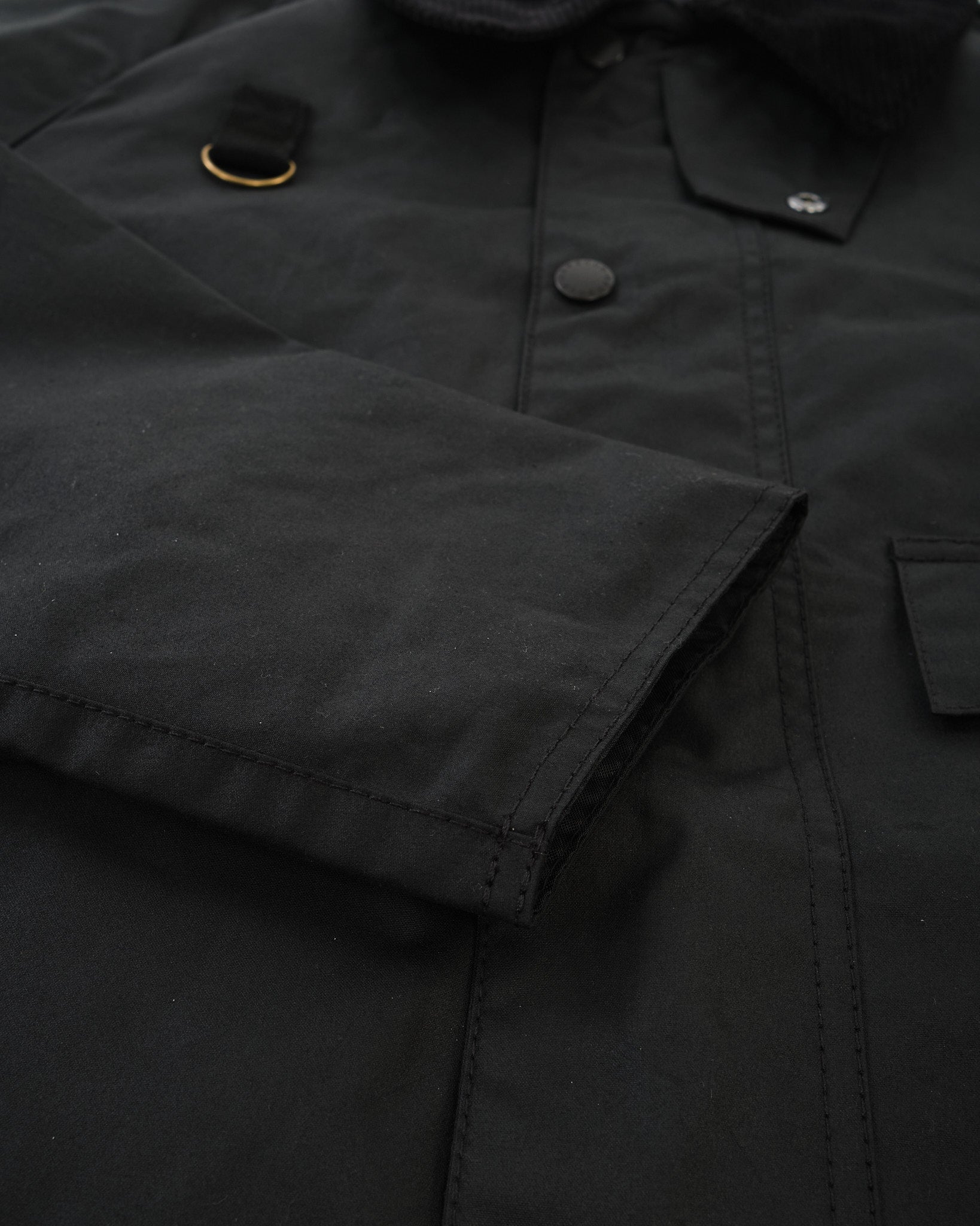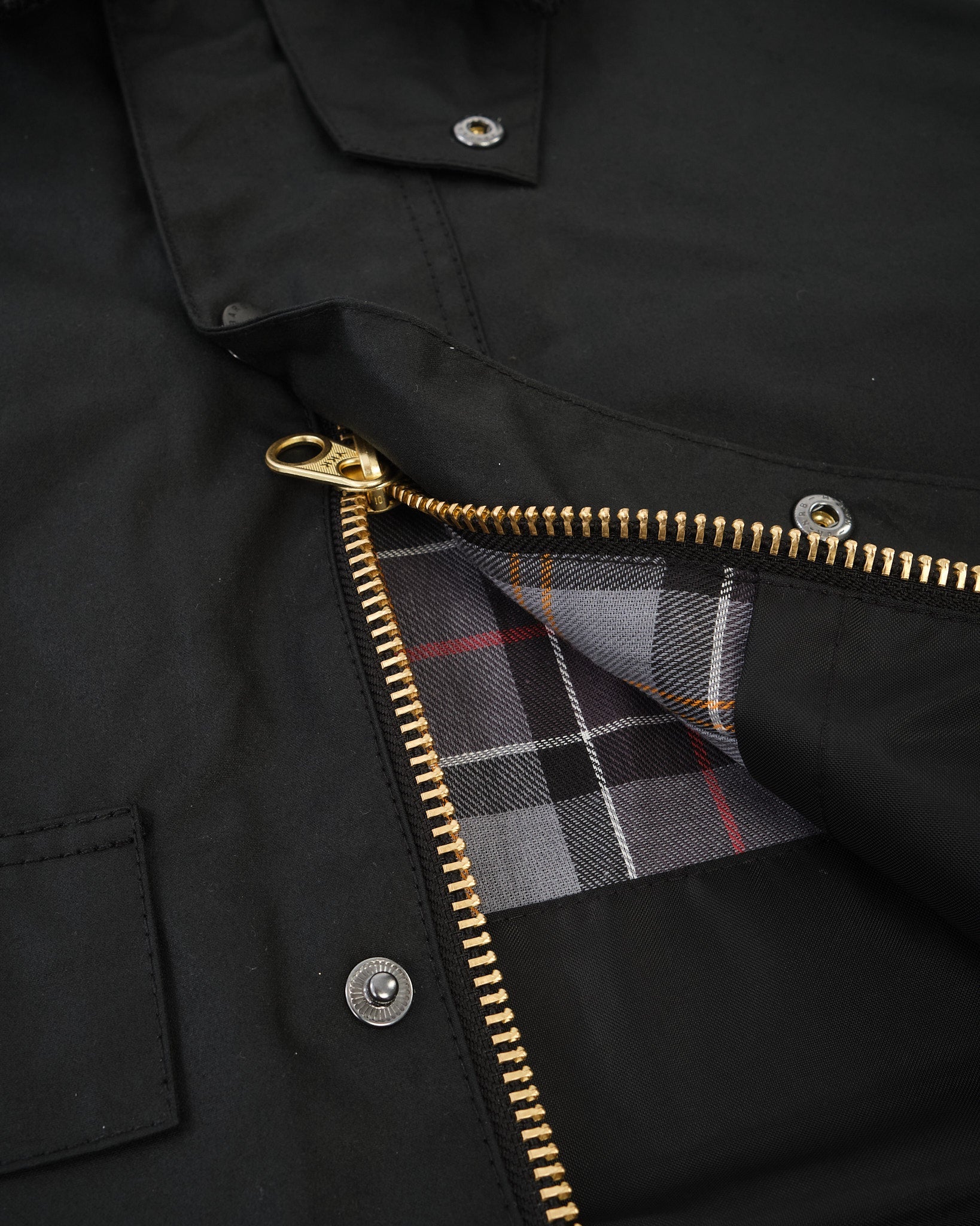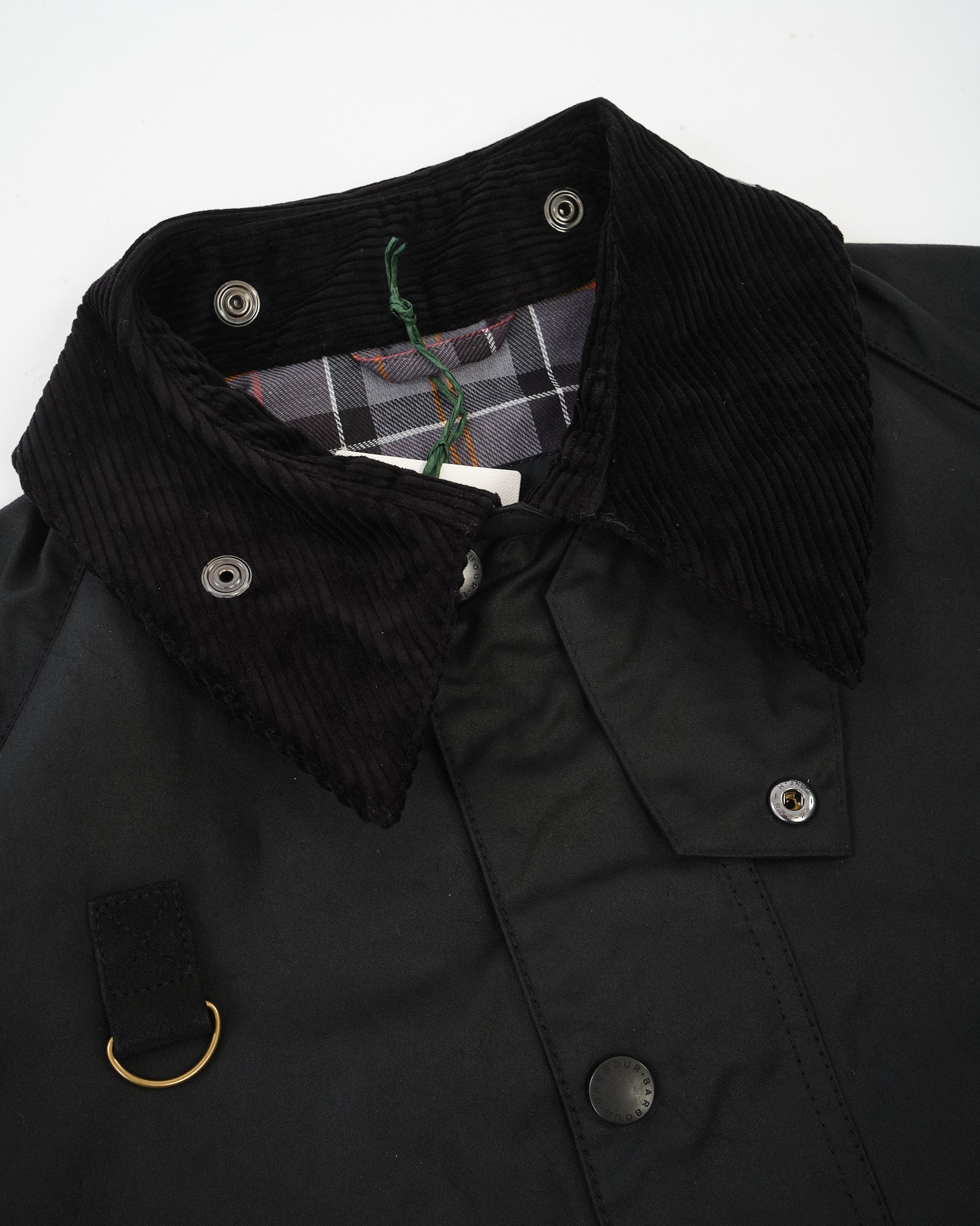 Die Barbour Spey Wax Jacke in Schwarz ist ein wahres Symbol der britischen Außenbekleidung, ursprünglich entworfen für das Fliegenfischen in den schottischen Highlands. Ihre charakteristische kurze Passform, Raglanärmel und kastenförmige Silhouette bieten Bewegungsfreiheit und zeitlose Funktionalität. Hergestellt aus 6oz Sylkoil gewachster Baumwolle, bietet sie zuverlässigen Wetterschutz mit einem leicht abgenutzten, matten Finish. Details wie der Kordkragen mit Kehlriemen, die Sturmklappe über dem Messingreißverschluss und zwei Druckknopf-Ballon-Taschen bleiben ihrem Erbe treu, während Barbours klassisches Tartan-Futter eine verfeinerte Note hinzufügt. Langlebig, praktisch und unverkennbar Barbour — eine Jacke, die für den Gebrauch durch die Jahreszeiten gebaut wurde.