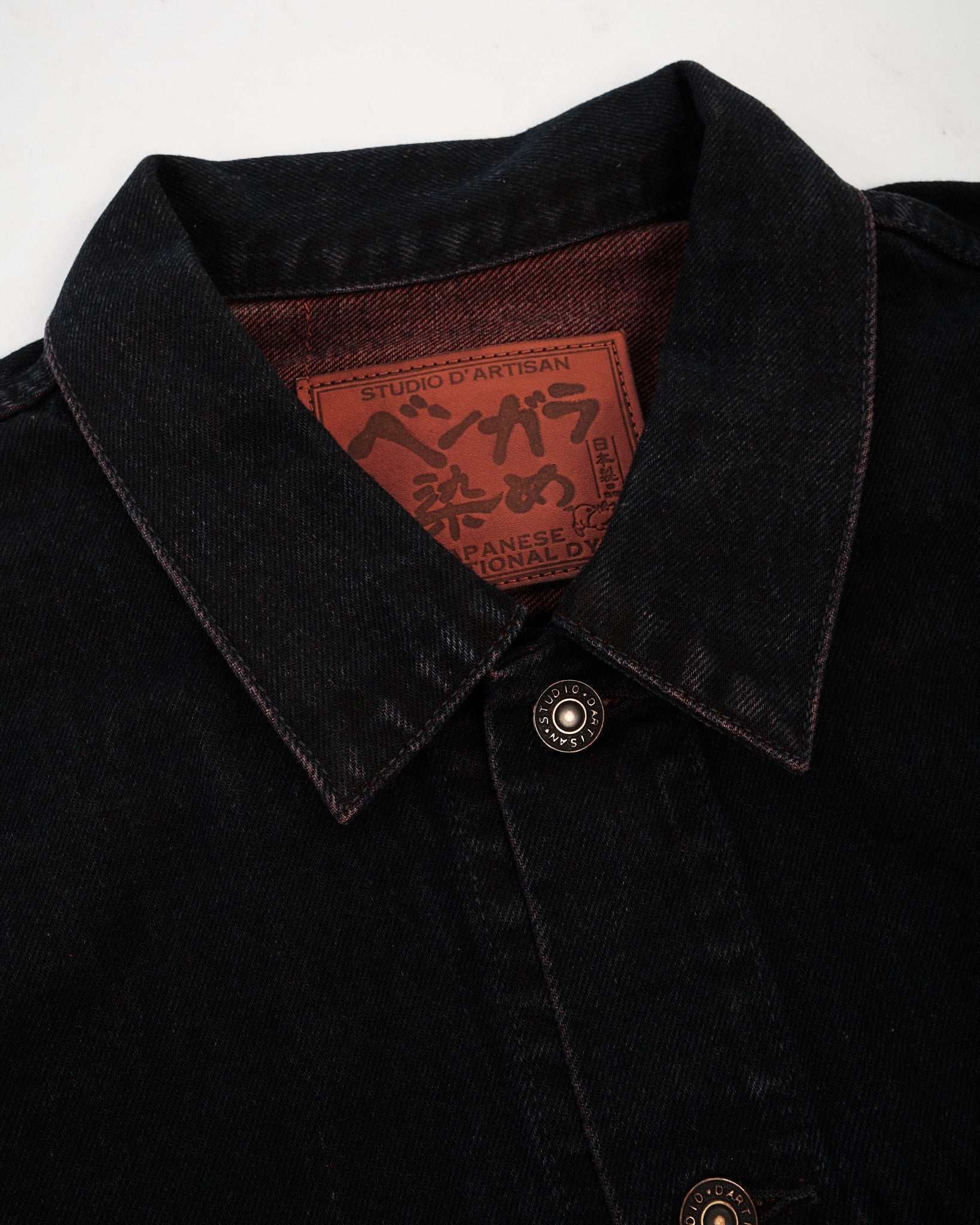 Die STUDIO D'ARTISAN Bengala-Färbung Denimjacke (D4621) in Rot ist ein Zeugnis für traditionelle Färbetechniken kombiniert mit modernem Design. Diese Denimjacke vom 3. Typ, hergestellt aus 15oz Denim, wird einzigartig gefärbt mit Bengala, einem alten Pigment, das aus den Mineralien der Erde gewonnen wird, bekannt für seine überlegene Farbdauerhaftigkeit im Vergleich zu pflanzlichen Farbstoffen. Der reiche, warme erdrote Farbton verkörpert nicht nur die Schönheit der Natur, sondern stellt auch sicher, dass die Jacke ihre lebendige Farbe über die Zeit behält.