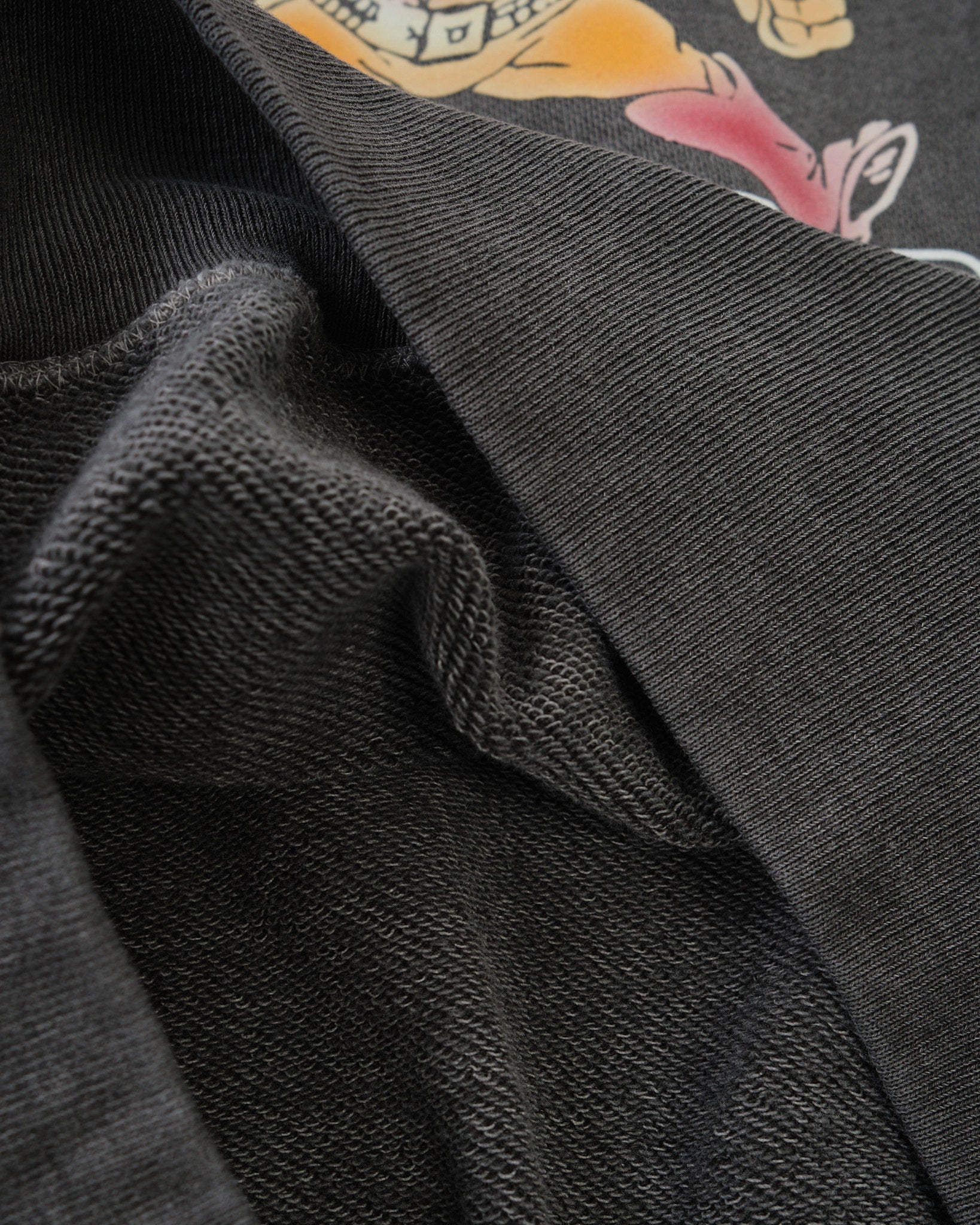 Its slim silhouette is a nod to athletic crewnecks of decades past, reimagined with modern finesse. The standout feature is the flocked print across the front, adding soft, tactile texture and retro personality.
