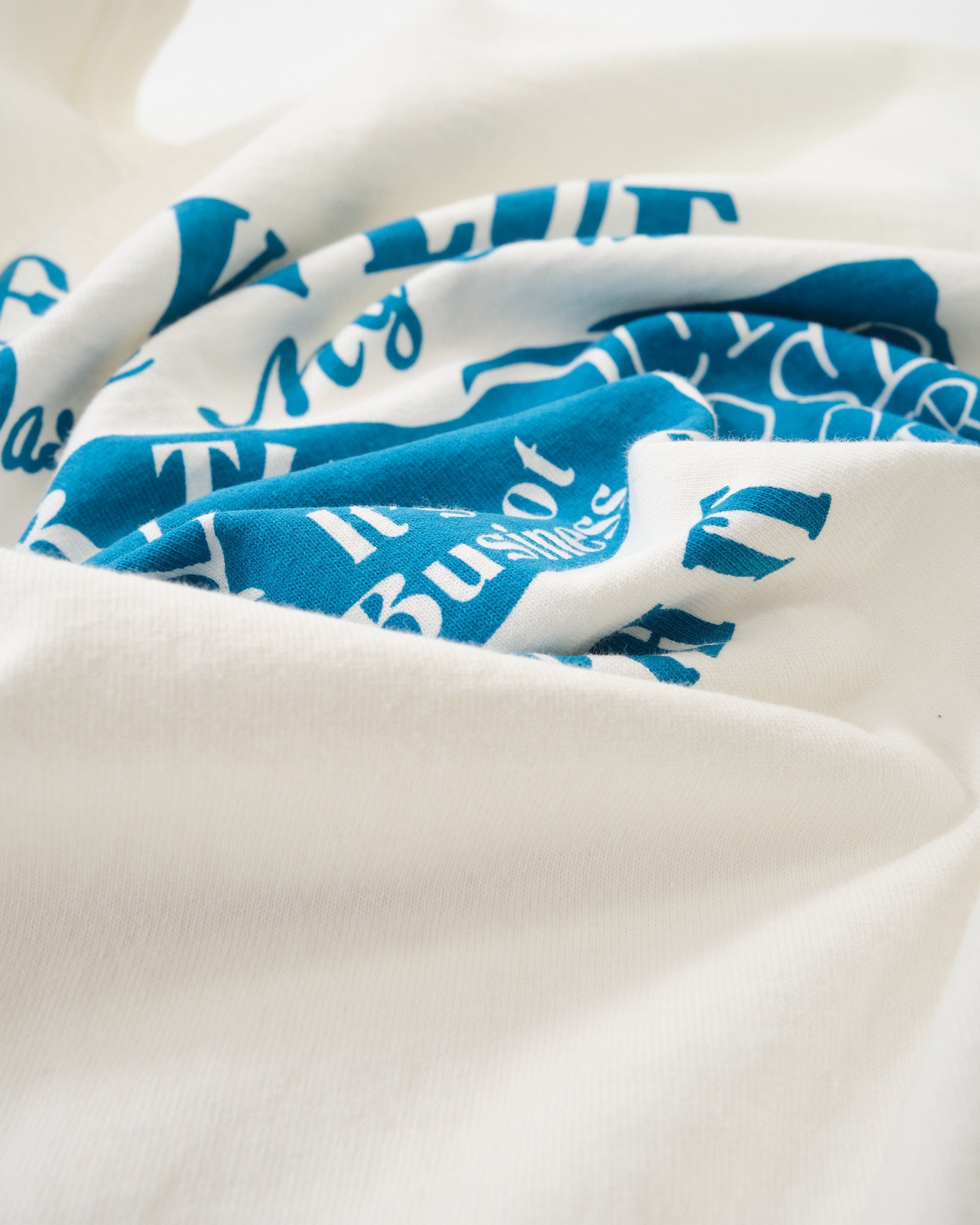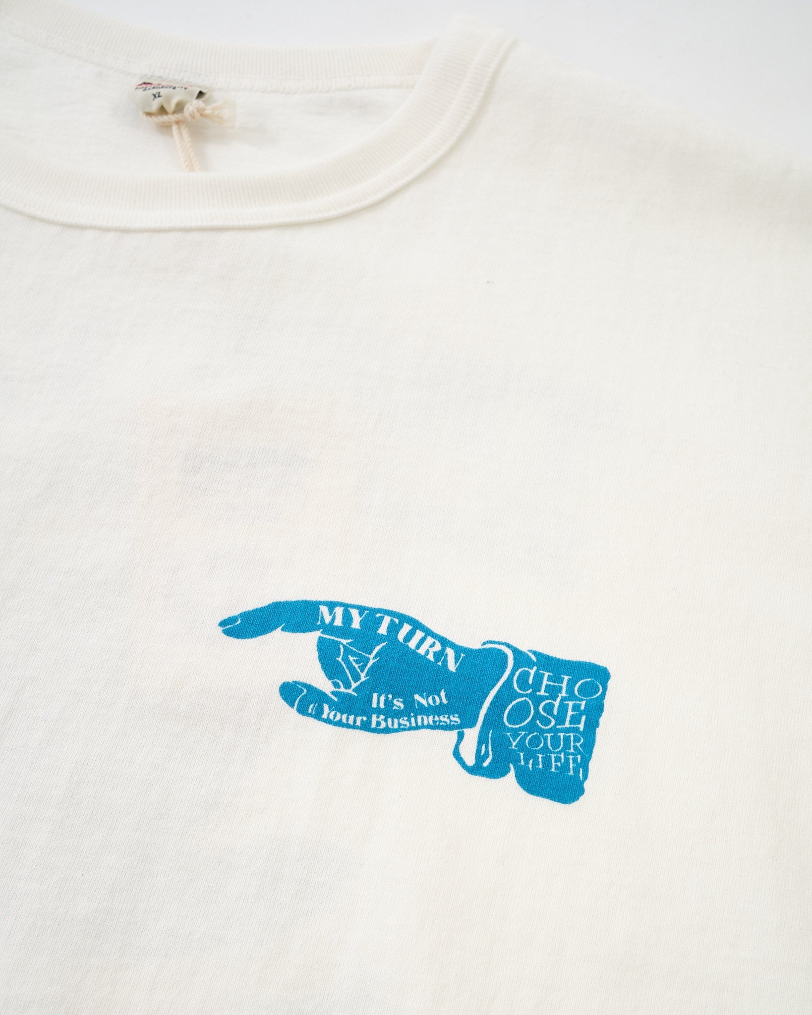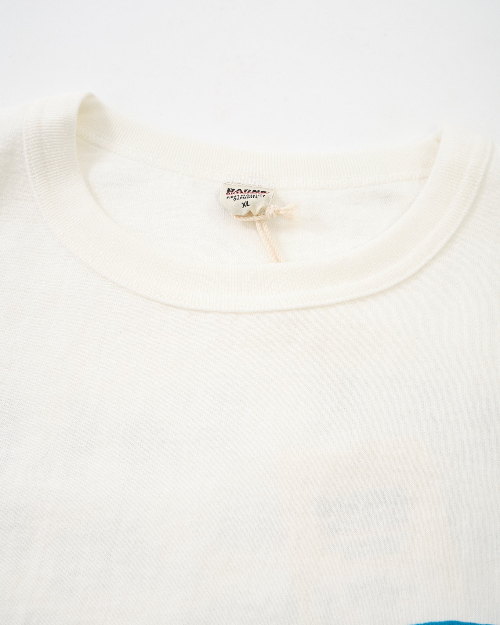 The Barns Outfitters GOAT "My Turn" Tee in white taps directly into the DNA of classic American T-shirts. Built using a traditional tubular body construction—meaning no side seams—it recreates the feel of vintage tees from the 90s and earlier. This method was once widely used in the USA for its comfort and simplicity, and Barns brings it back here with impressive authenticity.