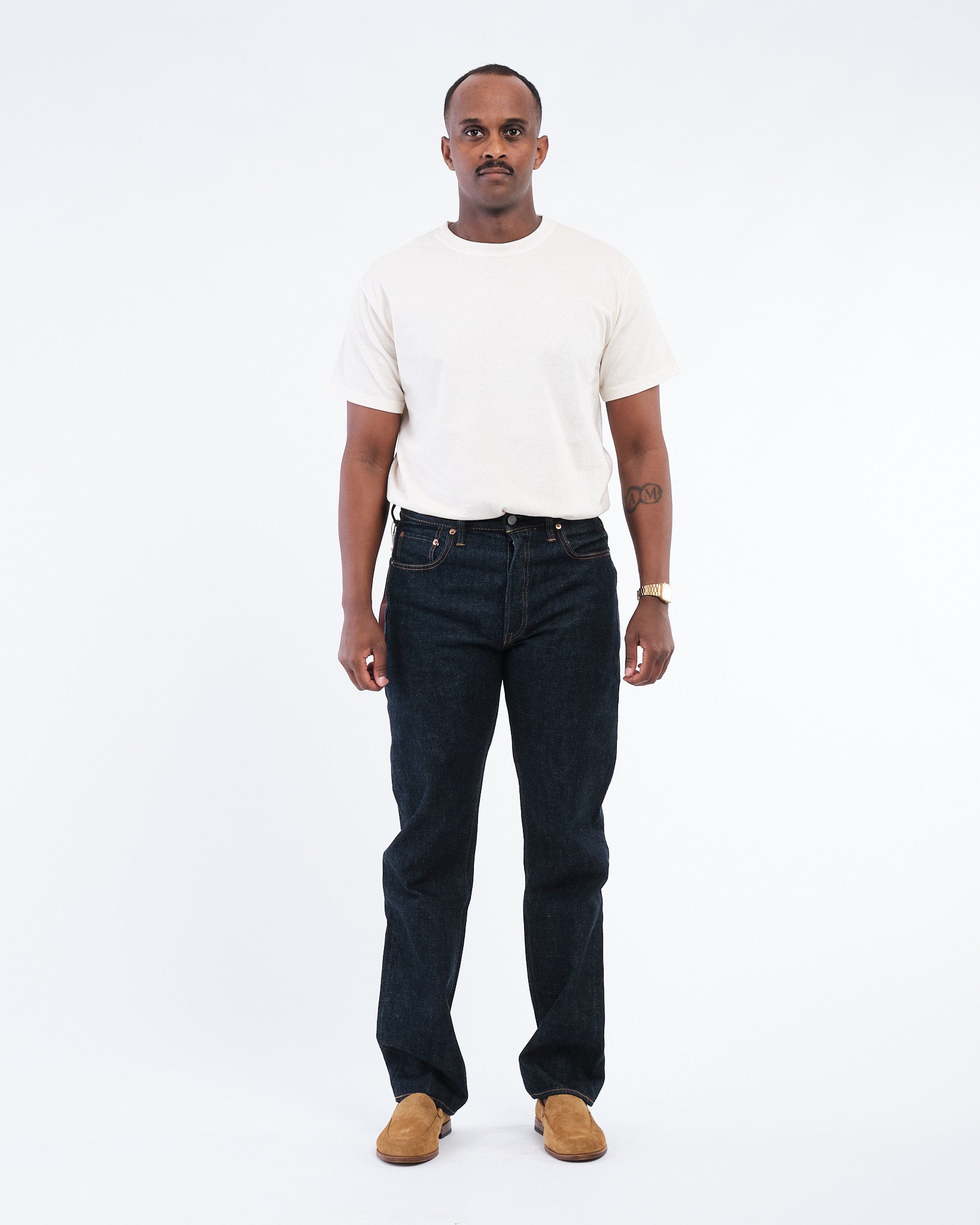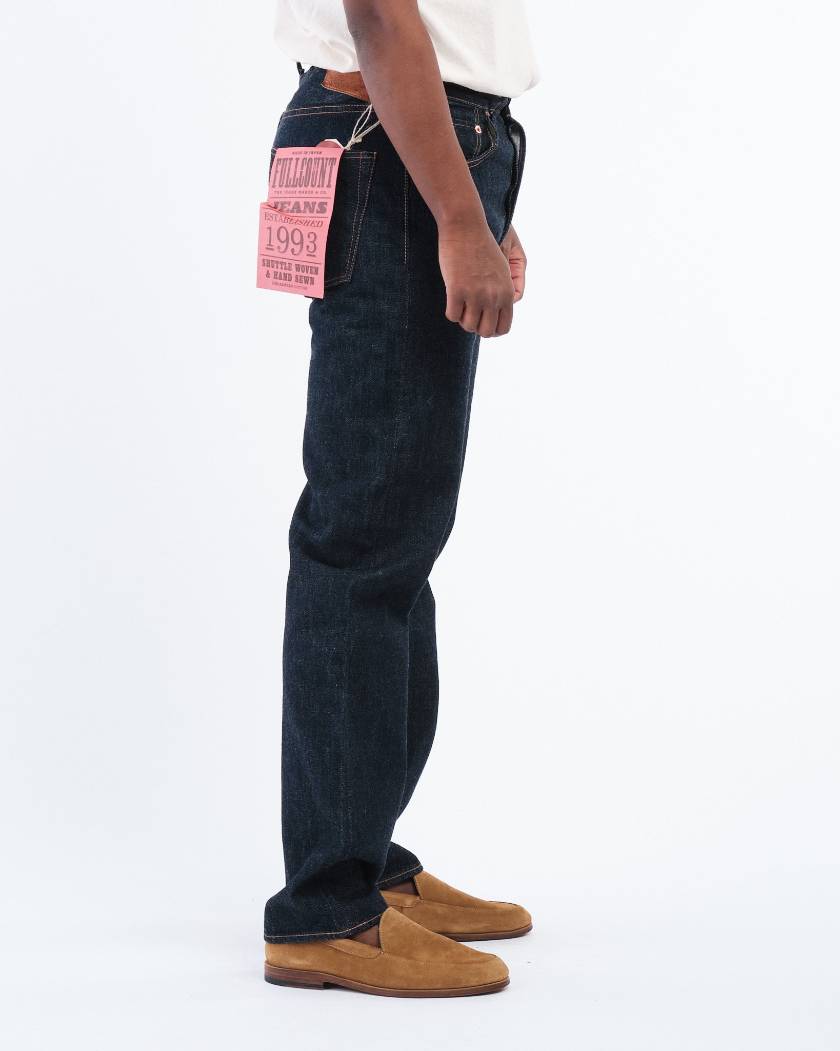 Die FULL COUNT 1103W-23 CLEAN STRAIGHT DENIM in INDIGOBLAU (1103W-23) führt eine frische Silhouette ein, die darauf ausgelegt ist, Struktur und Vielseitigkeit in Einklang zu bringen. Entwickelt als Teil der 30-Jahres-Jubiläumskollektion von Full Count, sitzt dieser Clean Straight Schnitt perfekt zwischen den 1101 und 1108 Passformen, mit einer Oberschenkelweite, die näher an der 1101 und einer Saumweite ähnlich der 1108 liegt. Gefertigt aus 13,7oz Original-Selvedge-Denim, gewebt aus 100% Simbabwe-Baumwolle, bieten diese Jeans Langlebigkeit, Komfort und eine glatte Textur, die mit dem Tragen wunderschön weich wird. Ein subtiles Detail – eine diagonal geneigte Gürtelschlaufe in der hinteren Mitte – fügt eine unverwechselbare Note hinzu. Ob in einmal gewaschen oder nicht gewaschen, dieser Stil ist ein neuer Favorit für Denim-Enthusiasten.