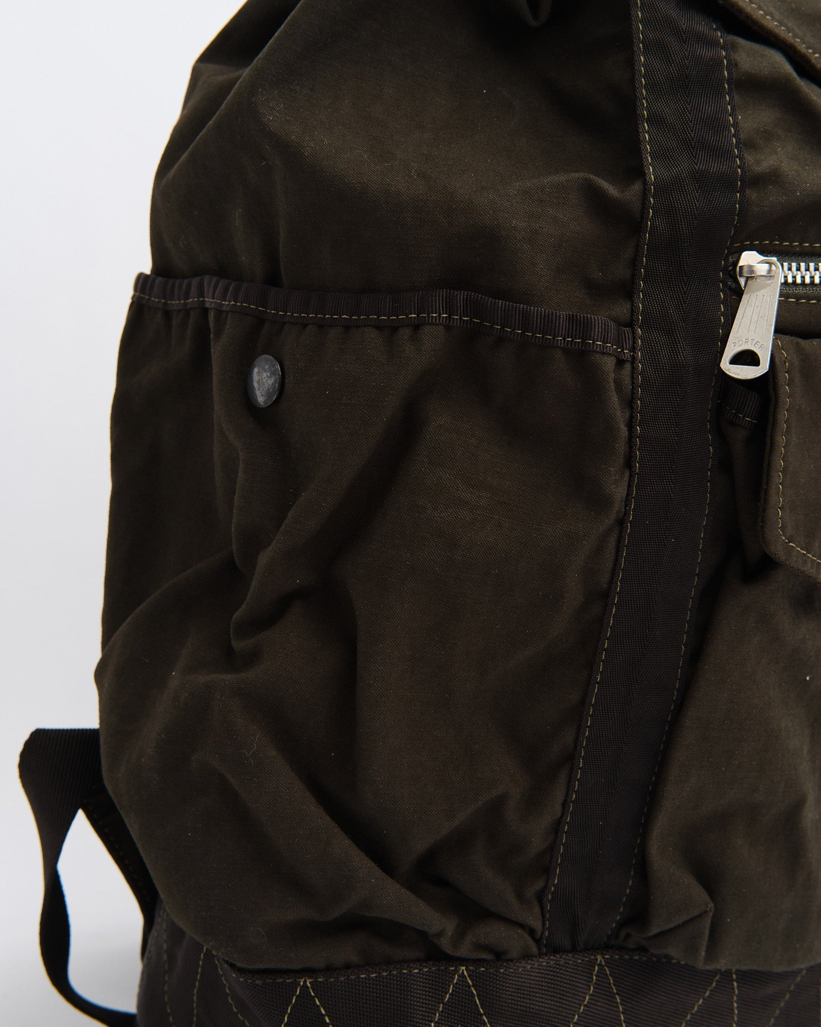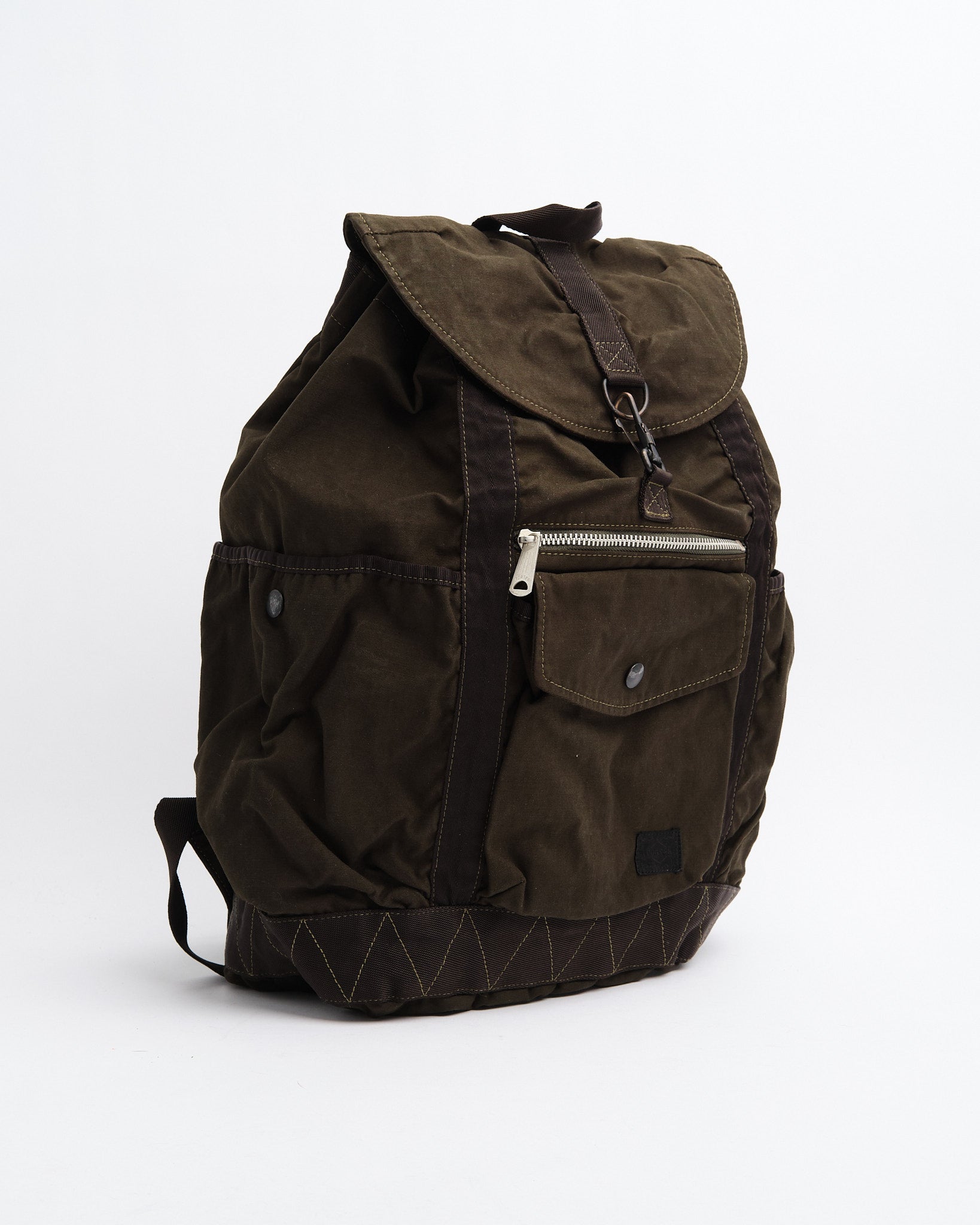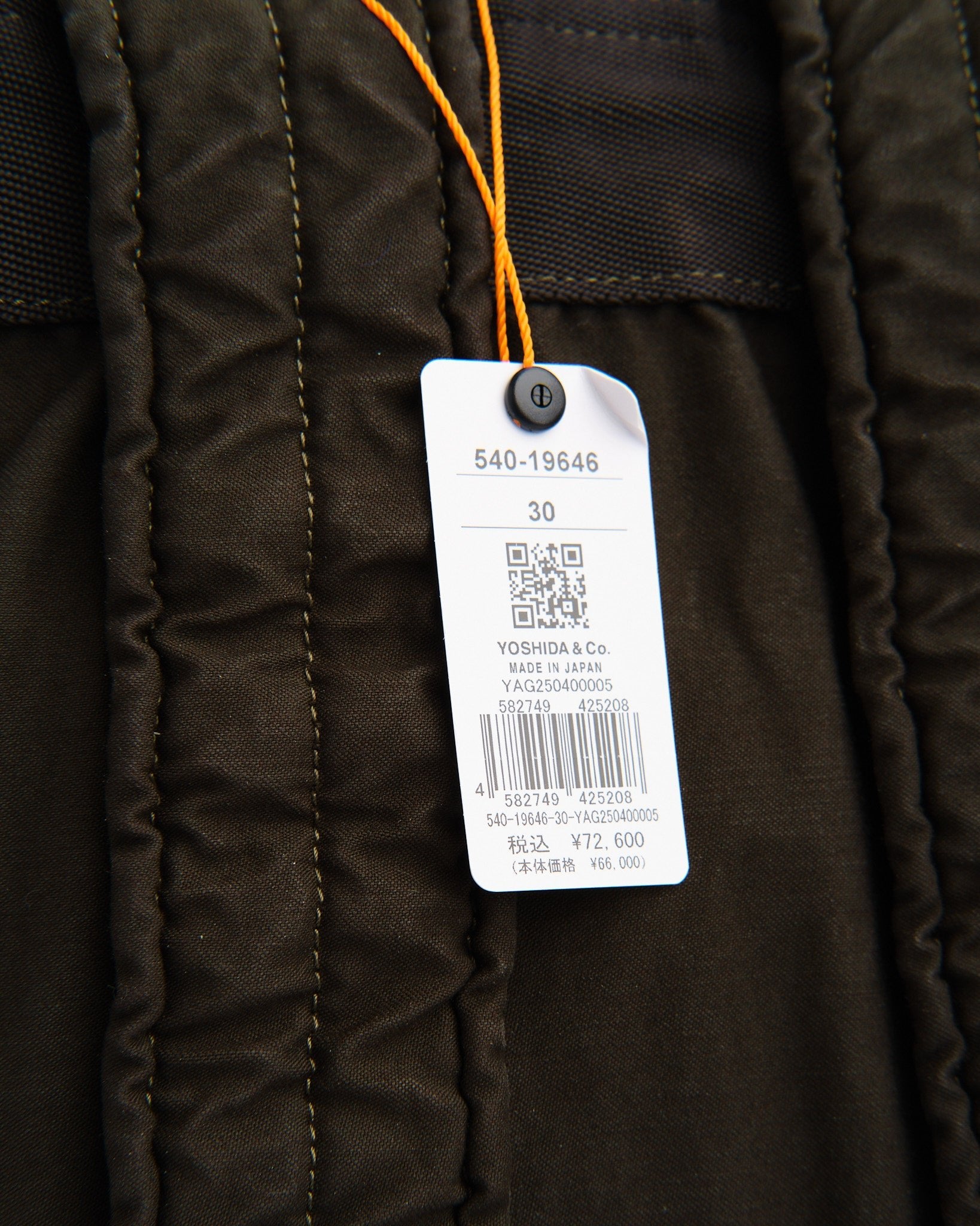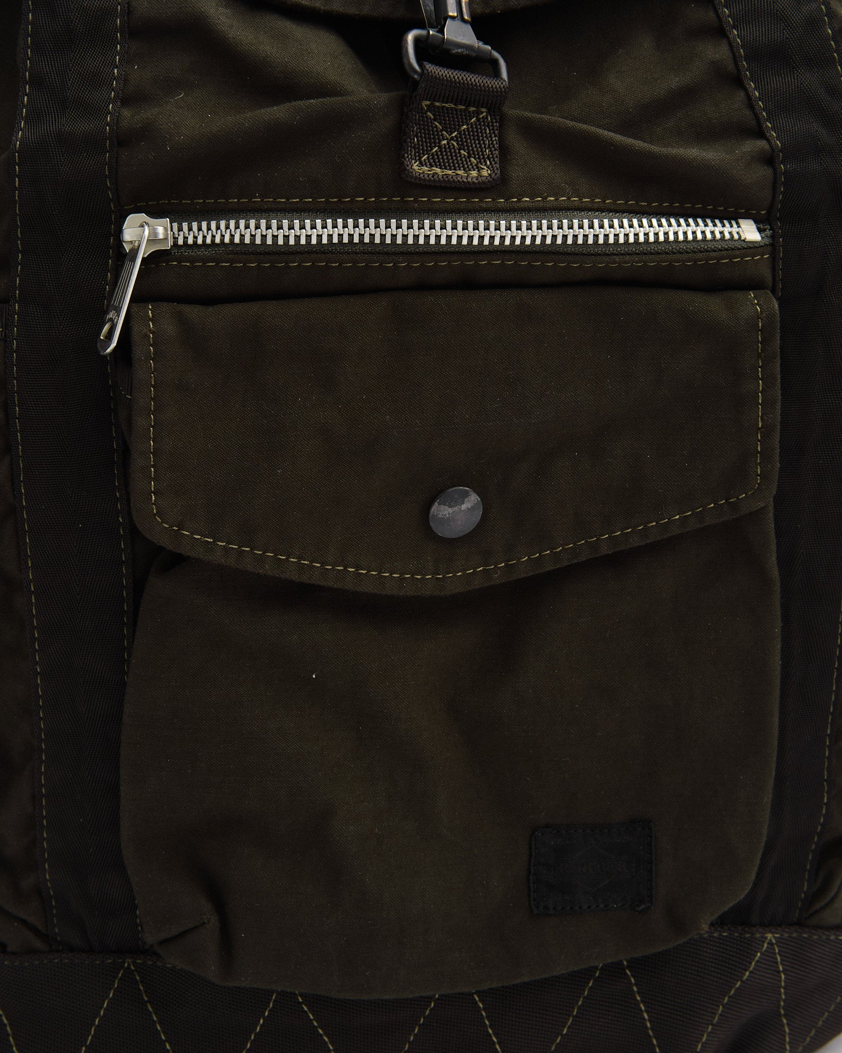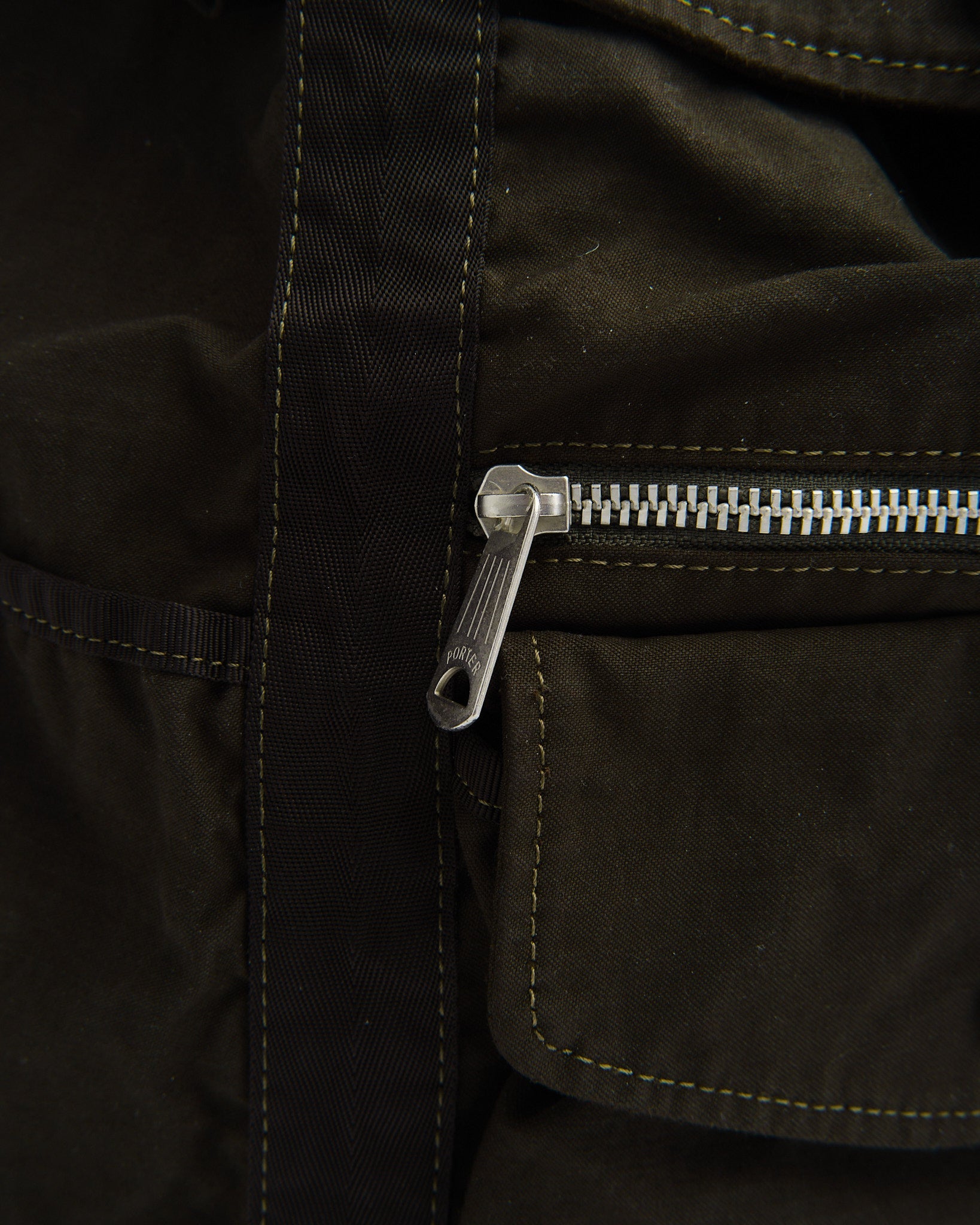 Der PORTER BY YOSHIDA Crag Rucksack (540-19646-30) in Khaki ist Teil der PORTER CRAG-Serie, bekannt für seine Produktfärbetechnik, die eine reiche und einzigartige Textur erzeugt. Hergestellt aus hochdichtem Backsatin-Stoff, einer Mischung aus Nylon und Baumwolle, verfügt dieser Rucksack über ein robustes Design, das sowohl für Outdoor-Abenteuer als auch für den täglichen Gebrauch perfekt ist.