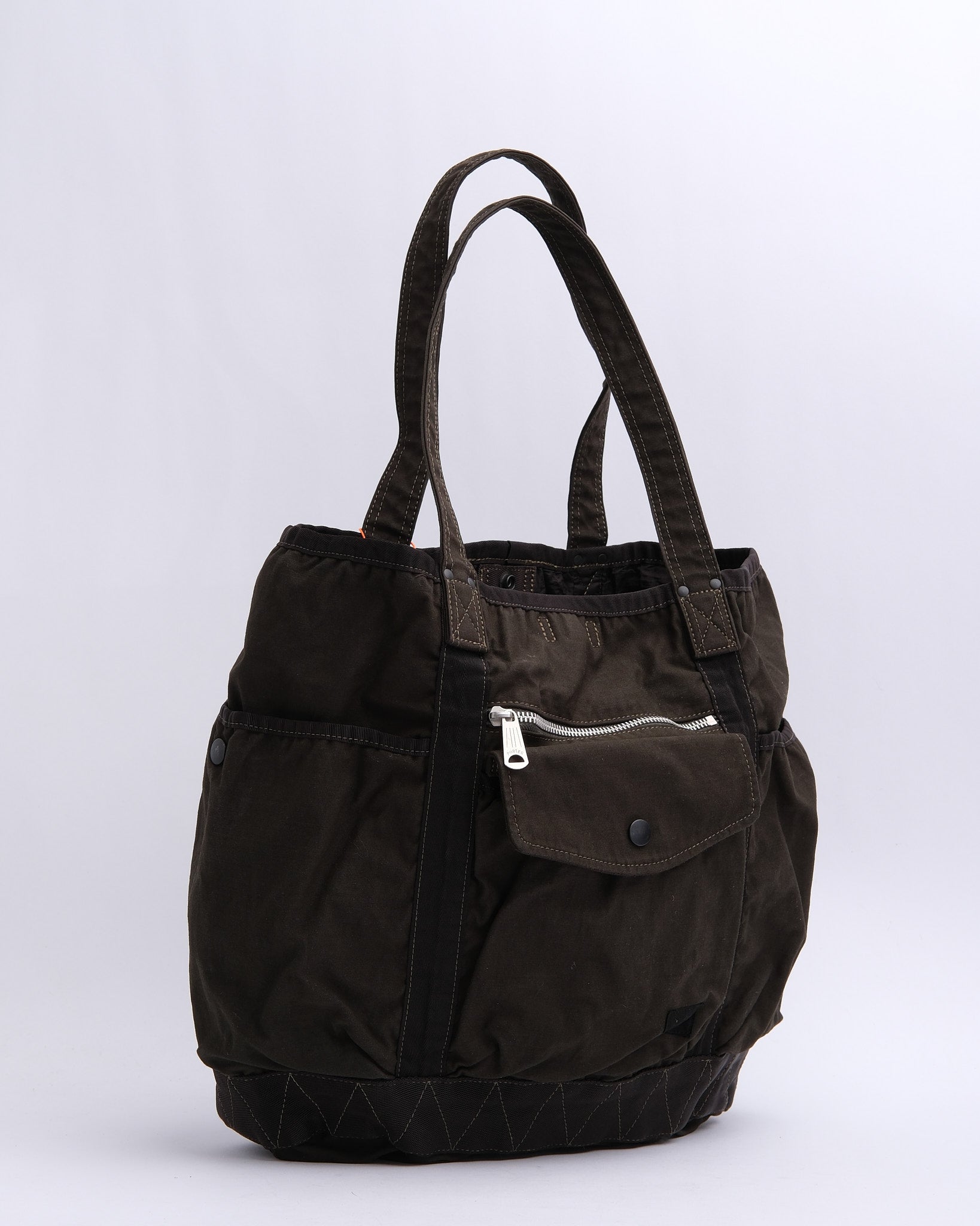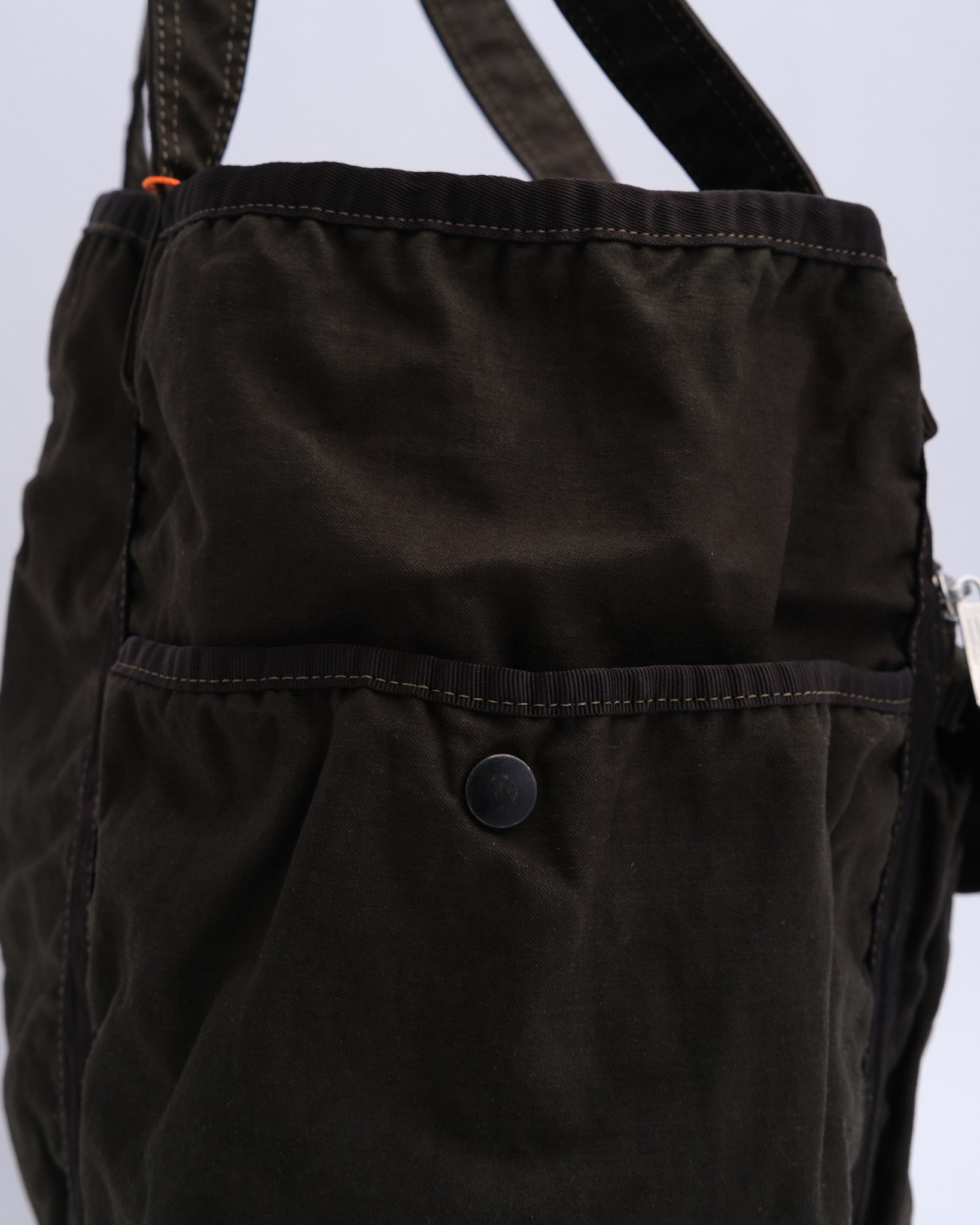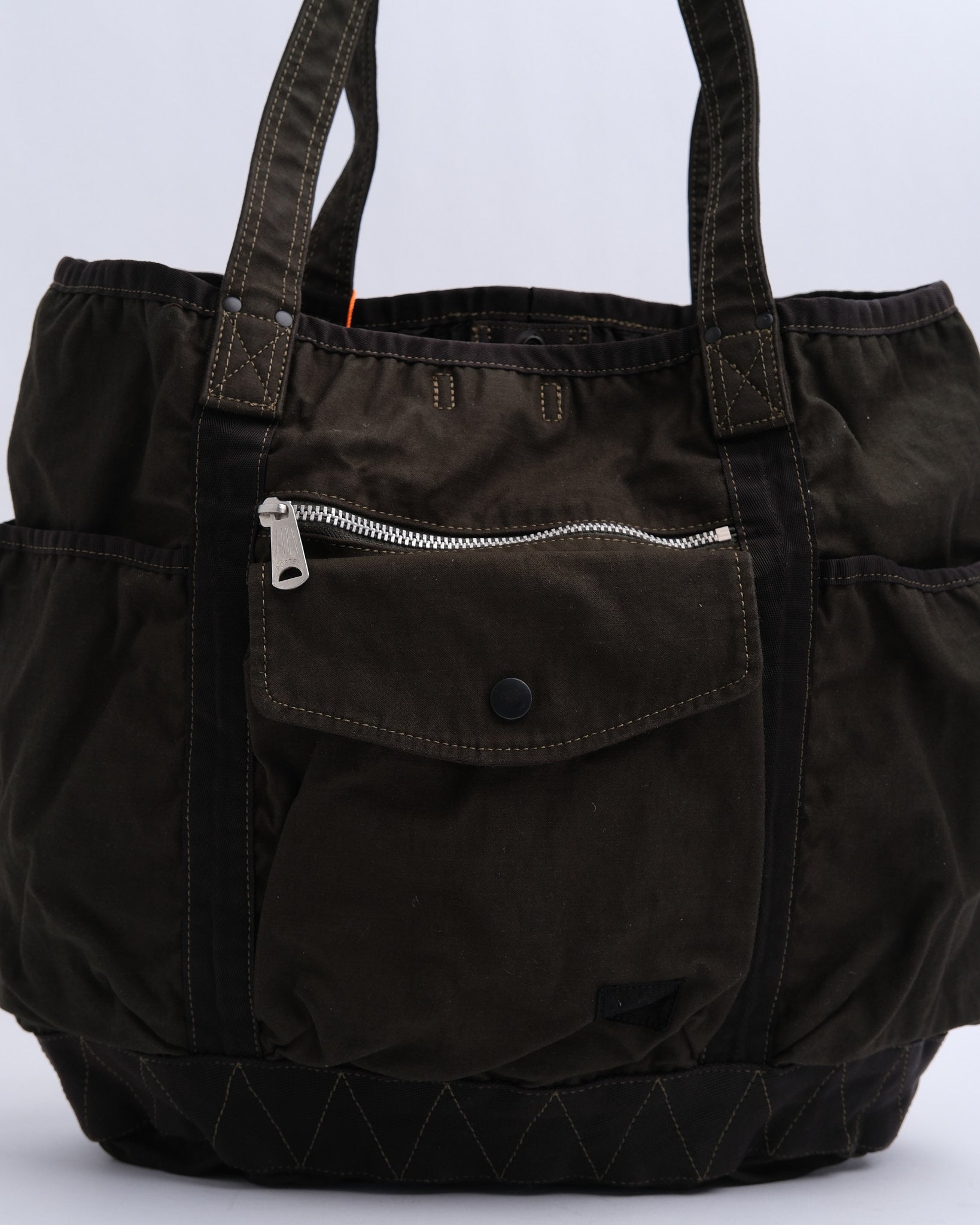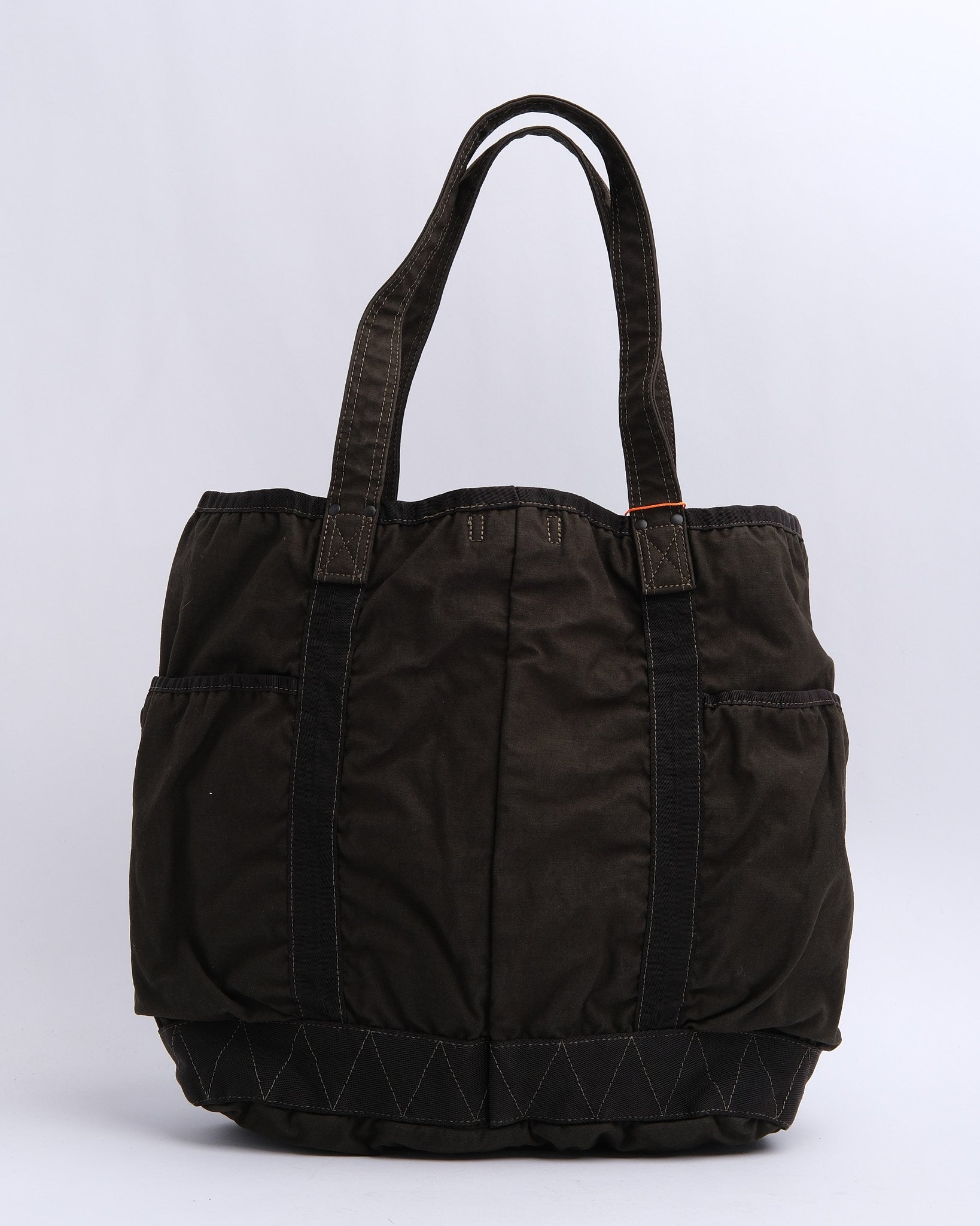 Die PORTER BY YOSHIDA Crag Tote Bag (540-19643-30) ist Teil der PORTER CRAG-Serie, bekannt für ihren einzigartigen Produktfärbevorgang, der tiefe, reiche Farben und Texturen erzeugt. Hergestellt aus Back-Satin-Stoff, einer hochdichten Mischung aus Nylon und Baumwolle, ist die Tasche sowohl haltbar als auch leicht. Die Zweibad-Färbetechnik sorgt für mehrdimensionale Farbtöne und natürliche Variationen, wodurch jede Tasche ein Unikat ist.