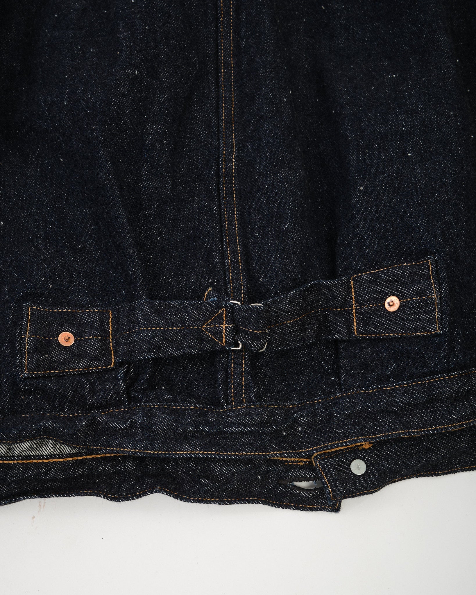 - 1940er-inspirierter Stoff: Erstellt aus Totstock-Denim aus dem Höhepunkt der Denimproduktion in den 1940ern