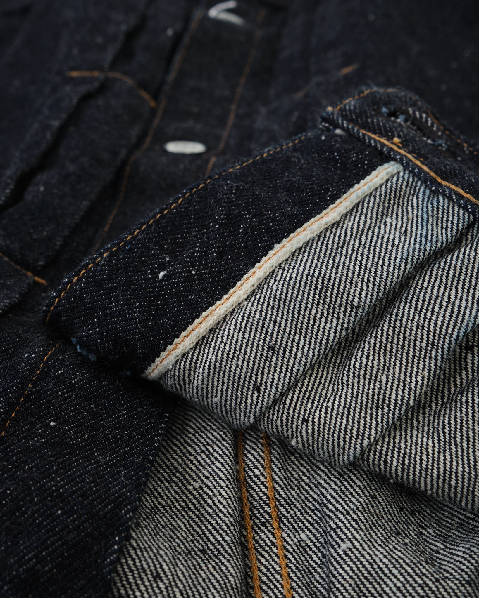 - 13,5 Unzen Selvedge-Denim: Gefärbt mit reinem Indigo und gewebt mit niedriger Spannung