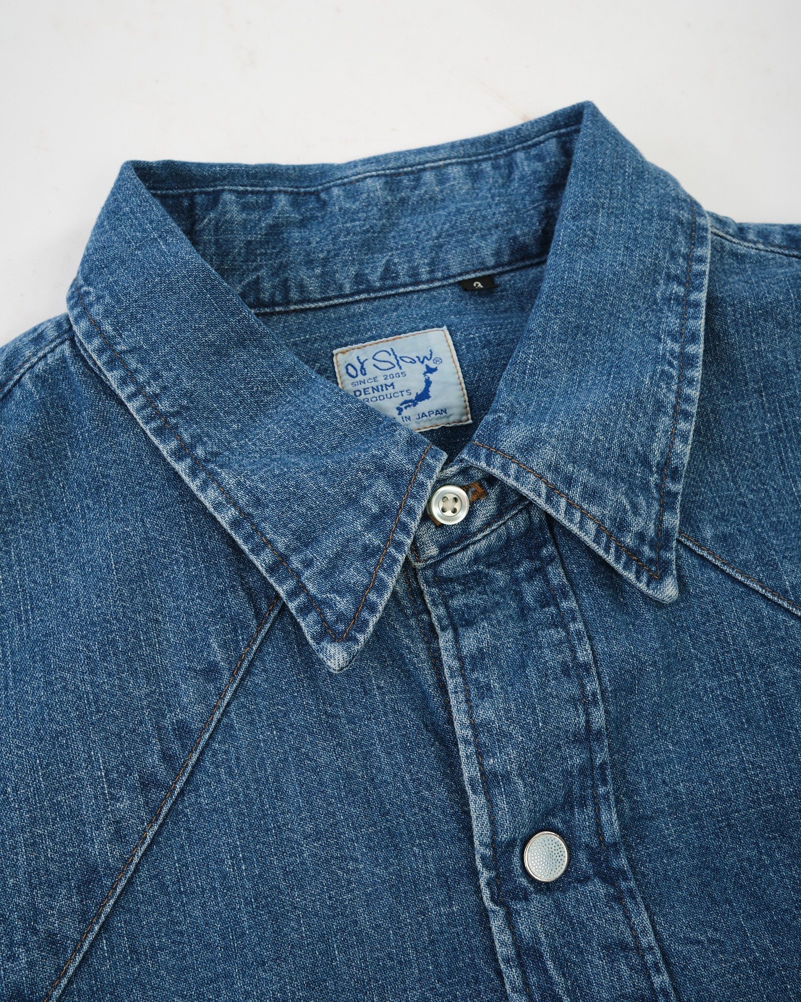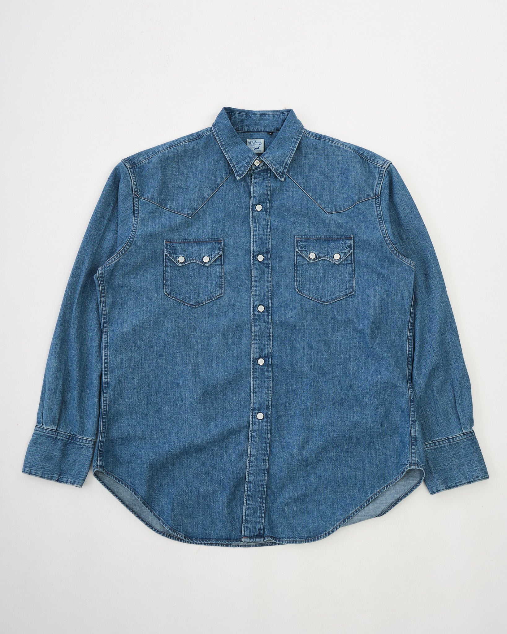 Das orSlow DENIM WESTERN SHIRT verbindet klassische Western-Ästhetik mit akribischer japanischer Handwerkskunst. Hergestellt aus hochwertigem japanischem Denim, bietet dieses Hemd Langlebigkeit und ein angenehmes Tragegefühl. Die Used Wash-Veredelung verleiht ihm ein natürlich getragenes Aussehen und fügt dem zeitlosen Design einen Vintage-Charakter hinzu. Mit einer regulären Passform gewährleistet es Bewegungsfreiheit für den täglichen Gebrauch. Authentische Western-Details wie Druckknopfverschlüsse, spitze Passe und doppelte Brusttaschen verstärken seinen klassischen Reiz. Zusätzliche Merkmale sind Druckknopfmanschetten, verstärkte Nähte und ein gebogener Saum für eine ausgewogene Silhouette. Dezentes orSlow Branding fügt eine unaufdringliche Note hinzu. Stolz in Japan hergestellt, verkörpert dieses Hemd orSlows Hingabe an Qualität und an das von Erbe inspirierte Design.