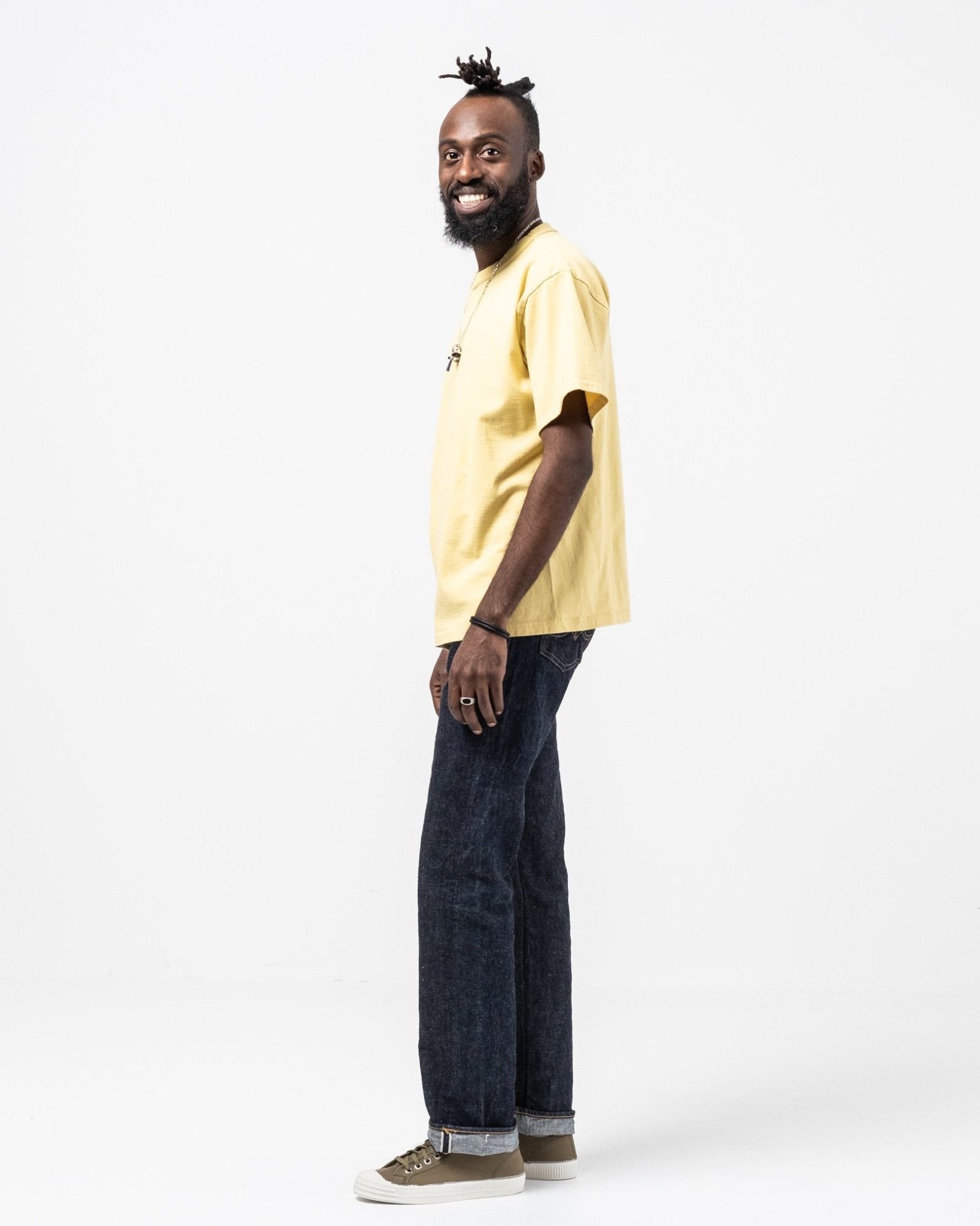Ludjero ist 179 cm groß, schlank und trägt eine Größe 28.