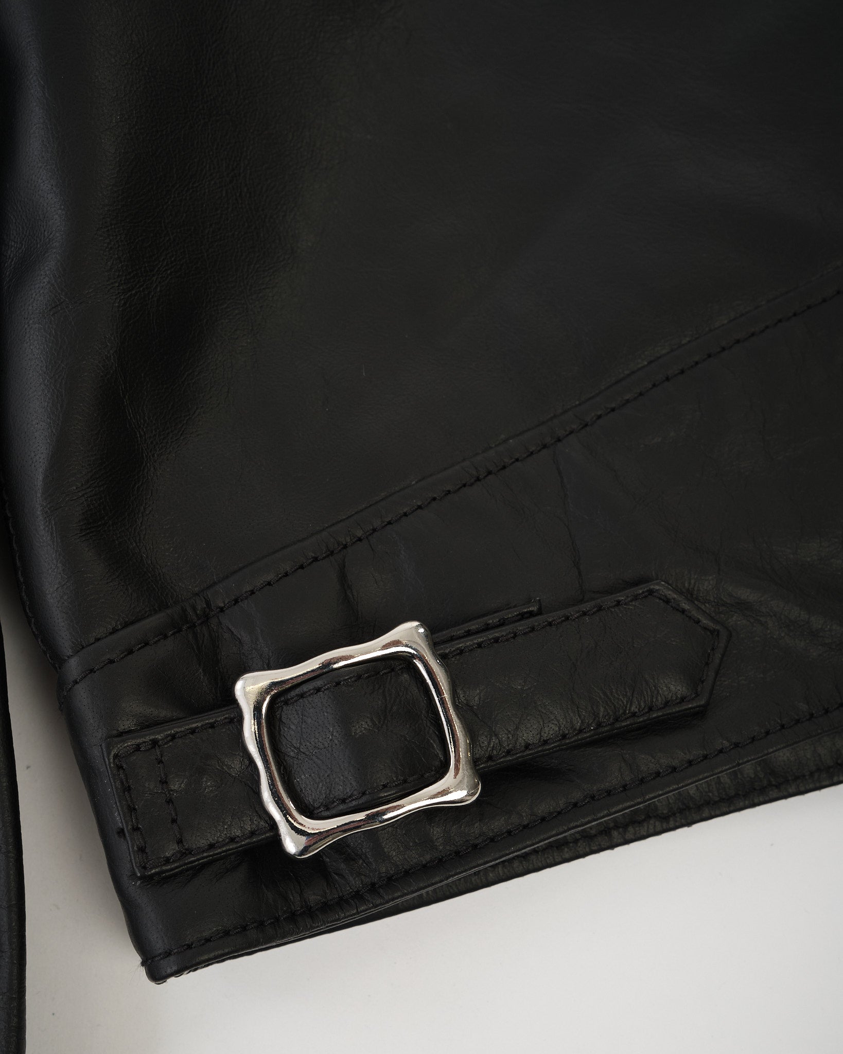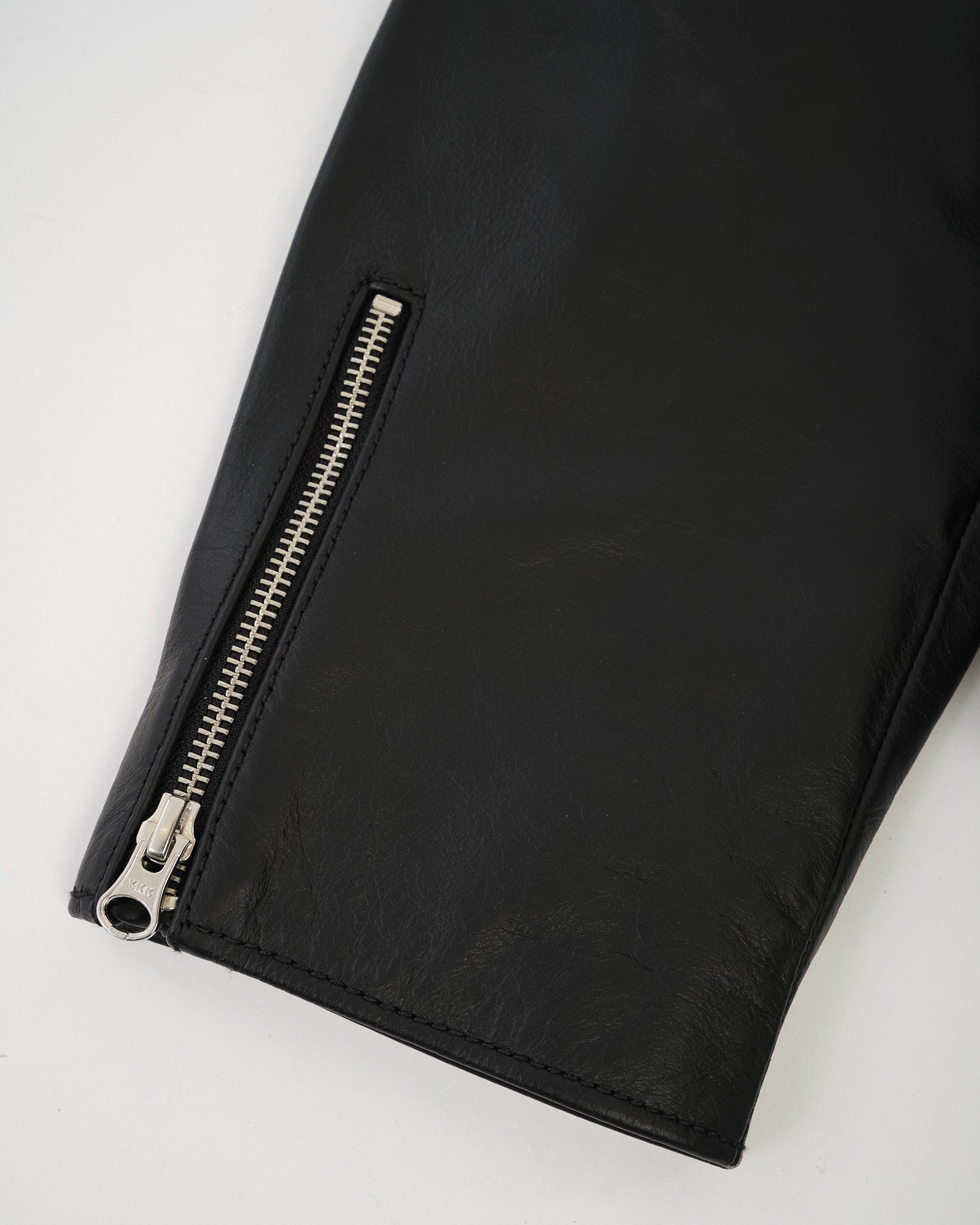 Die Jacke verfügt über silberne Metallverzierungen, Reißverschlussärmel und geschnallte Seitentabs für eine individuelle Passform und einen Hauch von rebellischem Geist.