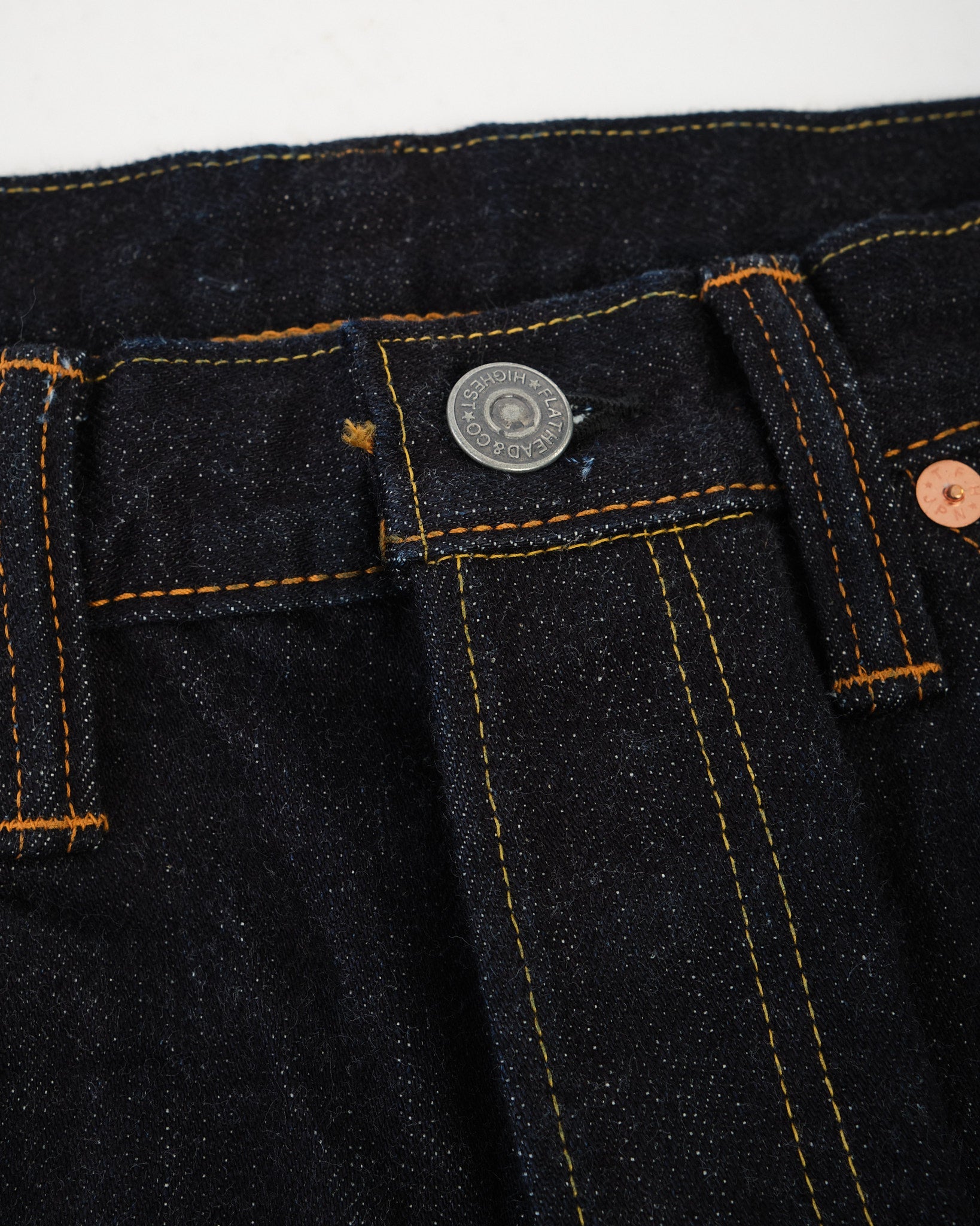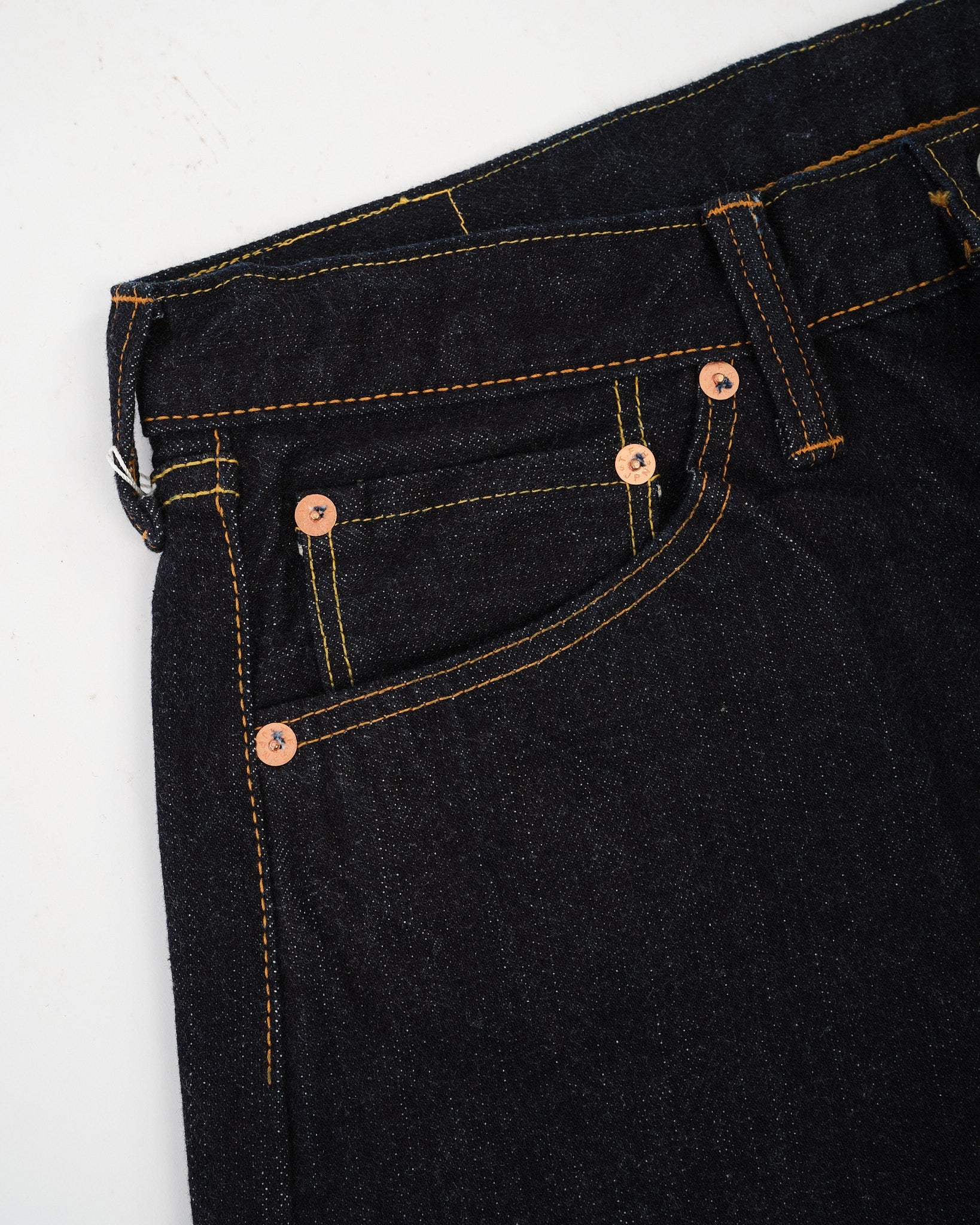 • 14,5 Unzen Selvedge-Denim, gewebt auf traditionellen Schützenwebstühlen
