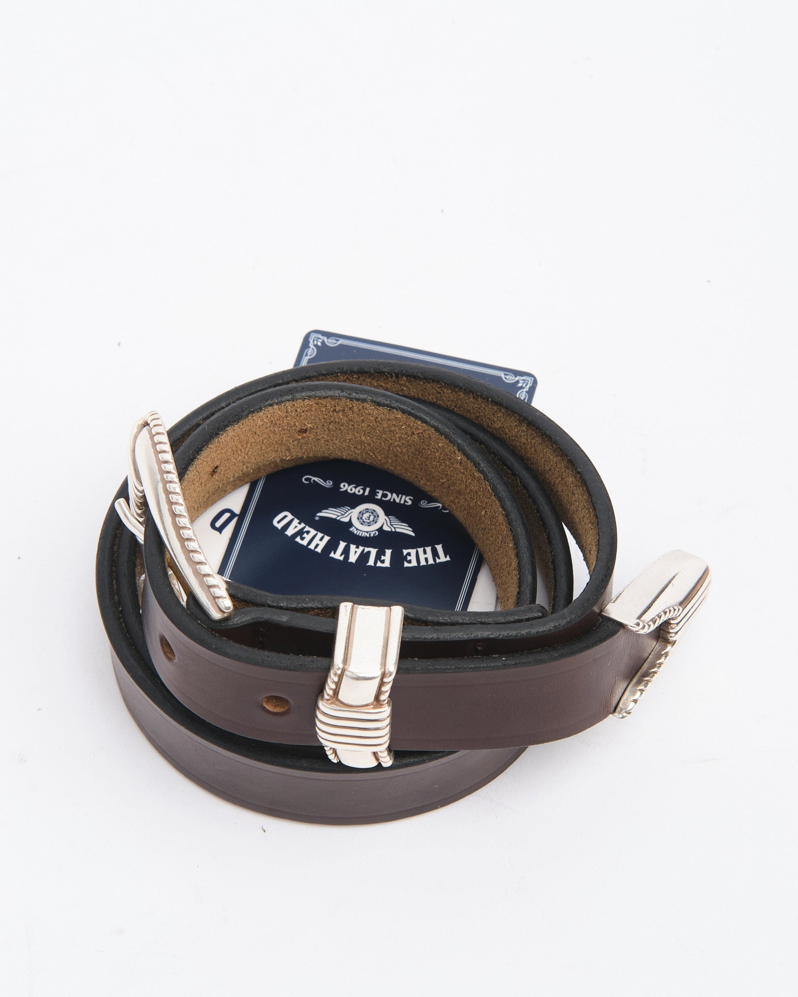 Der FLAT HEAD FN-BE-L006 3 Piece Chromexcel Western Belt ist ein hochwertiger Ledergürtel, gefertigt aus Horween Chromexcel Leder für außergewöhnliche Haltbarkeit und eine reiche Patina, die sich im Laufe der Zeit vertieft. Mit einer schlanken Breite von 25mm bietet dieser Gürtel vielseitige Stylingmöglichkeiten, was ihn perfekt für Jeans sowie Anzughosen macht.