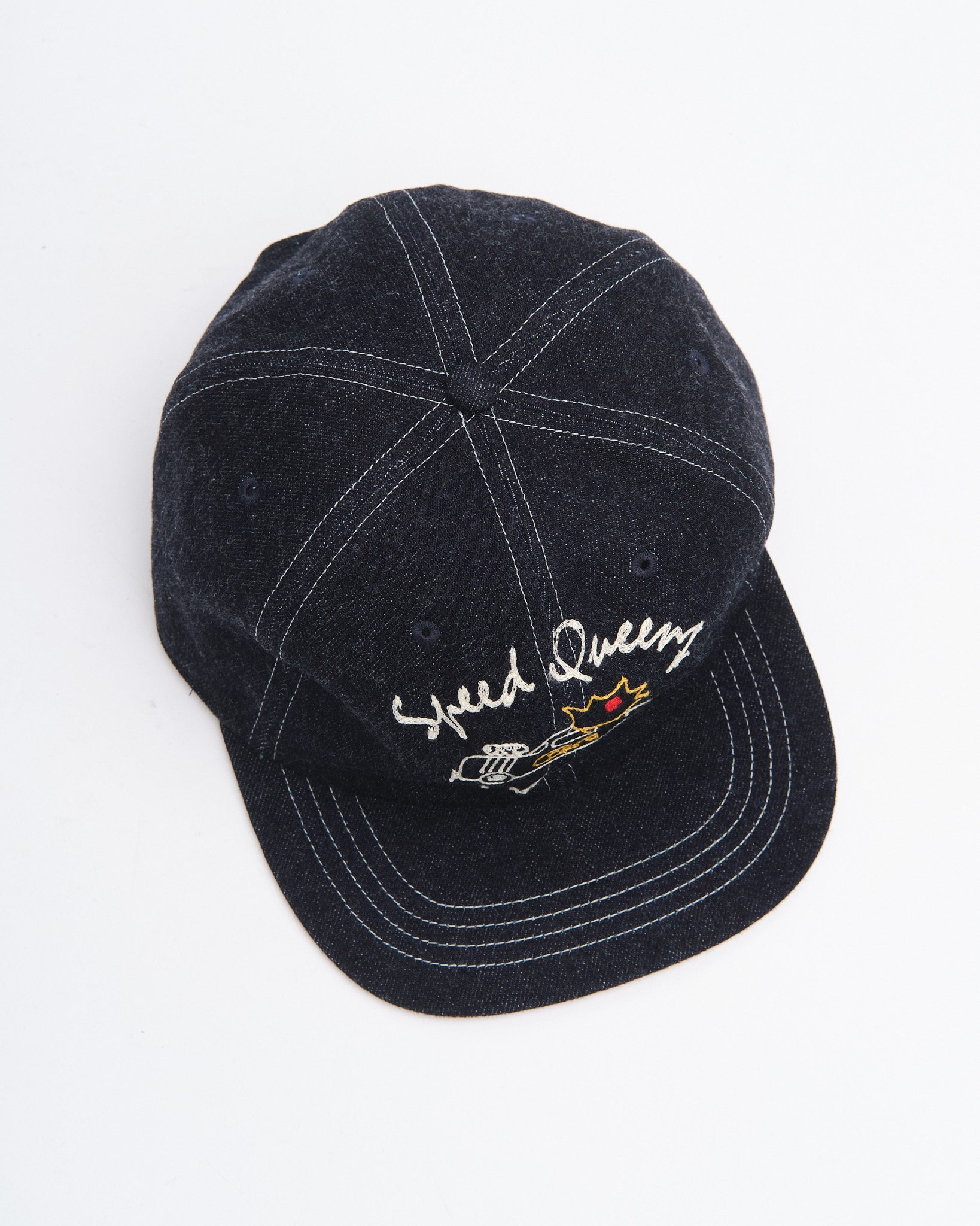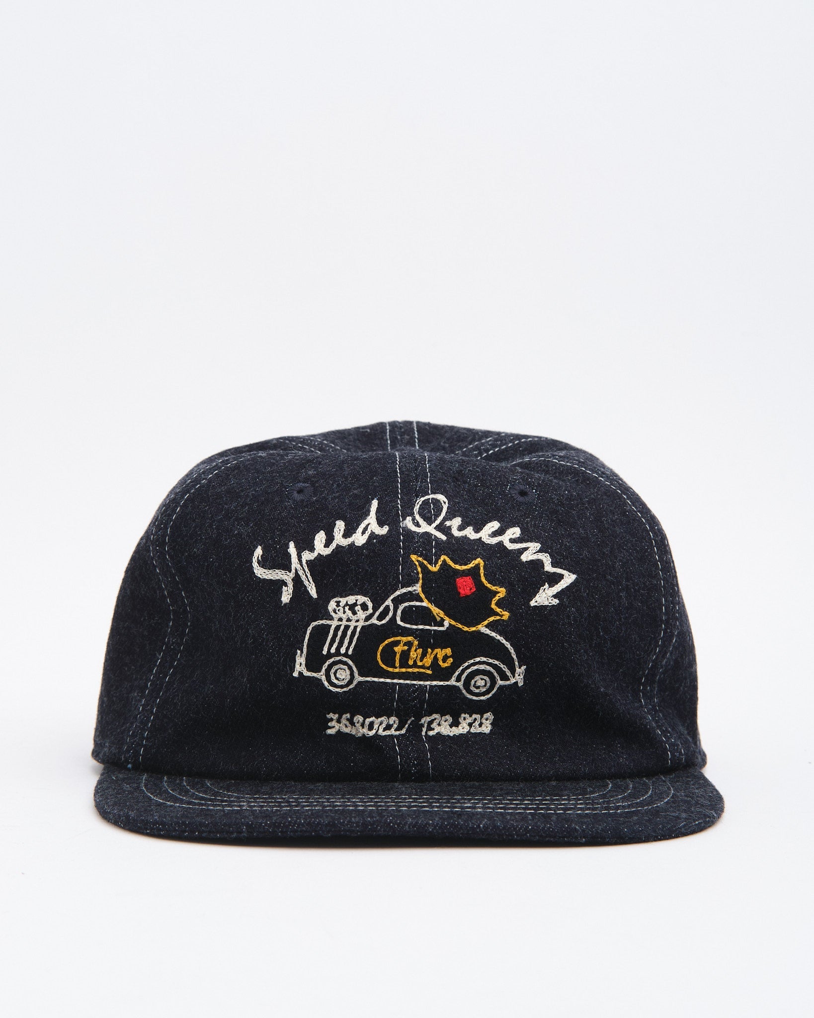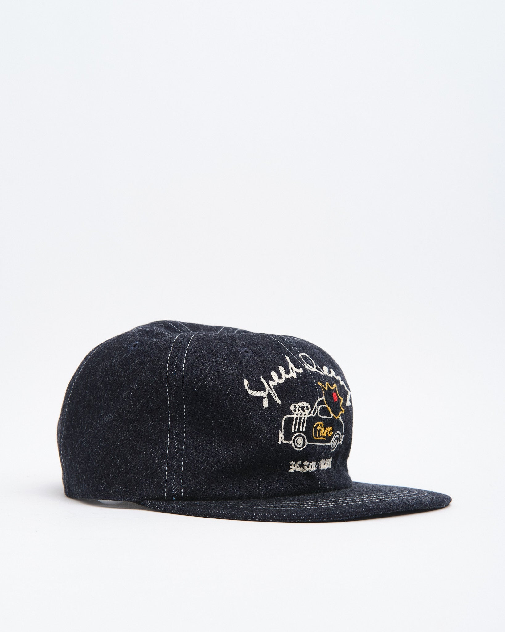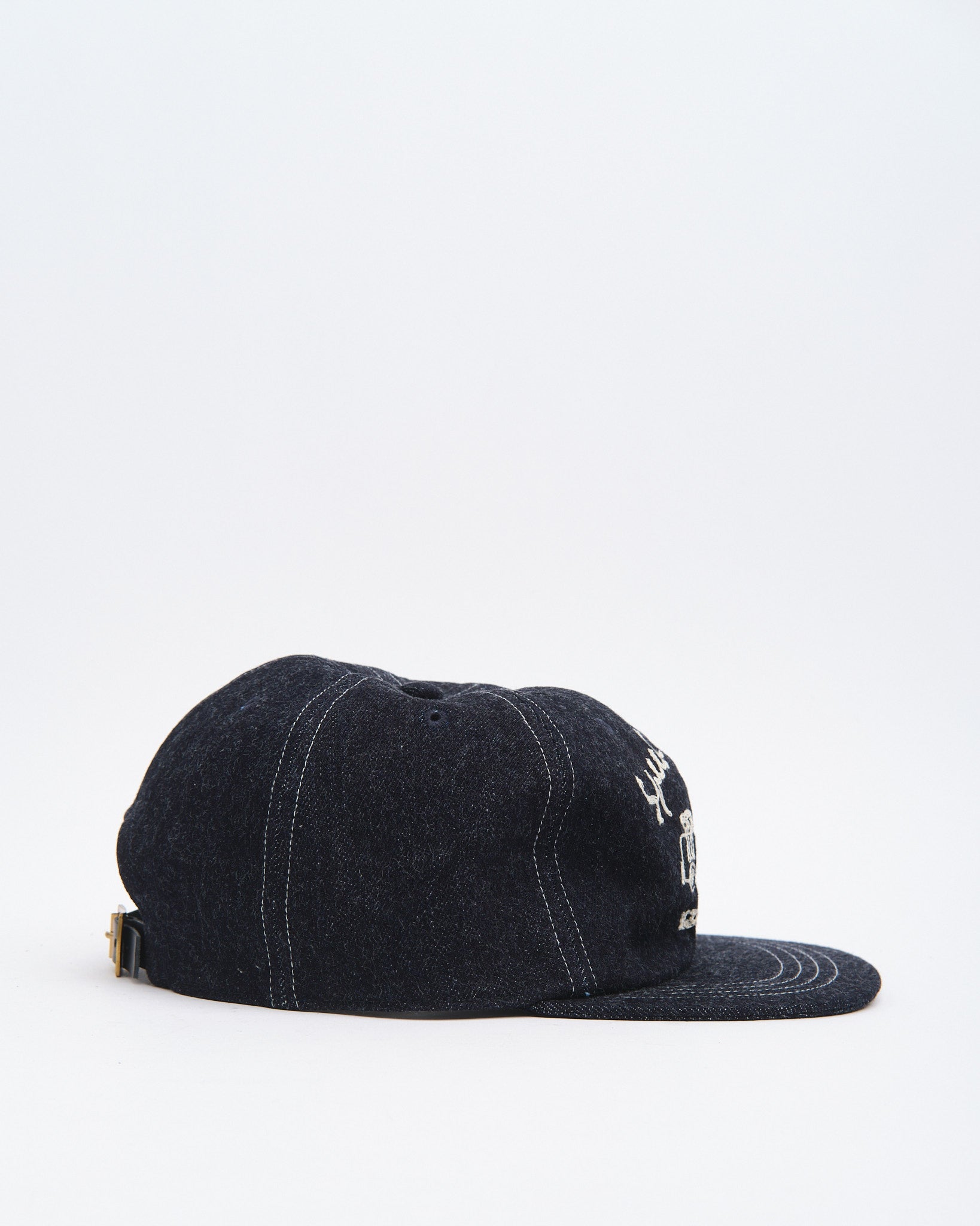 Hergestellt in Japan, spiegelt diese Kappe Flat Heads Hingabe an qualitativ hochwertige Materialien und meisterhafte Handwerkskunst wider und bietet ein stilvolles und langlebiges Accessoire für Denim-Enthusiasten und Liebhaber von Heritage-Mode.