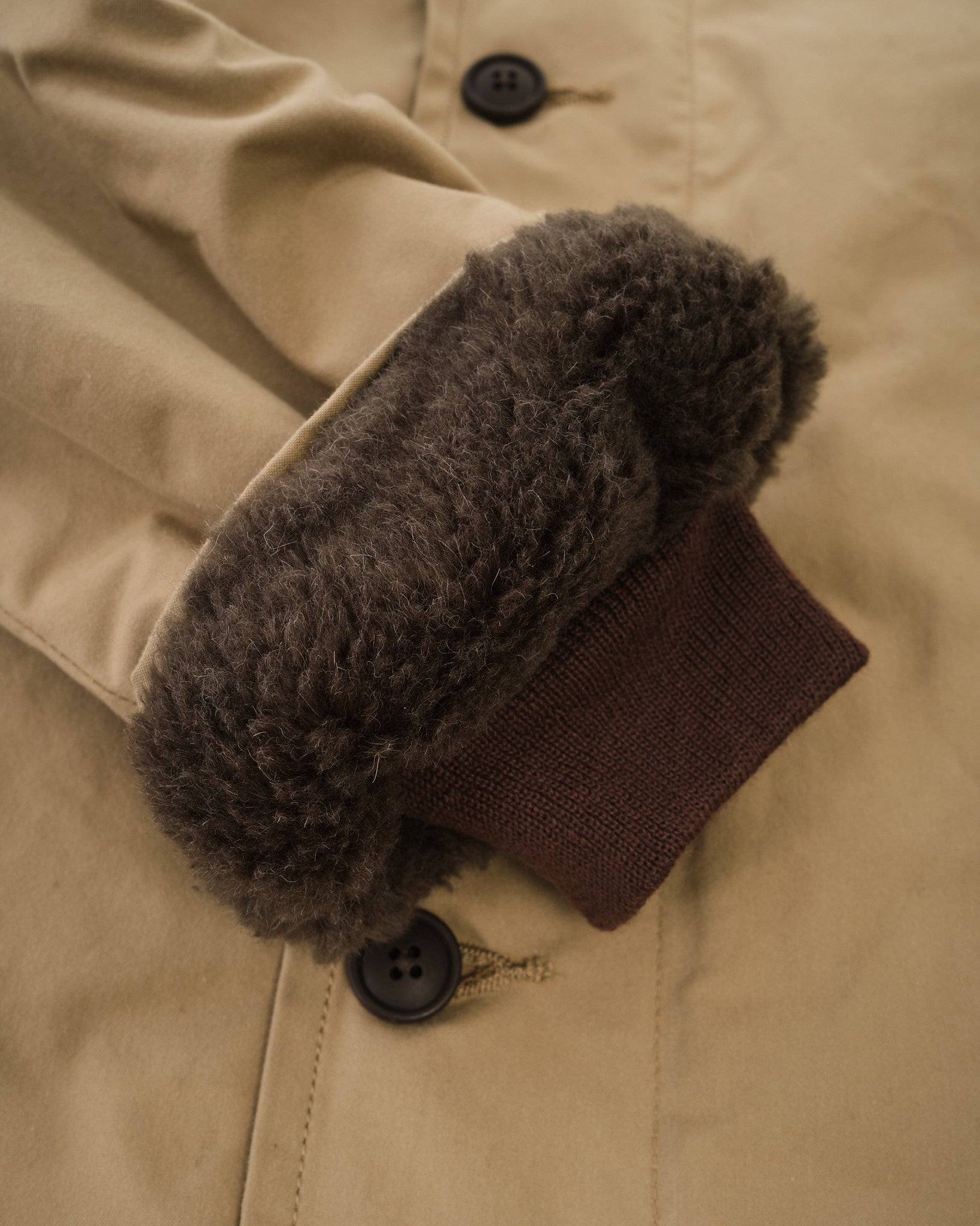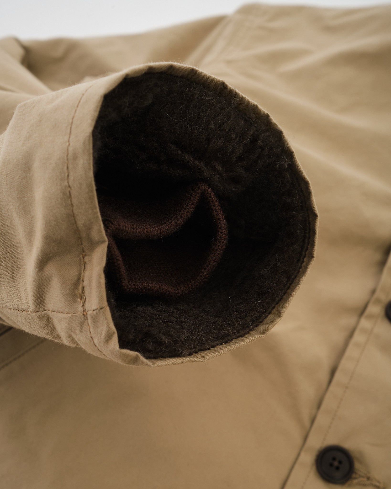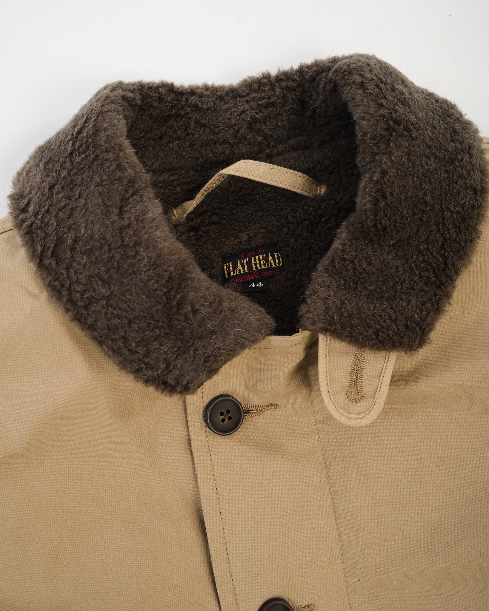 Die FLAT HEAD FN-OJ-C015A Boa Jacke ist ein hochwertiges Winterbekleidungsstück, das robuste Haltbarkeit mit Wärme und Komfort verbindet. Hergestellt aus 100% reinem Baumwoll-Masterschild-Stoff, bietet diese Jacke außergewöhnliche Windresistenz, während sie eine klassische Arbeitskleidungsästhetik beibehält.