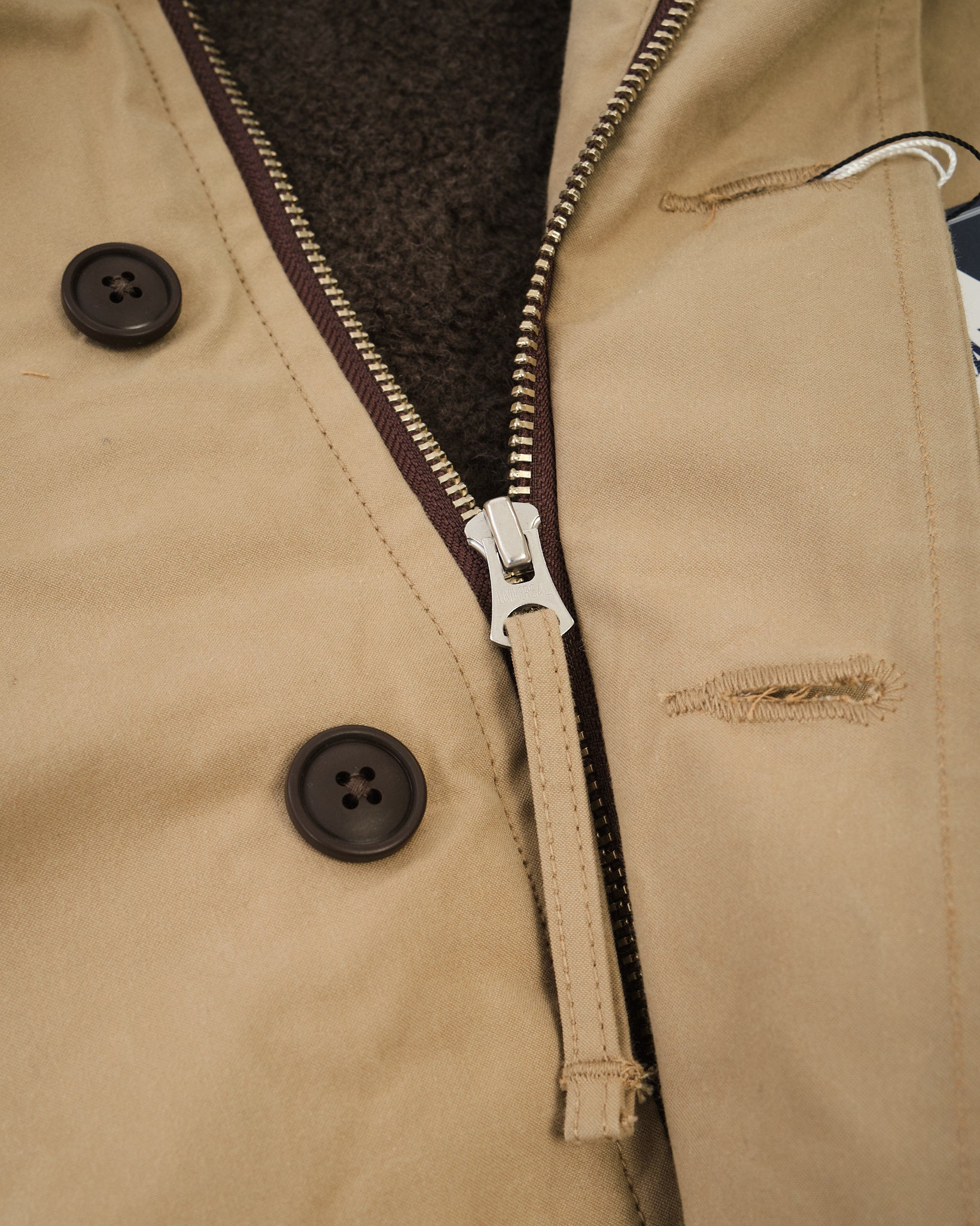 Entworfen mit zeitlosem Stil und praktischer Funktionalität, wird diese Jacke in Japan hergestellt, was das Engagement von The Flat Head für außergewöhnliche Handwerkskunst und hochwertige Materialien widerspiegelt.