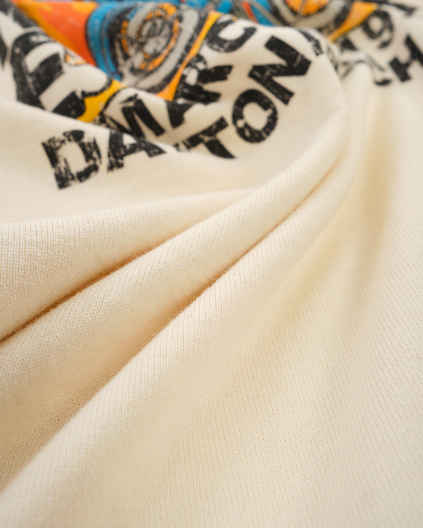Mit Gummidruck für ein kühnes, langlebiges Design bietet dieses Langarm-T-Shirt eine zeitlose Passform, die mühelos als Einzelstück oder in Kombination mit Oberbekleidung funktioniert. Die verstärkten Nähte und die hochwertige Verarbeitung gewährleisten eine lange Tragbarkeit, während die elfenbeinfarbene Variante eine klassische, dennoch robuste Anziehungskraft bietet.