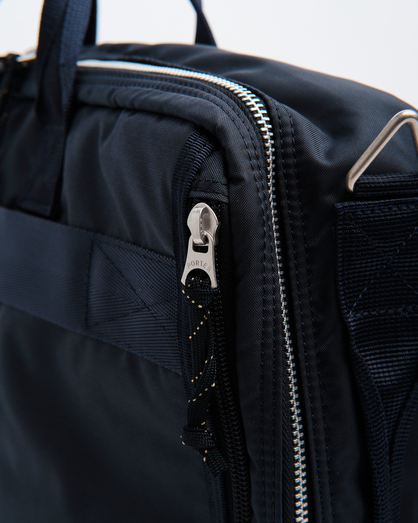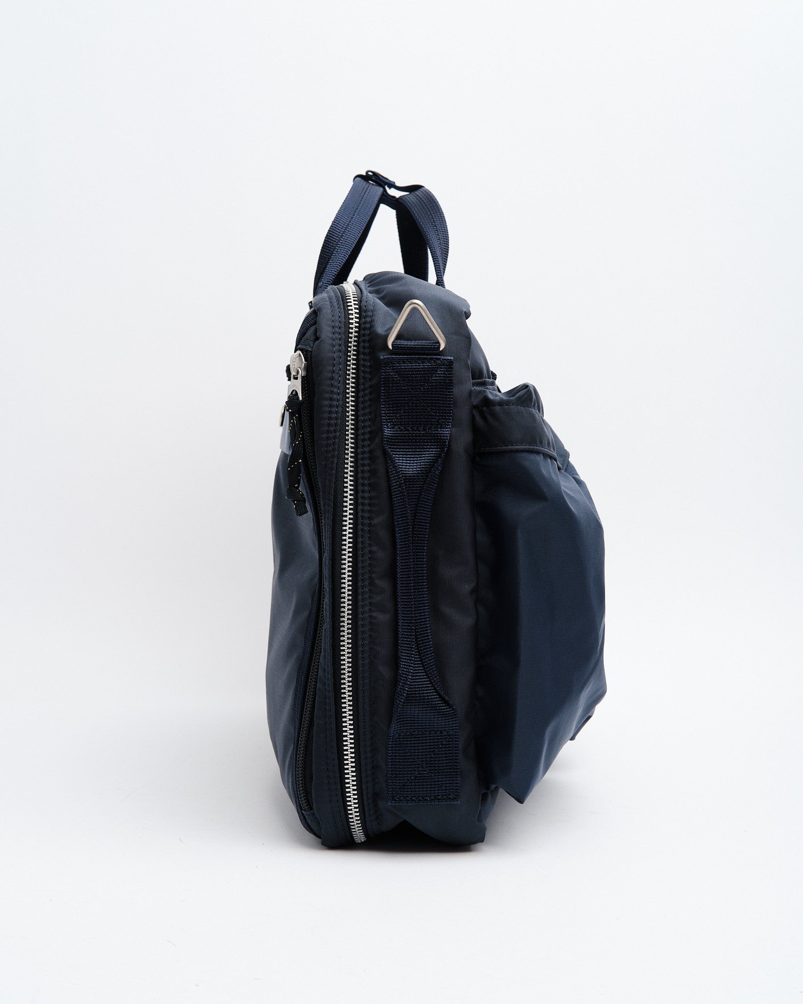 Die PORTER BY YOSHIDA Force 3-Way Aktentasche ist Teil der PORTER FORCE-Serie, inspiriert von militärischen Ästhetiken und den zufälligen Farbunterschieden bei Militärgütern. Ein bemerkenswertes Merkmal dieses Designs ist die subtile Farbvariation zwischen dem Stoff der Vordertasche und dem Hauptkörper der Tasche, was den Anschein erweckt, verschiedene Stoffpartien zu verwenden. Diese Serie feiert die unregelmäßigen Farbschemata, die in militärischer Kleidung und Accessoires zu finden sind.