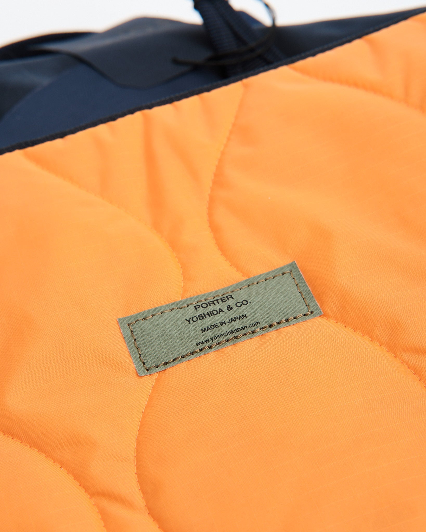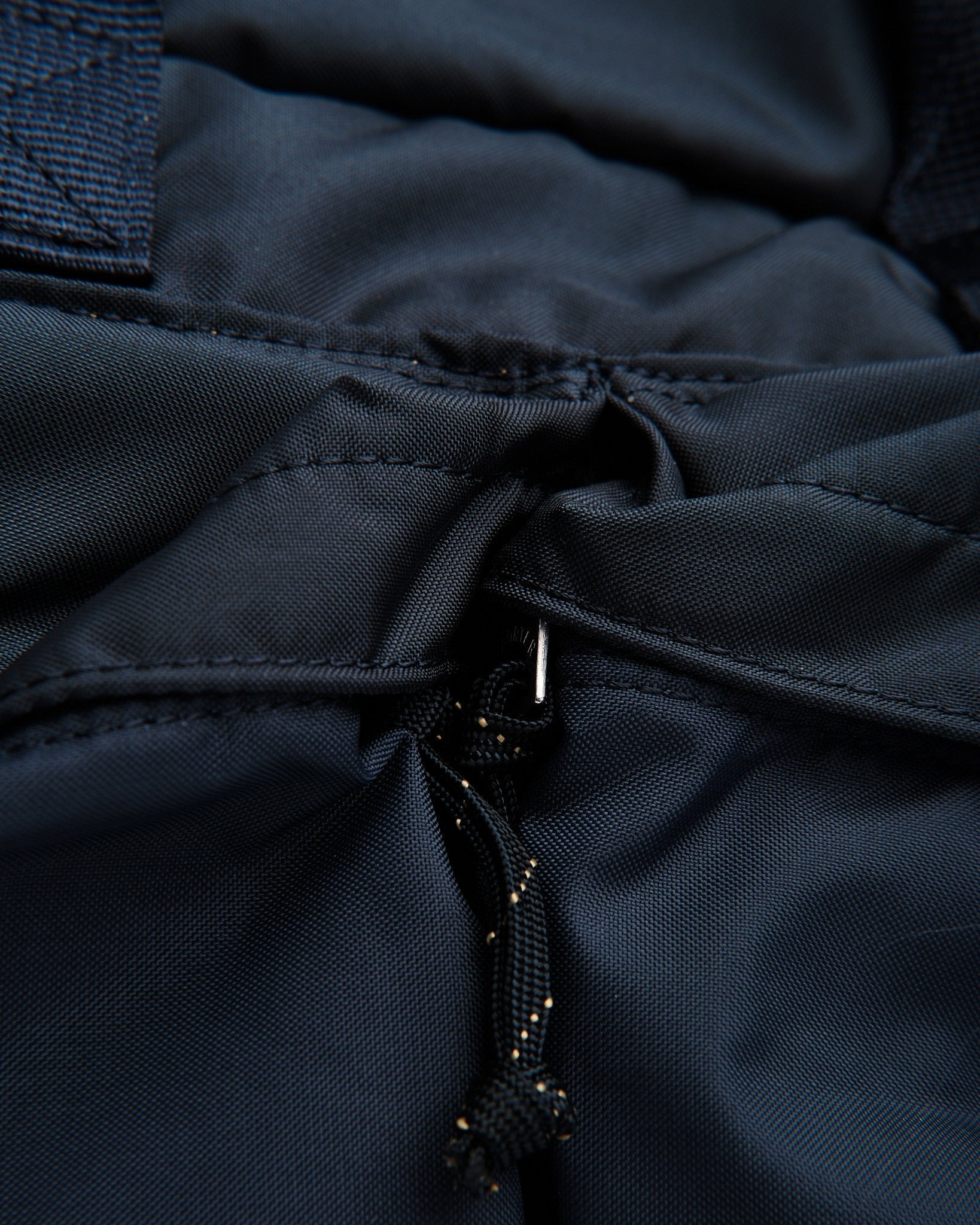 Hergestellt aus industriellem Gewebe, gewebt mit 210 Denier 6 Nylon starkem Faden, ursprünglich verwendet für Schlauchboote, ist die Tasche außergewöhnlich haltbar. Das Innere prahlt mit einem Notfallfarben-Orangefutter, inspiriert von Militärjackenfutter, und verfügt über gestepptes Ripstop-Nylon für zusätzliche Widerstandsfähigkeit.