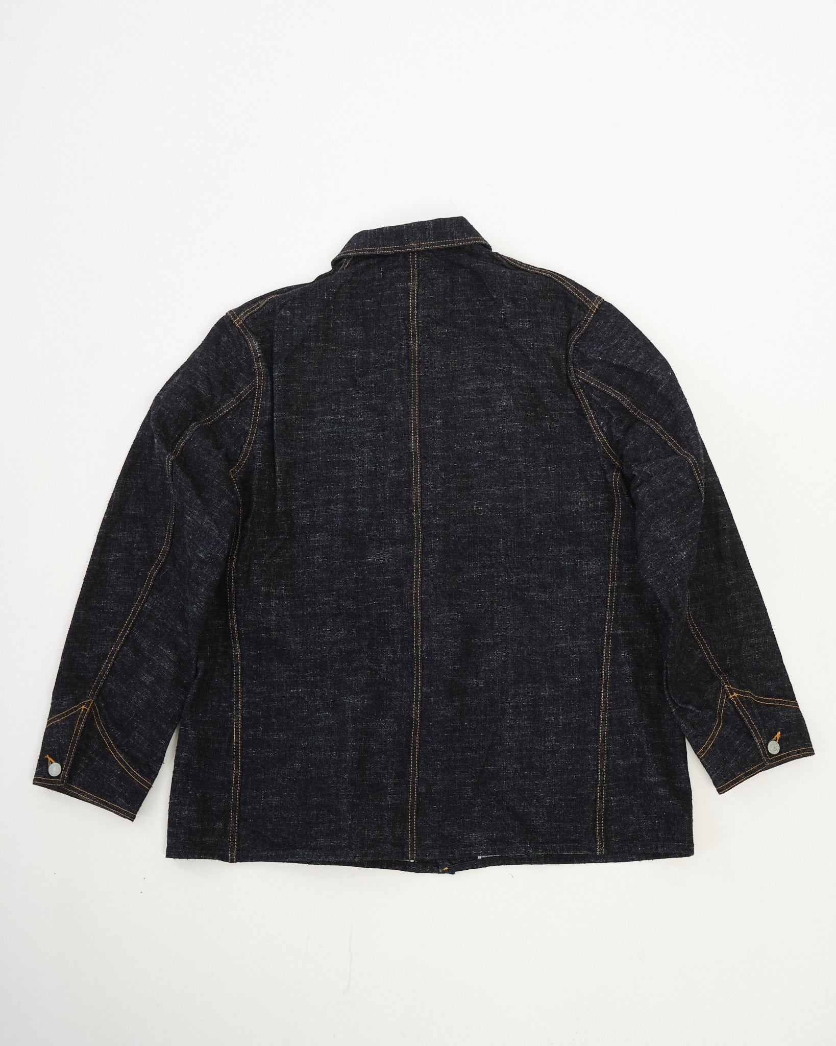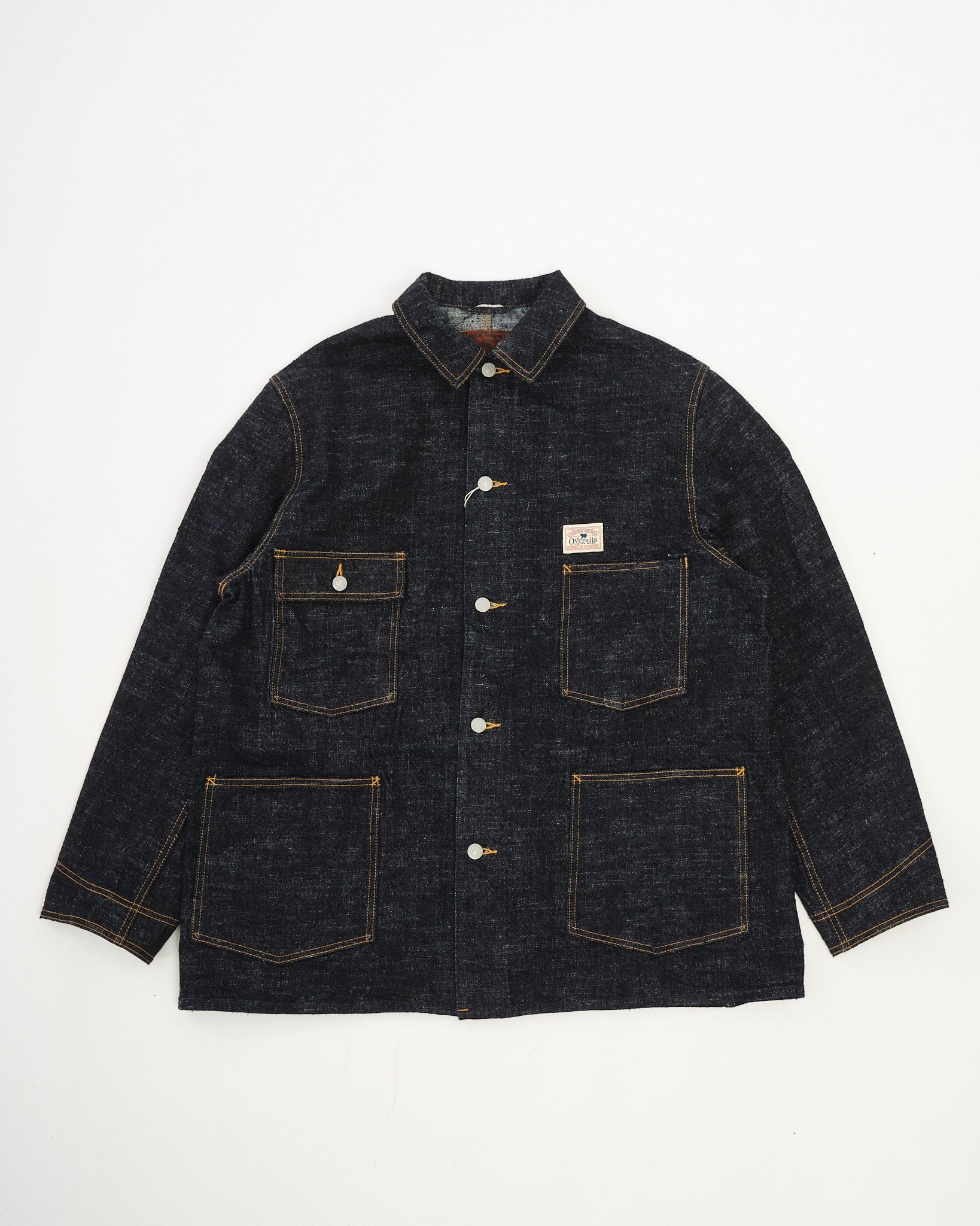 Der STUDIO D'ARTISAN GL3 Denim Overall (D4620) verkörpert die Hingabe der Marke zur traditionellen Handwerkskunst und innovativer Stoffentwicklung. Diese Overalljacke ist sorgfältig aus GL3-Denim gefertigt, einem firmeneigenen 15oz Stoff, der auf dem historischen Toyoda G3-Schützenwebstuhl produziert wird, einem der ersten Kraftwebstühle Japans. Dieser Webstuhl verleiht dem Stoff eine charakteristische ungleichmäßige Textur, die an Vintage-Arbeitskleidung erinnert.