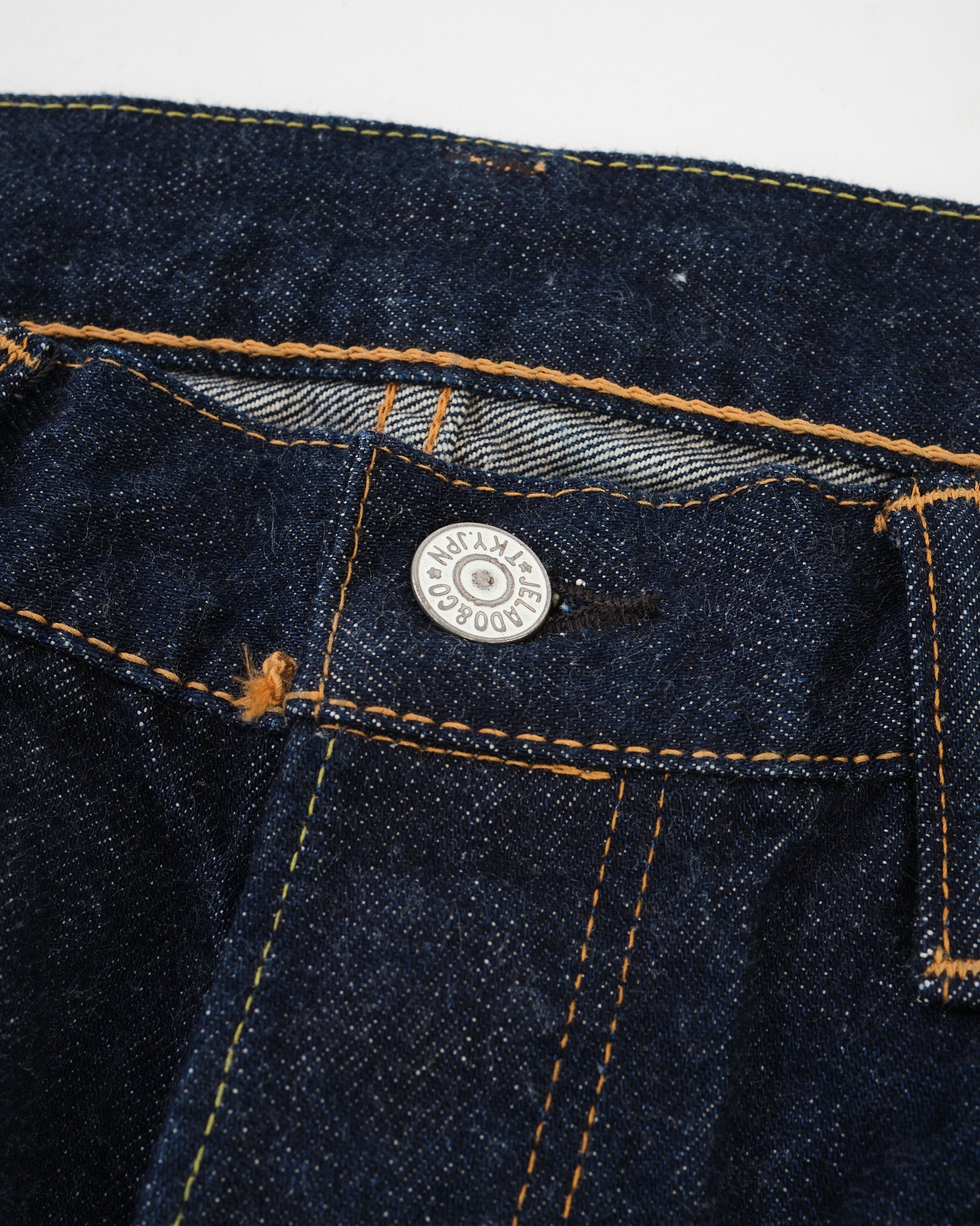 Dieses Modell folgt treu historischen Mustern, bis hin zu der charakteristischen Form der Gesäßtasche, der Einstrich-Nähmethode und der einzigartigen Farbvariation der Gürtelschlaufen. Jedes Bauteil, von den originalen Nieten bis zu den Eisen-Frontknöpfen, wurde speziell entwickelt, um Genauigkeit zu gewährleisten. Der mit XX gravierte Lederflicken dient als abschließendes Zeichen der Authentizität und macht dieses Denim zu einer der präzisesten Reproduktionen von JELADO bis heute.