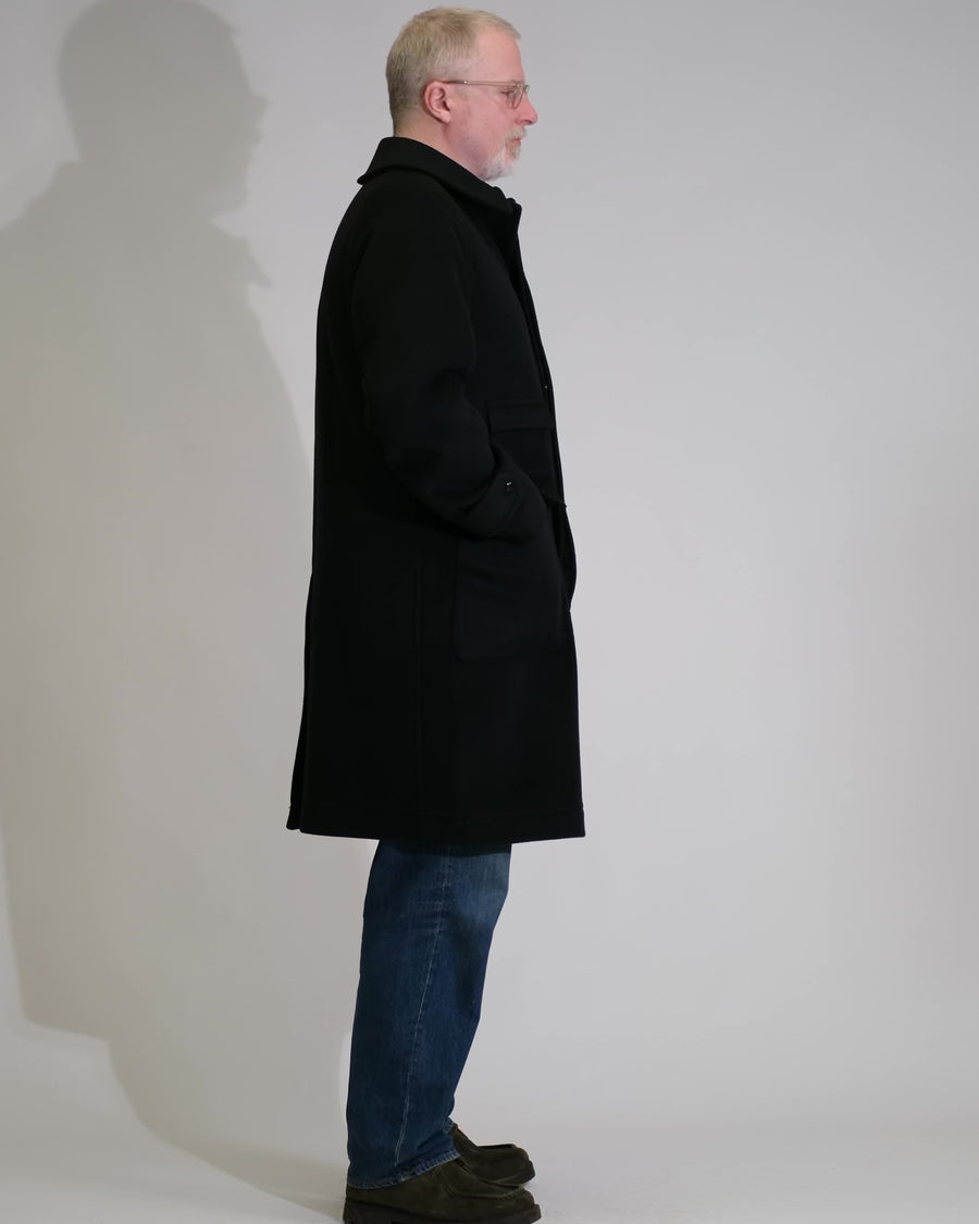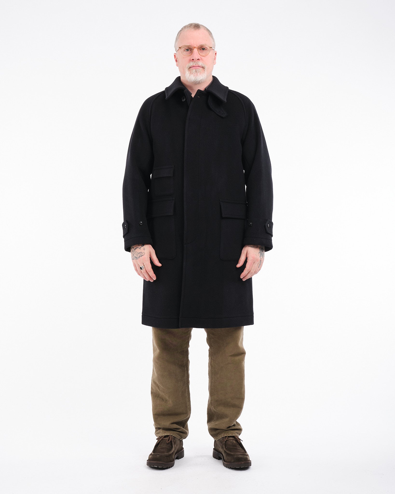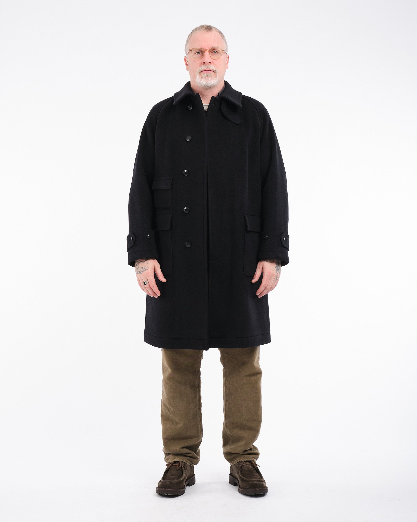 Marke: Kaptain Sunshine Style-Code: KS24FC001 Style-Name: Traveller Coat Klassische und vielseitige Top-Schwarzfarbe Geräumige Silhouette für Komfort und zum Schichten Hergestellt in Japan mit hochwertiger Handwerkskunst Langlebige Konstruktion, geeignet für städtische und Outdoor-Einstellungen Warm und praktisch, ideal für kühleres Wetter Zeitloses Design, das sich gut mit verschiedenen Stilen kombinieren lässt Perfekte Mischung aus traditioneller Ästhetik und moderner Funktionalität