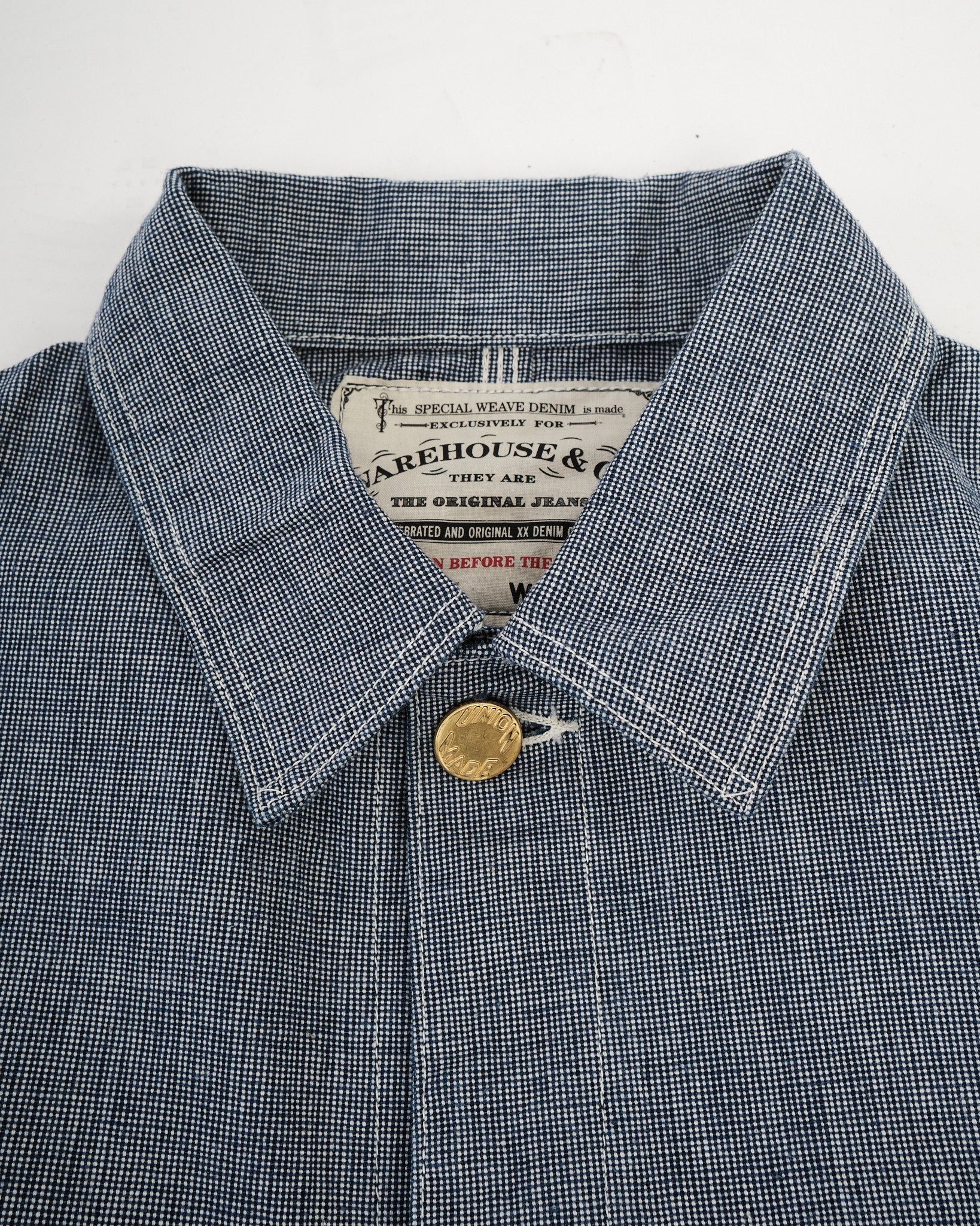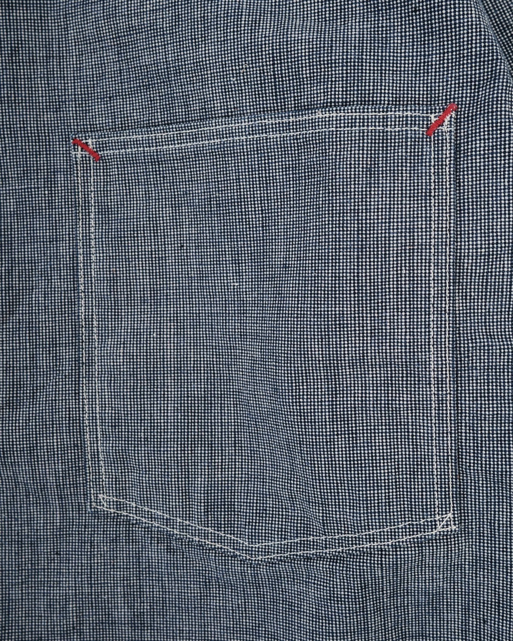 The Lot 2195 Indigo Pincheck Coverall by Warehouse is a meticulous reproduction of pre-war utility garments made for lighter-duty labor. Woven from 10×10 selvedge indigo pincheck — a rare pattern blending indigo and off-white threads — this fabric was historically favored for summer-weight uniforms used in cleaner environments like shops and warehouses. True to the era, this coverall features vintage-style change buttons, red Bardock thread at stress points, and classic chest and cuff button detailing. Built with Warehouse’s signature dedication to fabric texture and authenticity, this piece offers timeless construction with a subtle workwear twist.