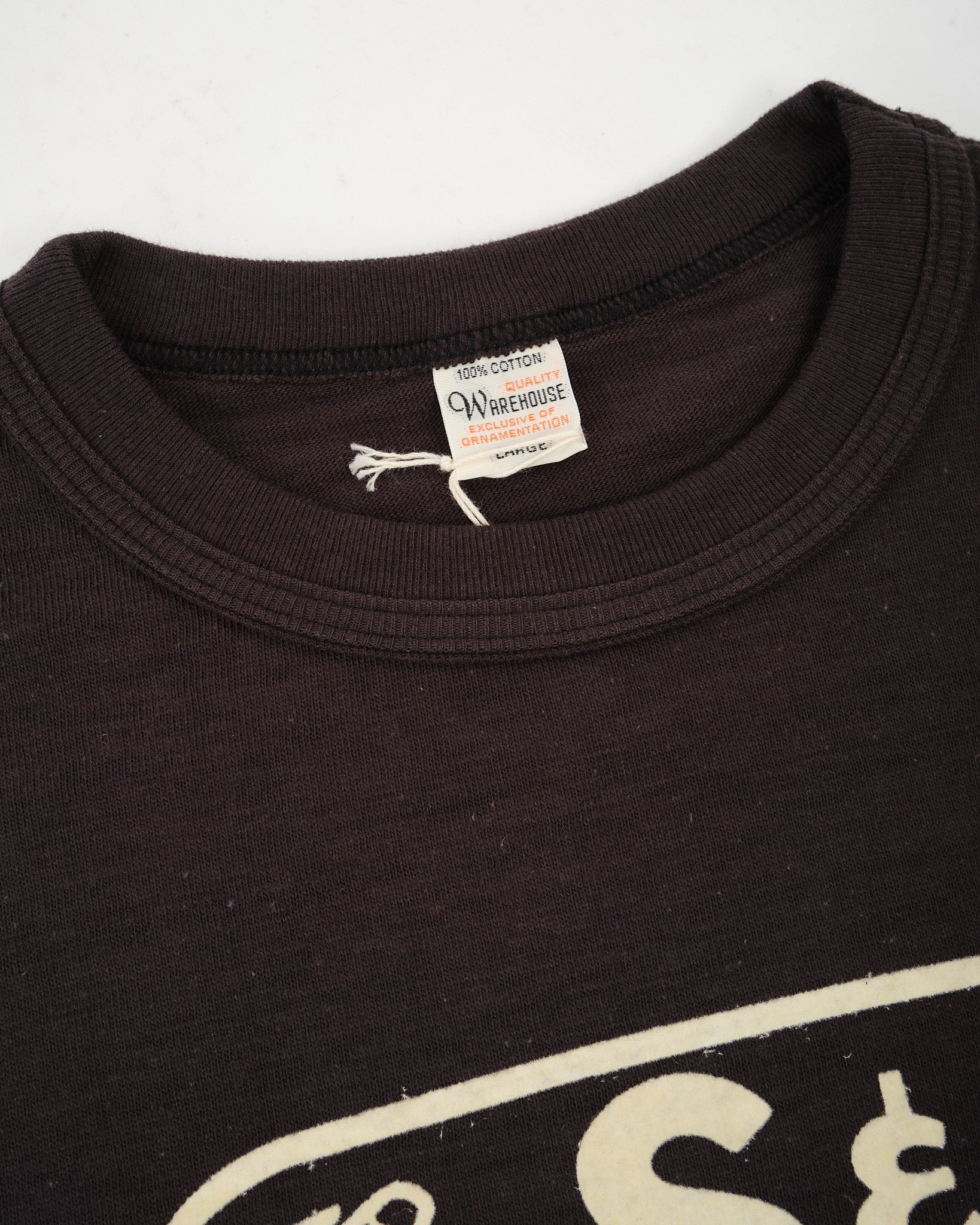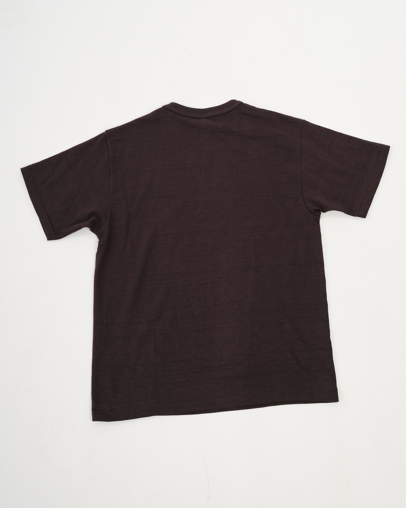 Der Halsausschnitt vermeidet die moderne, übertriebene Neigung. Stattdessen ist das Rippband für zusätzliche Stärke mit Paspeln versehen, was es ermöglicht, sich mit der Zeit natürlich zu entspannen und eine sanfte, eingelebte Neigung zu bilden. Das Ergebnis ist ein T-Shirt, das die charakteristische Balance von Warehouse zwischen Vintage-Detail, Komfort und zeitloser Tragbarkeit einfängt.