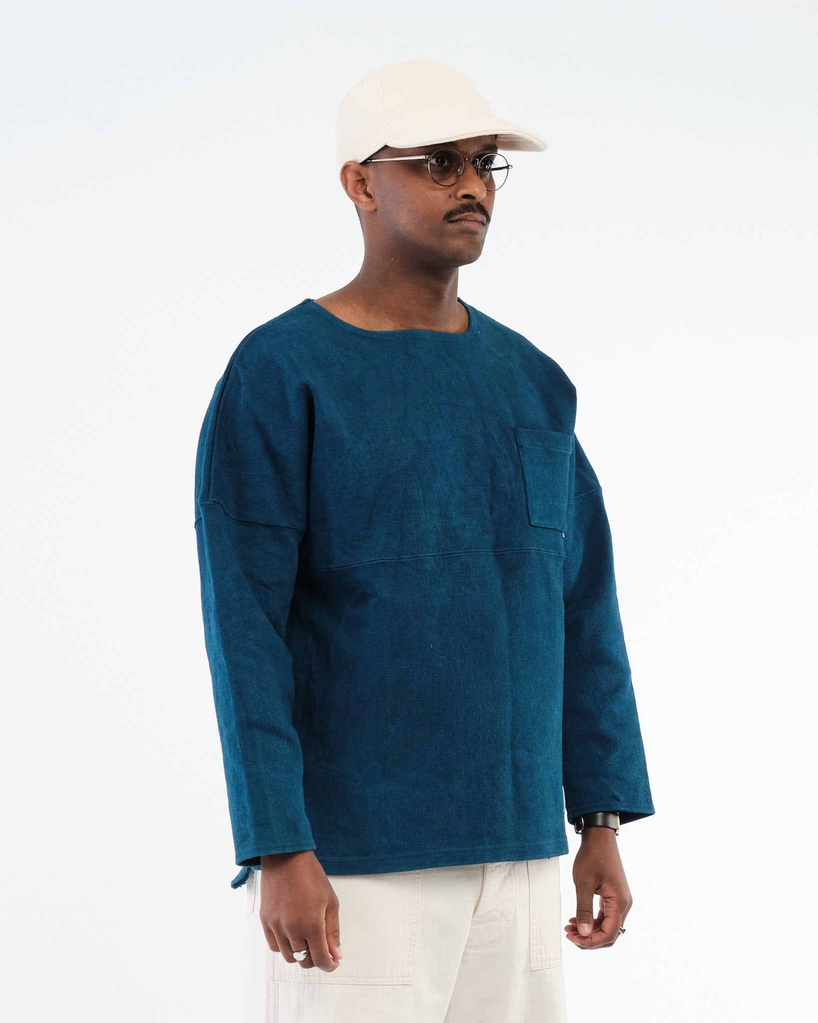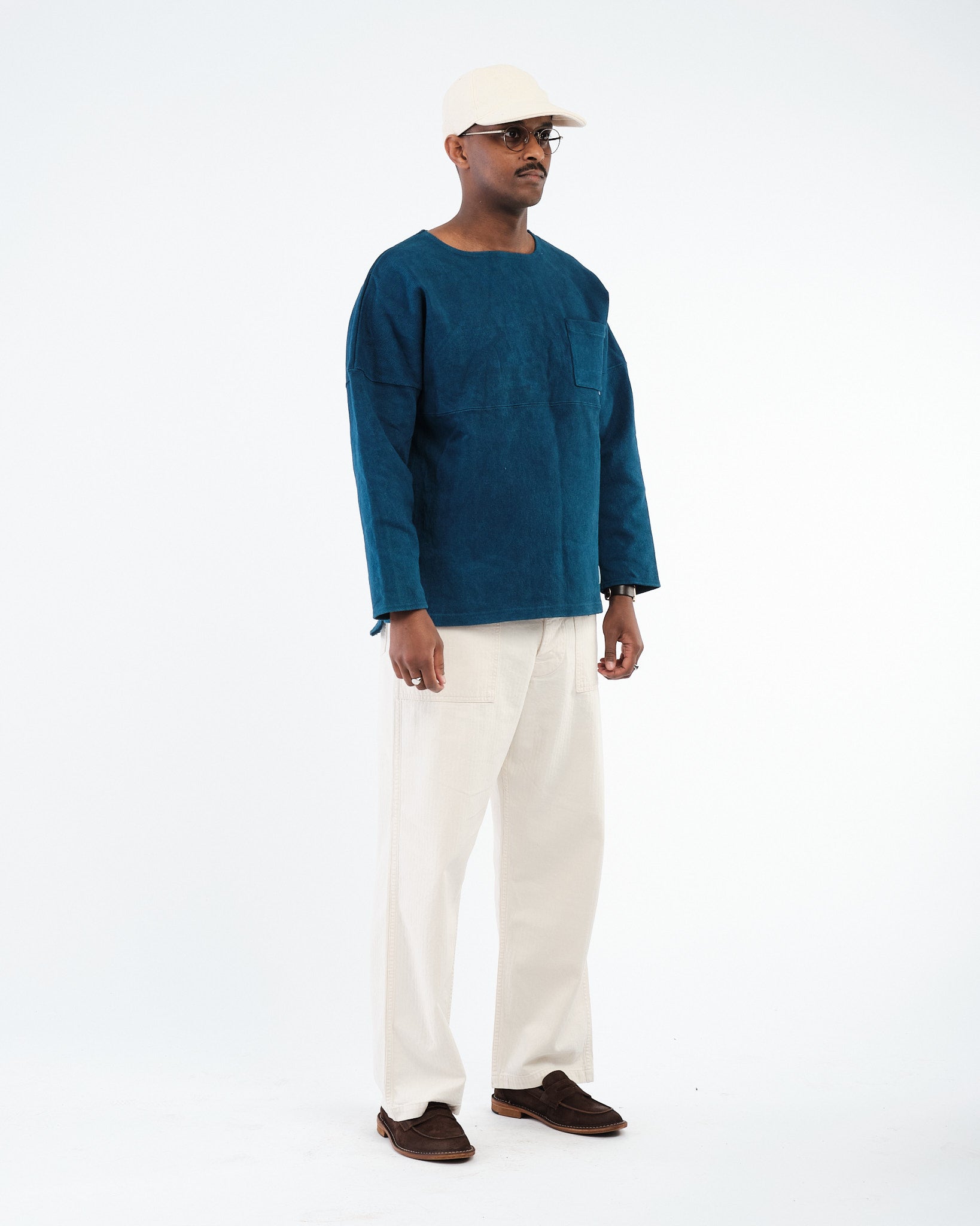 Mit dem ikonischen weiten Bootsausschnitt und leicht übergroßen Silhouette, ist dieses baskische Hemd sowohl funktional als auch stilvoll. Der schwere Baumwollstoff gewährleistet Haltbarkeit und Atmungsaktivität und macht es für alle Jahreszeiten geeignet. Verstärkte Nähte und gut konstruierte Säume tragen zu seiner Langlebigkeit bei, während die klassische Indigofarbe es unglaublich vielseitig macht.