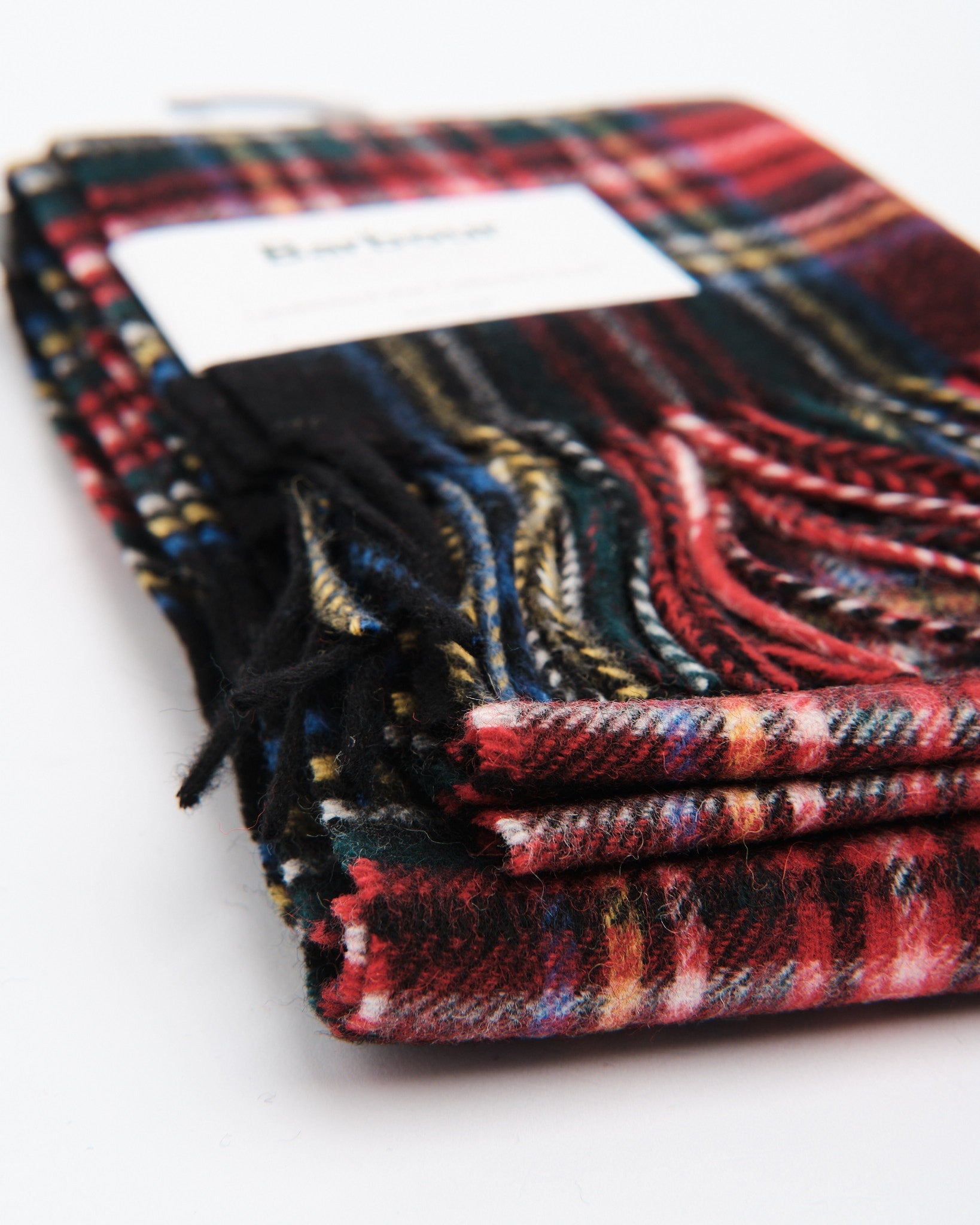 Hüllen Sie sich in zeitlosen britischen Charme mit dem Barbour New Check Tartan Schal in Black Stewart. Hergestellt aus einer luxuriösen Mischung aus Lammwolle und Kaschmir, bietet dieser Schal genau die richtige Mischung aus Weichheit und Wärme für die kälteren Monate. Das übergroße Decken-Stil Tartan-Karo ist reich an Erbe, während das gebürstete Finish eine Schicht plüschiger Textur gegen die Haut hinzufügt. Fransenkanten bringen einen klassischen Abschluss, und die 180 cm Länge des Schals ermöglicht flexibles Styling – ob gewickelt, geknotet oder drapiert.