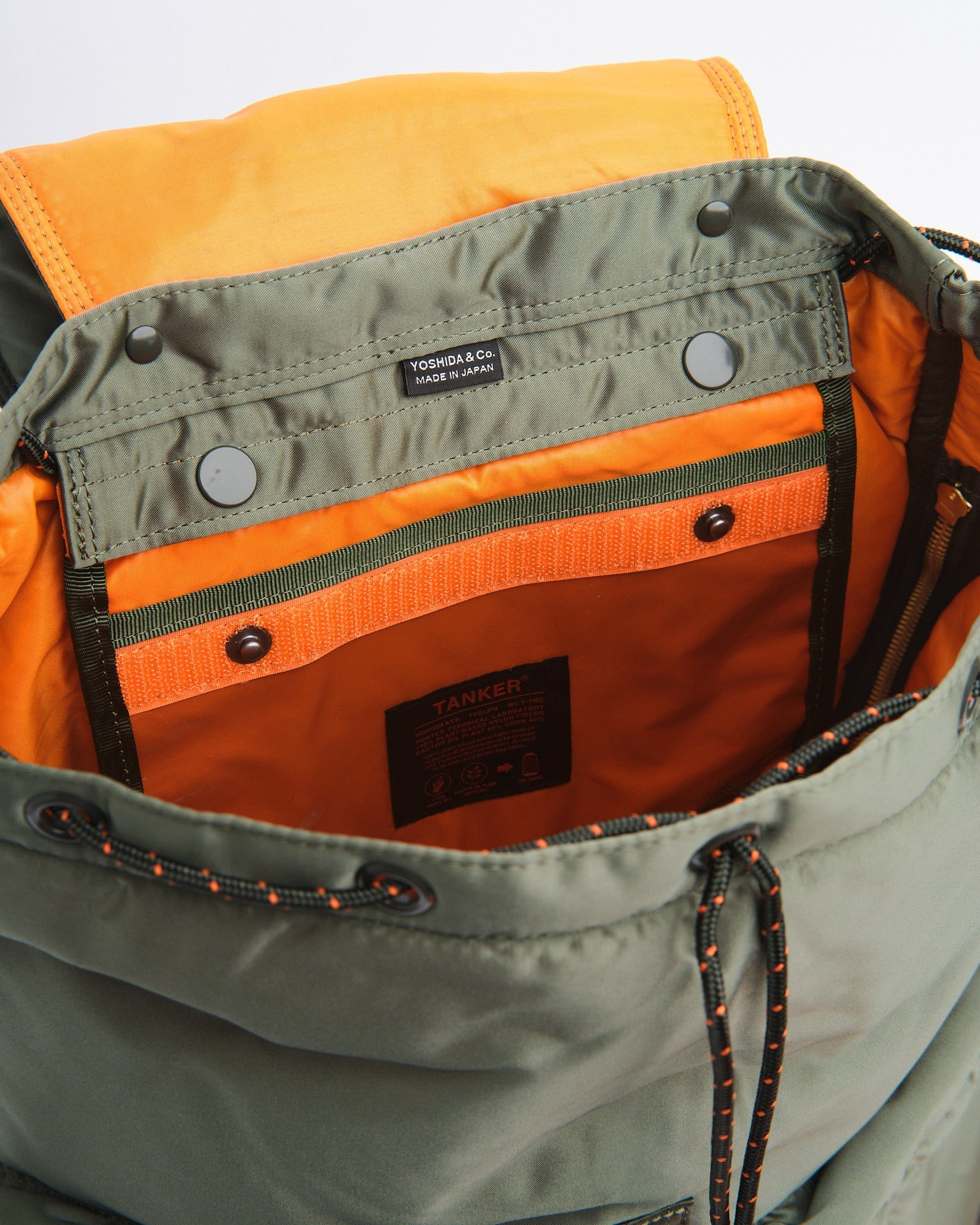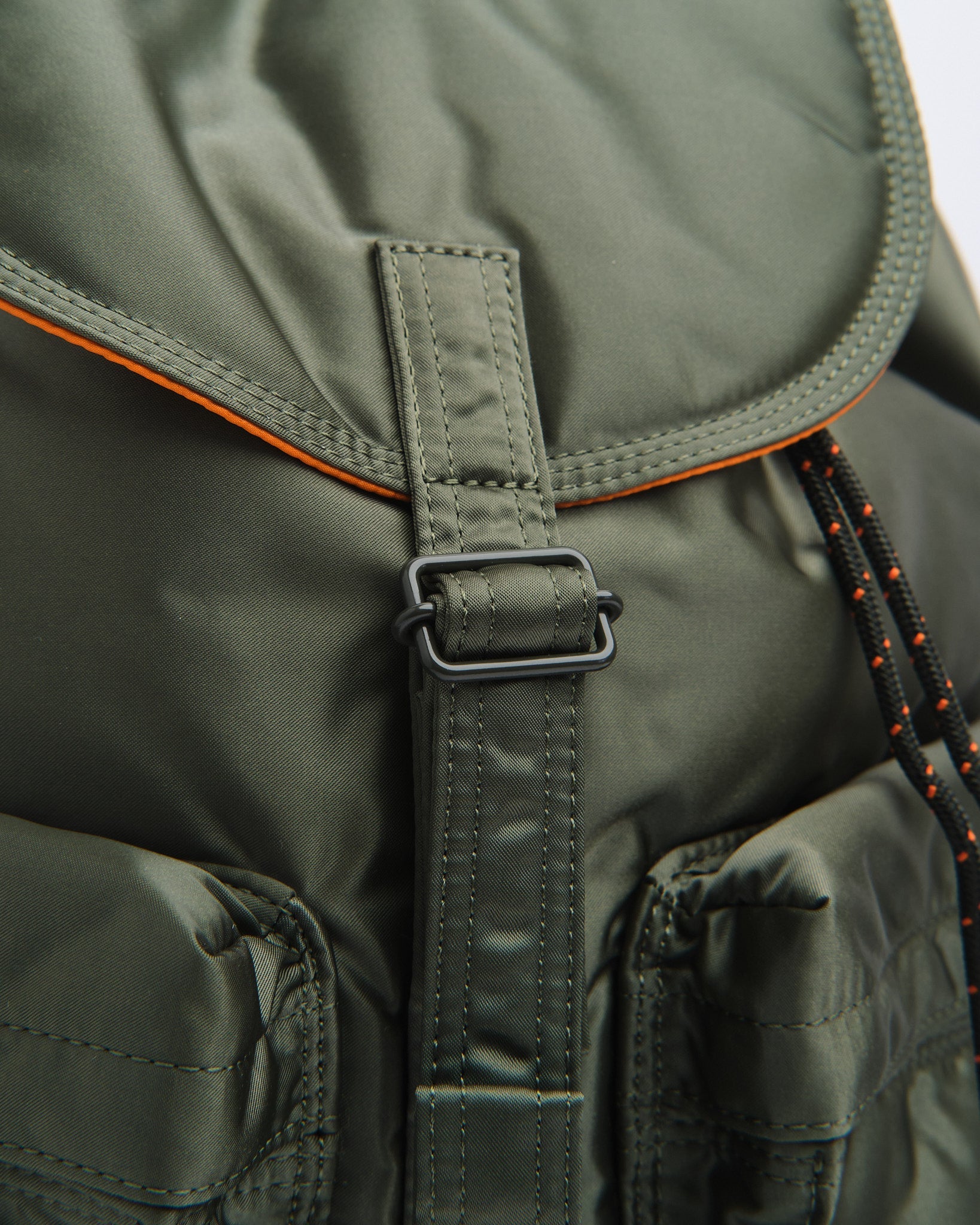 Der PORTER BY YOSHIDA Tanker Rucksack (622-01630-30) in Salbeigrün ist ein Highlight der neu aufgelegten New Tanker-Serie. Hergestellt aus 100% pflanzenbasiertem Nylon, gewonnen aus Mais- und Rizinusölpflanzen, setzt der Rucksack das Erbe der ikonischen Tanker-Kollektion fort, nun mit modernen Aktualisierungen. Der Stoff, produziert von Toray Industries, bietet überlegene Stärke, Geschmeidigkeit und einen lebhaften Glanz, während er einen umweltfreundlichen Ansatz beibehält.