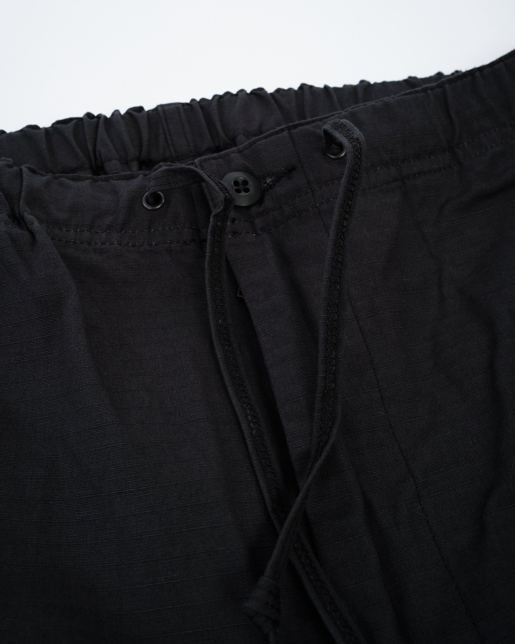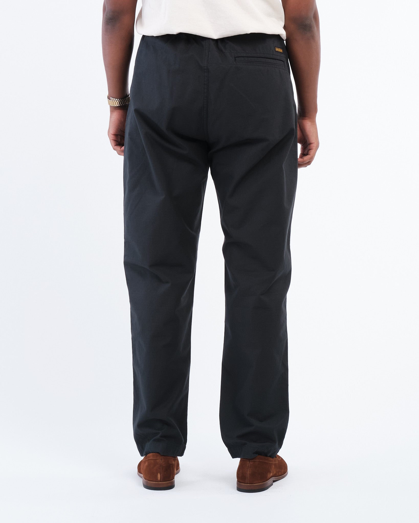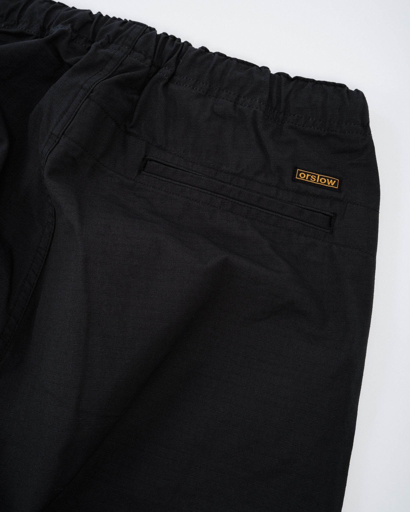Die orSlow NEW YORKER PANTS vereinen militärisch inspirierte Strapazierfähigkeit mit modernem Schnitt und sind damit ein vielseitiges Must-have. Hergestellt aus 100% Baumwoll-Ripstop-Gewebe, bieten sie sowohl Atmungsaktivität als auch Widerstandsfähigkeit für das ganze Jahr. Die Farbgebung Sumi Black sorgt für eine raffinierte, unaufdringliche Ästhetik, während der elastische Bund mit integriertem Kordelzug eine bequeme, anpassbare Passform gewährleistet. Mit einer tapered Silhouette bieten sie einen schlanken, zeitgemäßen Look ohne dabei die Bewegungsfreiheit einzuschränken. Einschubtaschen vorne und eine paspelierte Gesäßtasche fügen alltägliche Funktionalität hinzu. Entworfen und gefertigt in Osaka, Japan, verkörpern diese Hosen die charakteristische Qualität und zeitlose Anziehungskraft von orSlow.