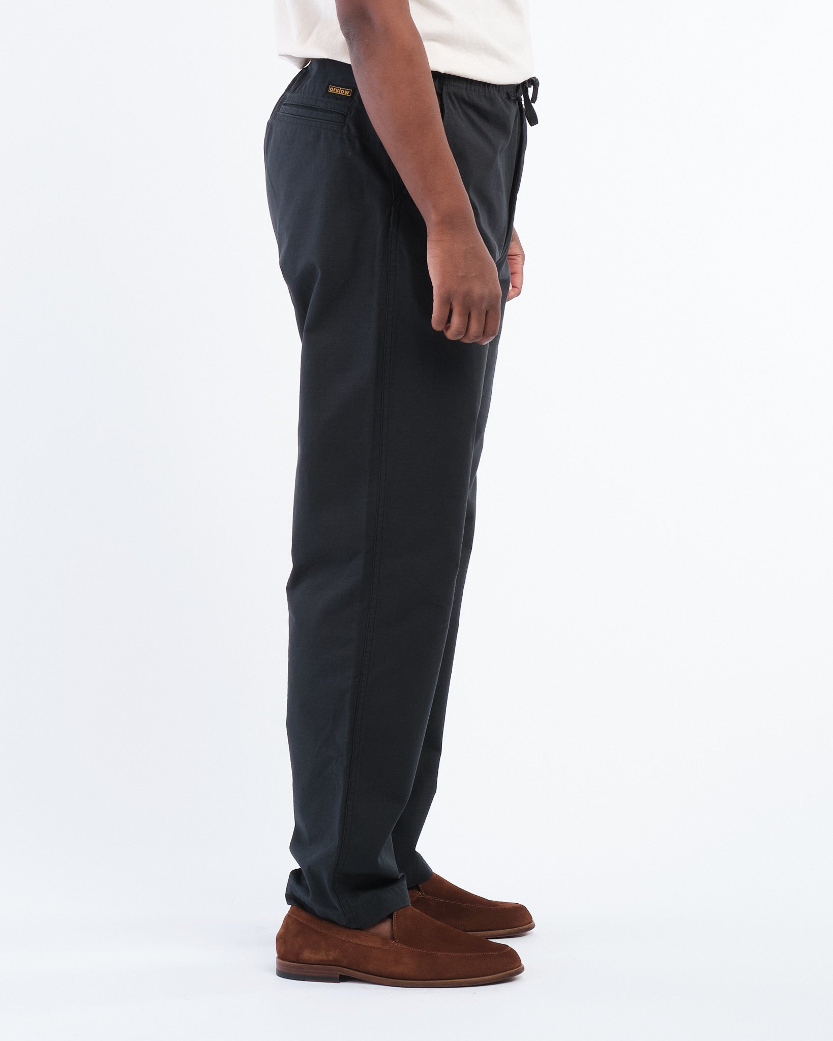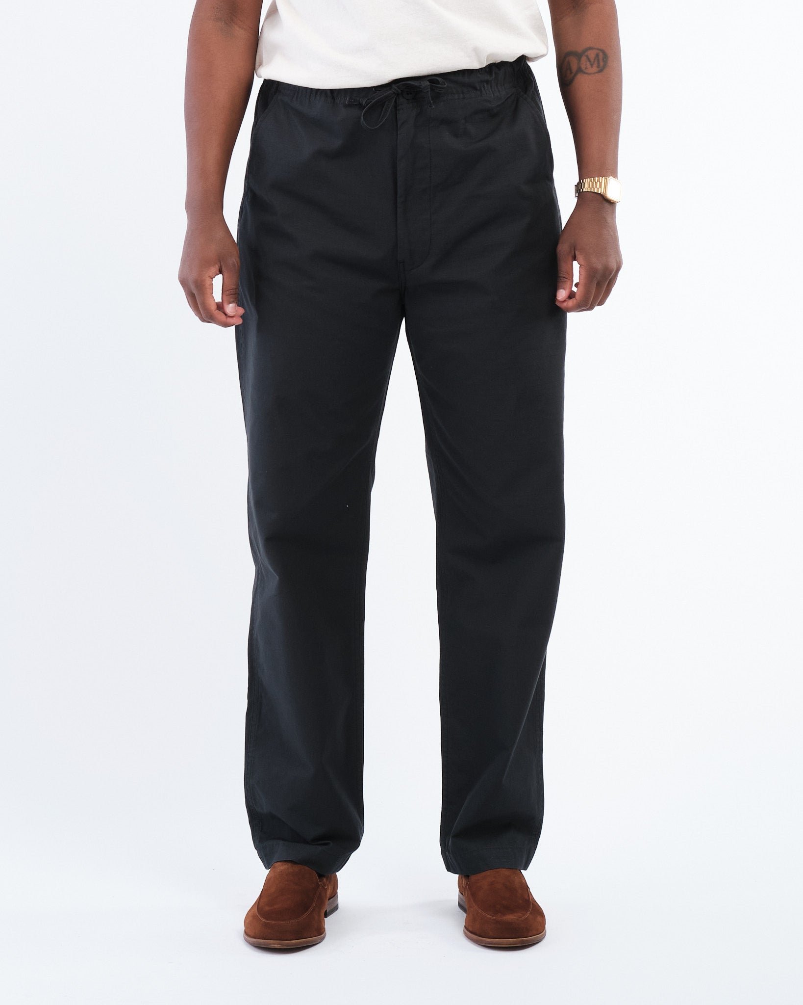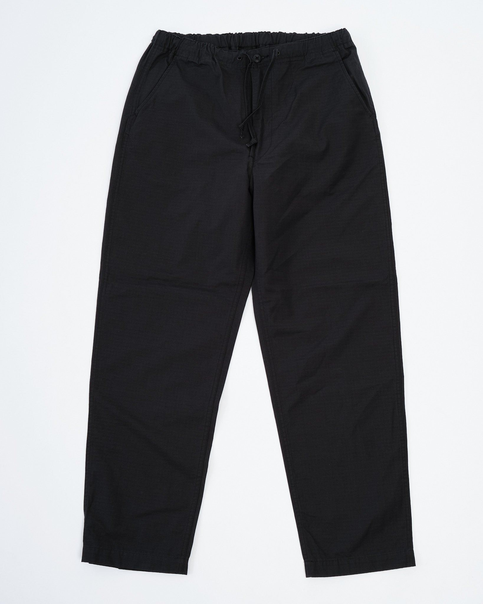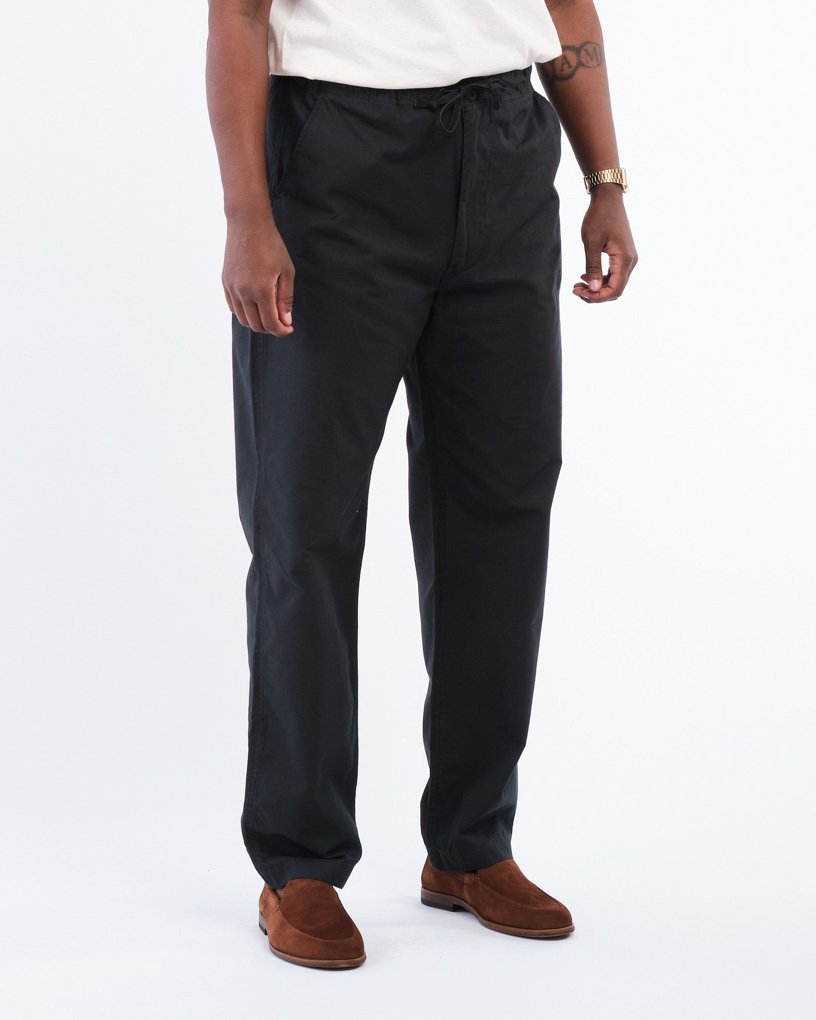 Die orSlow NEW YORKER PANTS vereinen militärisch inspirierte Strapazierfähigkeit mit modernem Schnitt und sind damit ein vielseitiges Must-have. Hergestellt aus 100% Baumwoll-Ripstop-Gewebe, bieten sie sowohl Atmungsaktivität als auch Widerstandsfähigkeit für das ganze Jahr. Die Farbgebung Sumi Black sorgt für eine raffinierte, unaufdringliche Ästhetik, während der elastische Bund mit integriertem Kordelzug eine bequeme, anpassbare Passform gewährleistet. Mit einer tapered Silhouette bieten sie einen schlanken, zeitgemäßen Look ohne dabei die Bewegungsfreiheit einzuschränken. Einschubtaschen vorne und eine paspelierte Gesäßtasche fügen alltägliche Funktionalität hinzu. Entworfen und gefertigt in Osaka, Japan, verkörpern diese Hosen die charakteristische Qualität und zeitlose Anziehungskraft von orSlow.