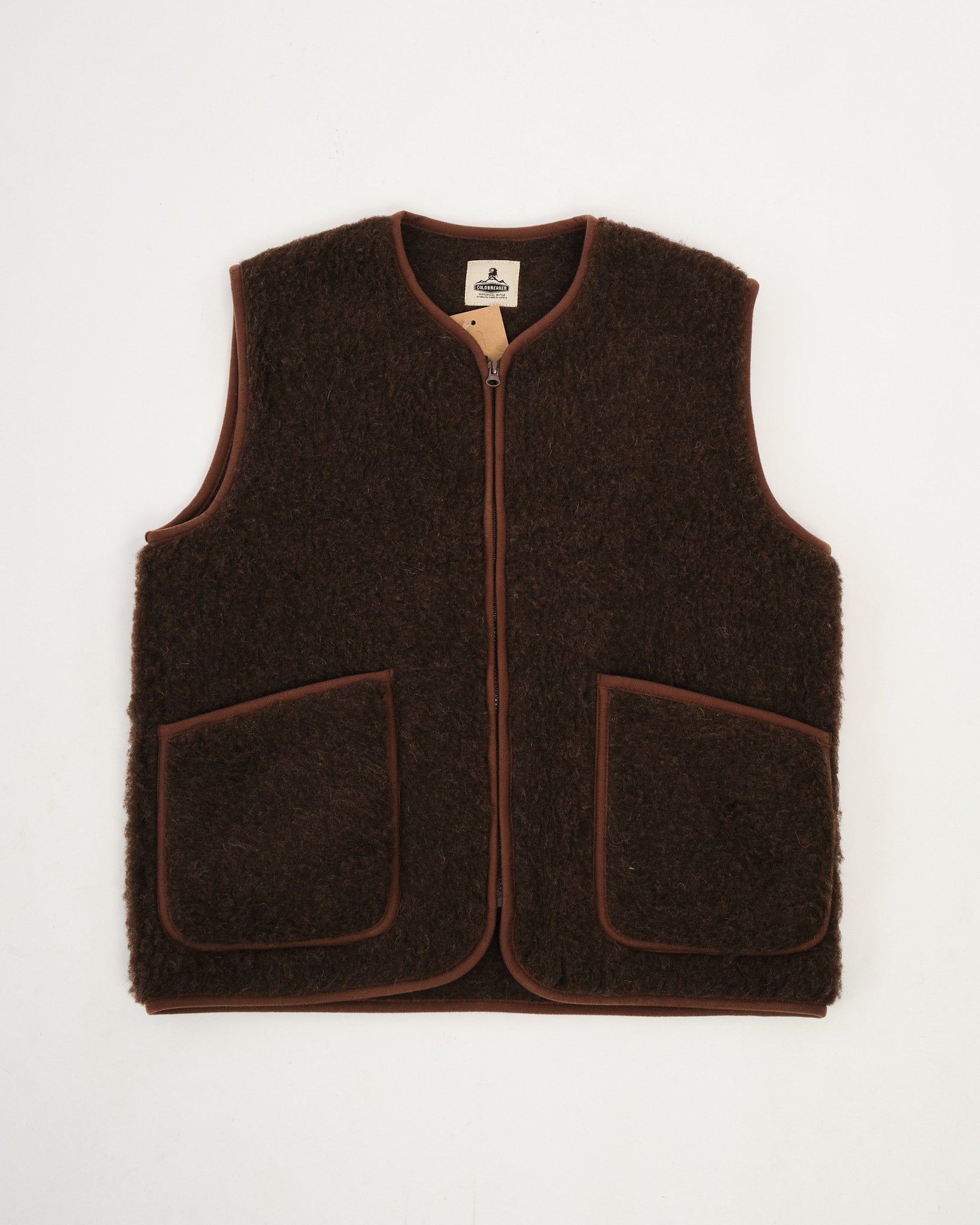 Die Pepitko Wollweste in Dunkelbraun von Coldbreaker ist eine unkomplizierte Schicht, die für Wärme und Praktikabilität entwickelt wurde. Hergestellt in Polen aus dichtem Wollflor, bietet sie natürliche Isolierung ohne aufzutragen — perfekt für Übergangswetter oder zum Schichten im Winter. Die klare Silhouette, der durchgehende Reißverschluss und der hohe Kragen bieten alltäglichen Nutzen, während der dunkelbraune Ton unaufdringliche Vielseitigkeit verleiht. Ob über Flanell getragen oder unter einem Mantel, diese Weste ist darauf ausgelegt, Ihren Kern warm zu halten und Ihren Stil in Funktion zu verankern.