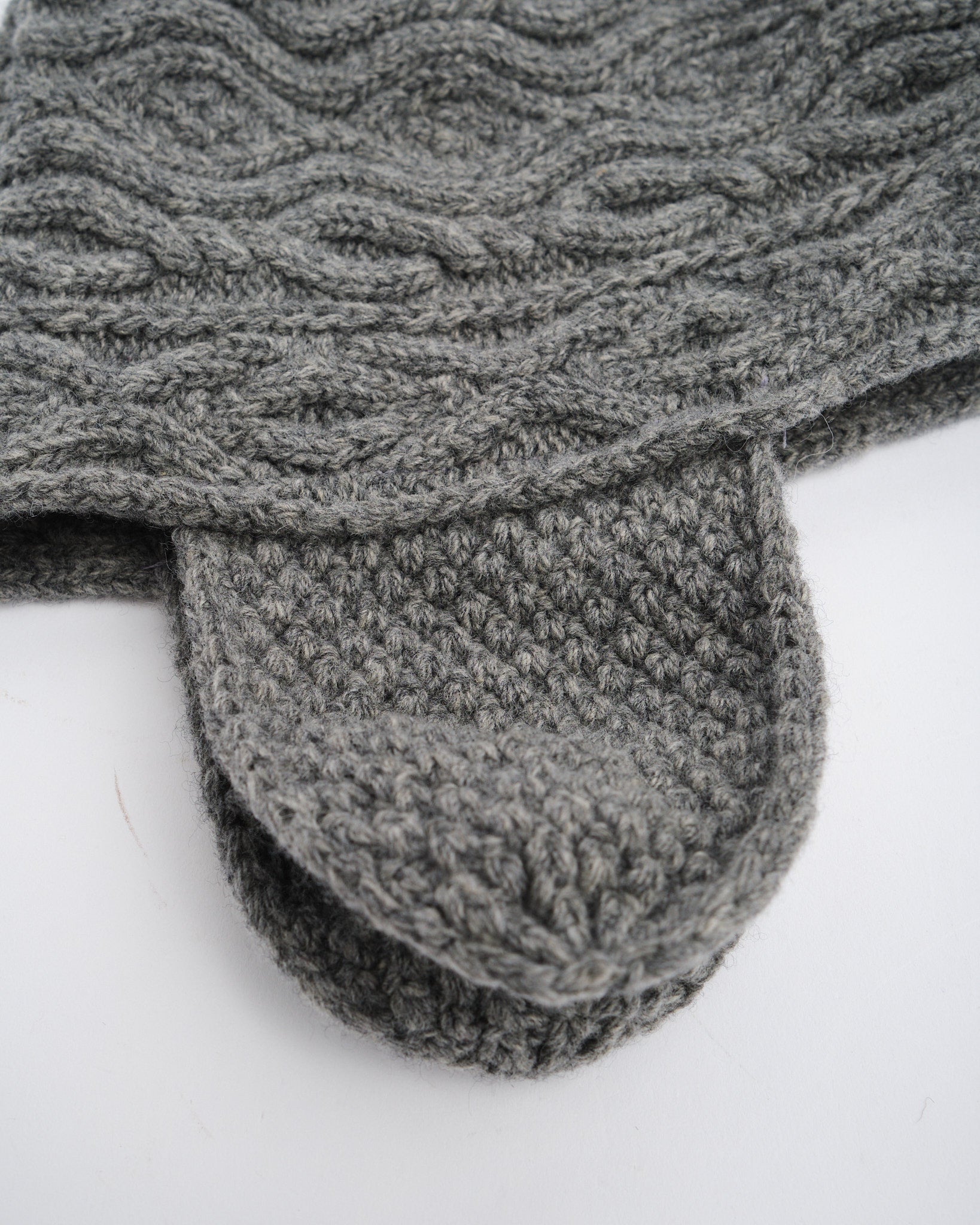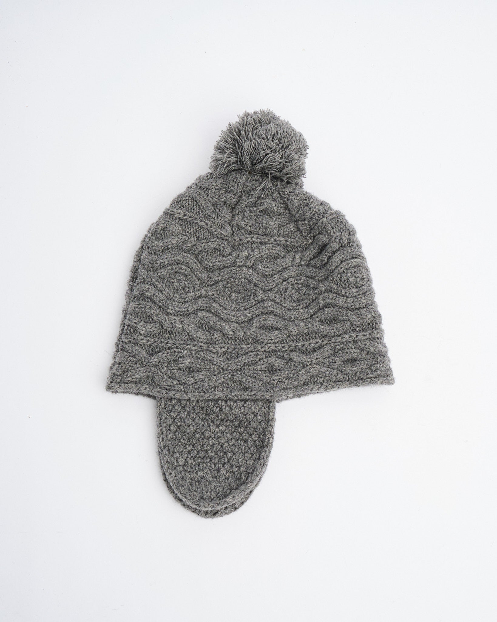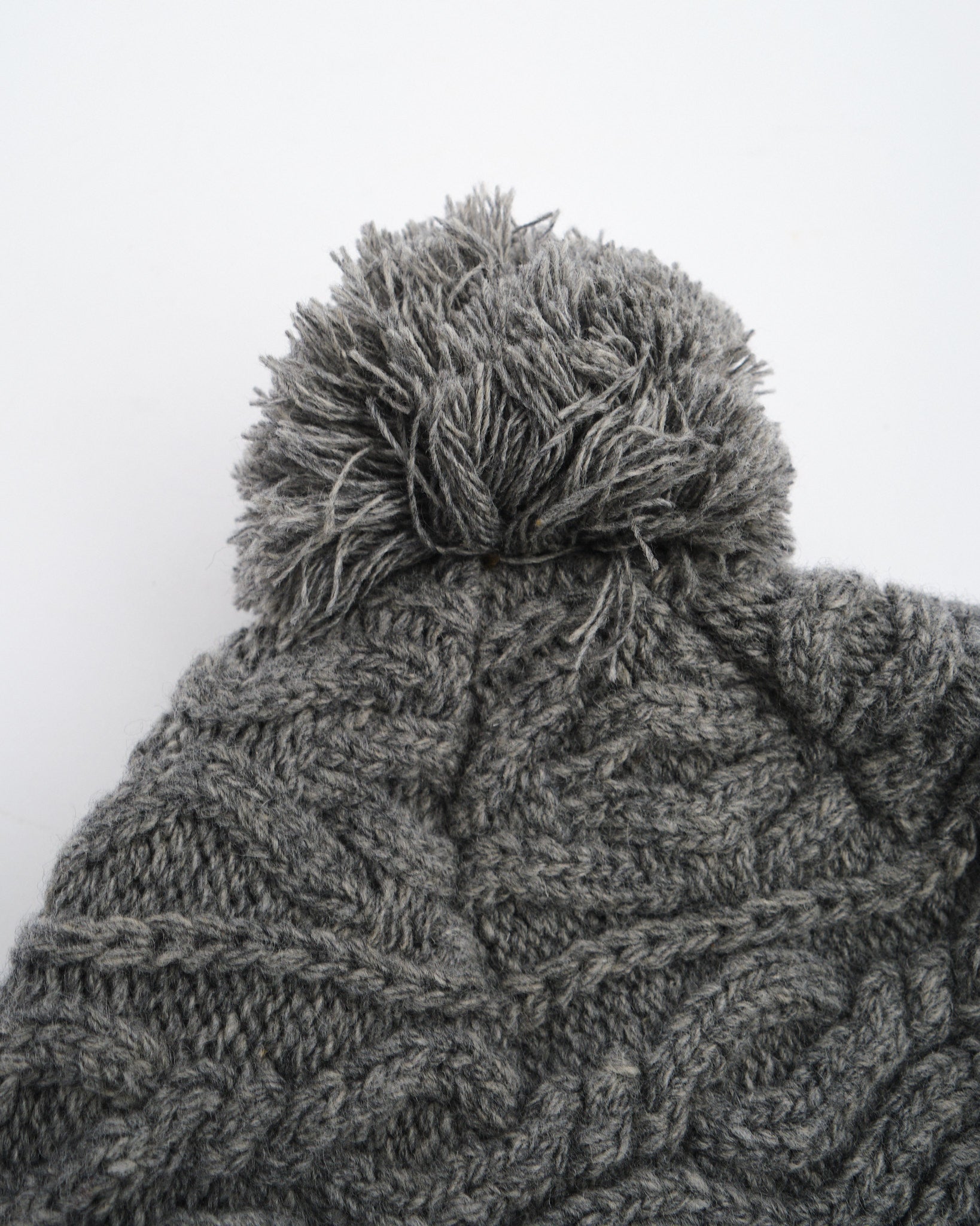 The Pom Pom Beanie in Grey by Found Feather delivers playful charm with premium construction. Made in Japan from a washable lambswool blend, this cold-weather essential features a 3x cable knit pattern for rich texture and structure. An oversized 20 cm crown, 11 cm ear panels, and a soft self-yarn pom pom ensure both warmth and whimsy. With a 23 cm diameter and unisex one-size fit, it's finished with a QR-coded care label and a clean woven tag — proof that fun and functionality can go hand in hand.