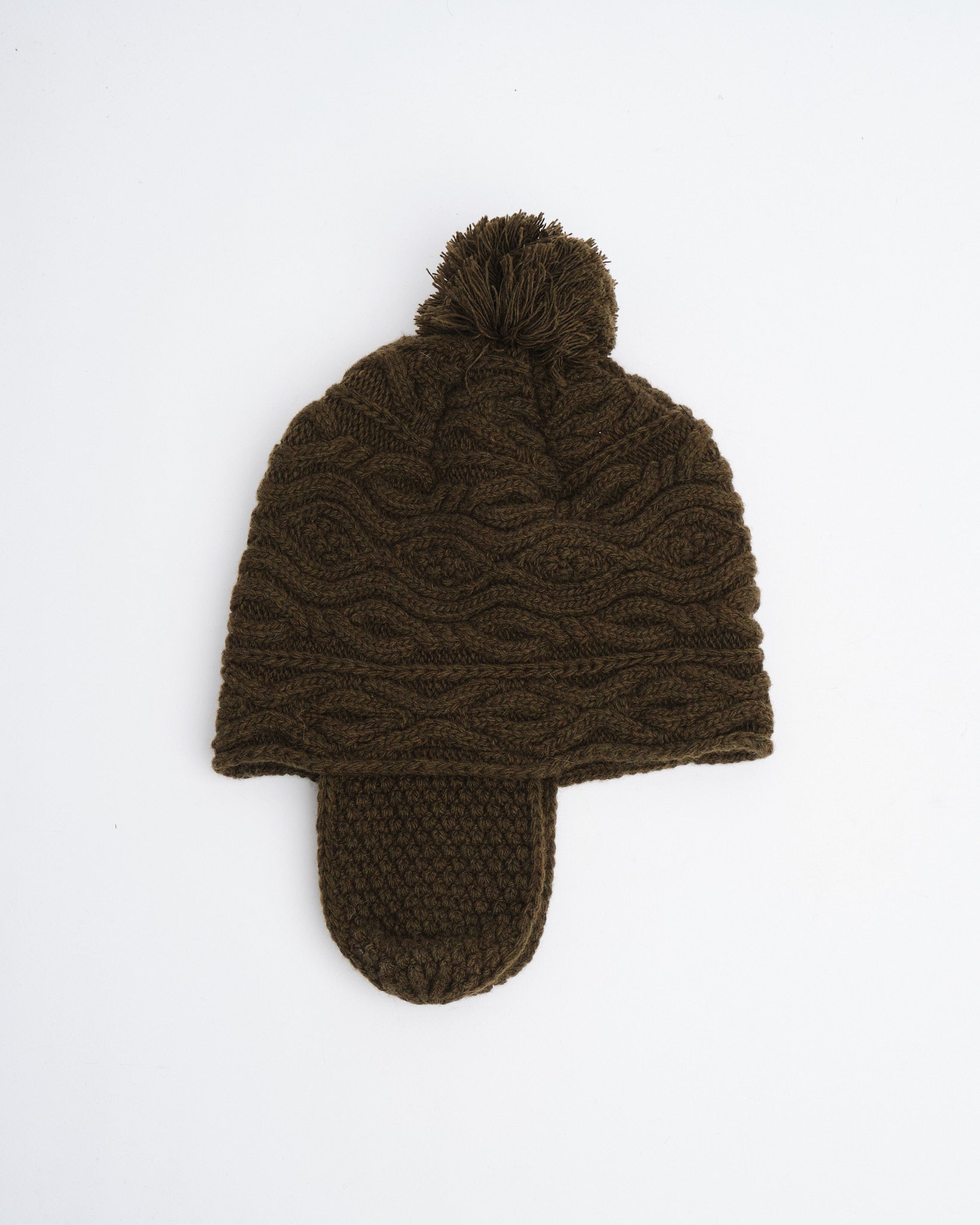 The Pom Pom Beanie in Olive by Found Feather is a perfect blend of cozy warmth and playful personality. Crafted in Japan from a washable lambswool blend, it features a chunky 3x cable knit pattern and soft brushed texture. With an oversized 20 cm crown and 11 cm ear panels, it’s designed for cold days and complete comfort. A self-yarn pom pom tops it all off, while a one-panel construction and QR-coded care label round out this unisex winter essential.