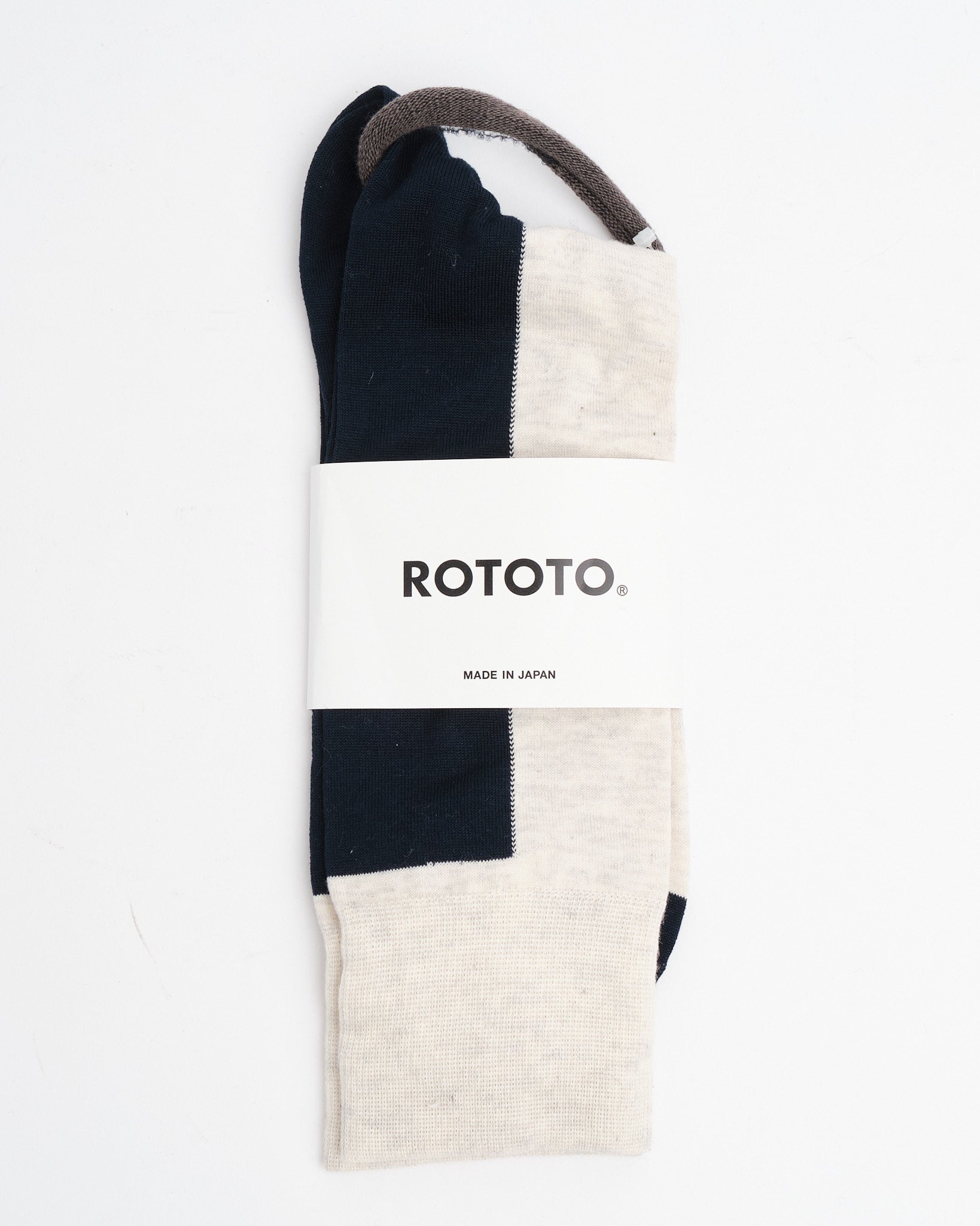 These refined two-tone socks by RoToTo blend functionality and innovation, made in Japan’s Nara Prefecture—home to traditional sock craftsmanship. The Vertical Crew R1316 uses high-gauge knitting machinery and premium Supima cotton for a lightweight, breathable texture that feels both smooth and supportive. The signature design features contrasting front and back panels for a subtle yet distinct look.