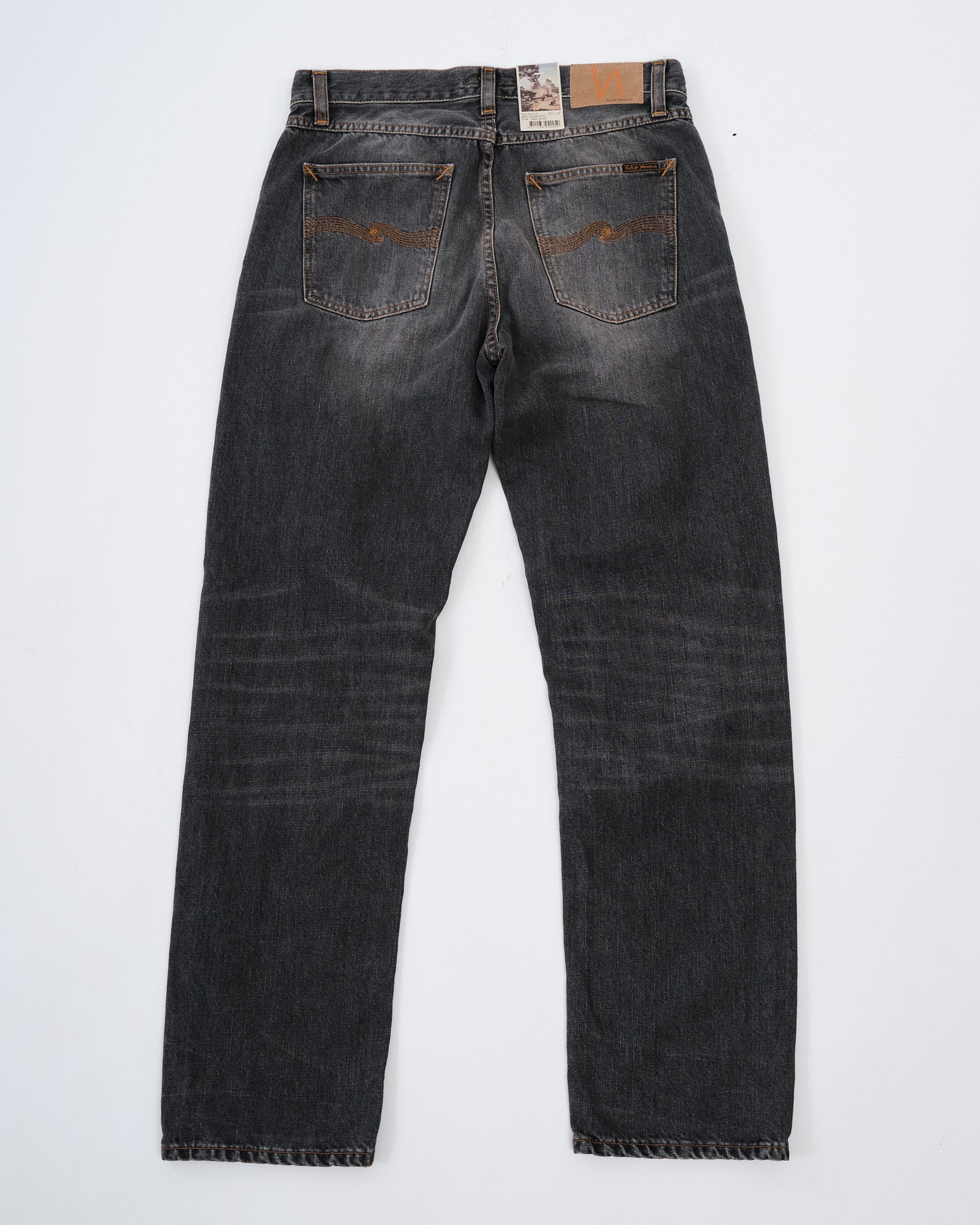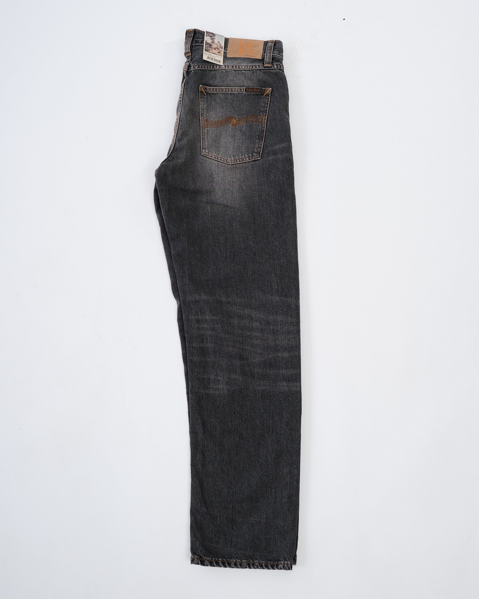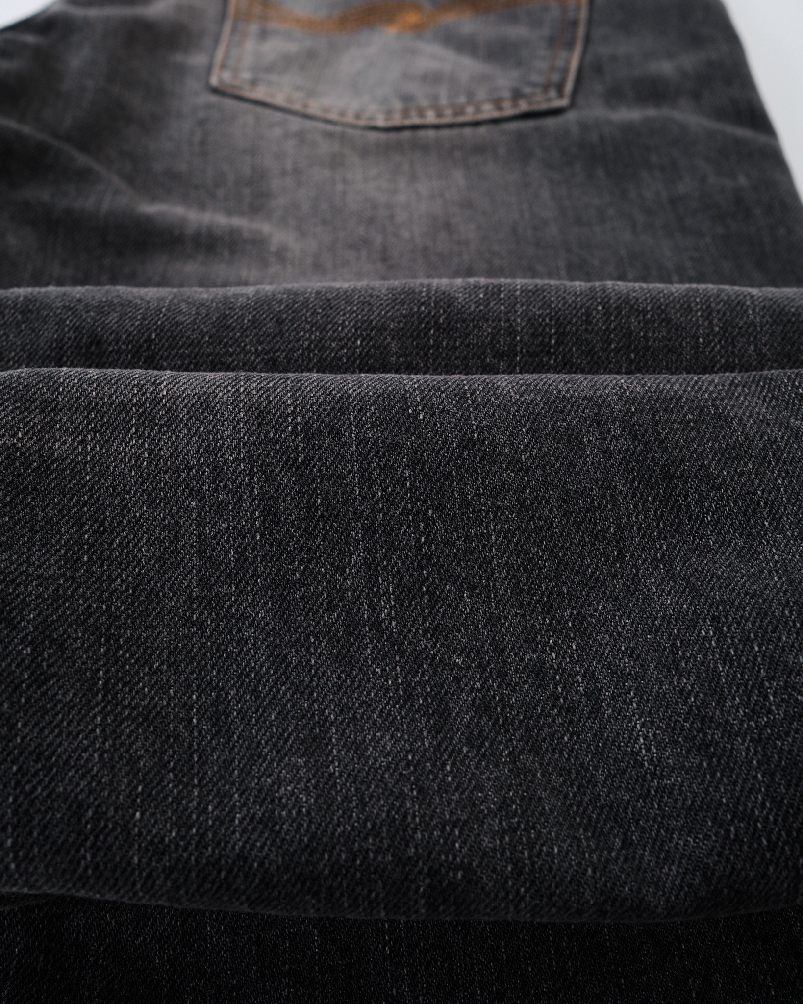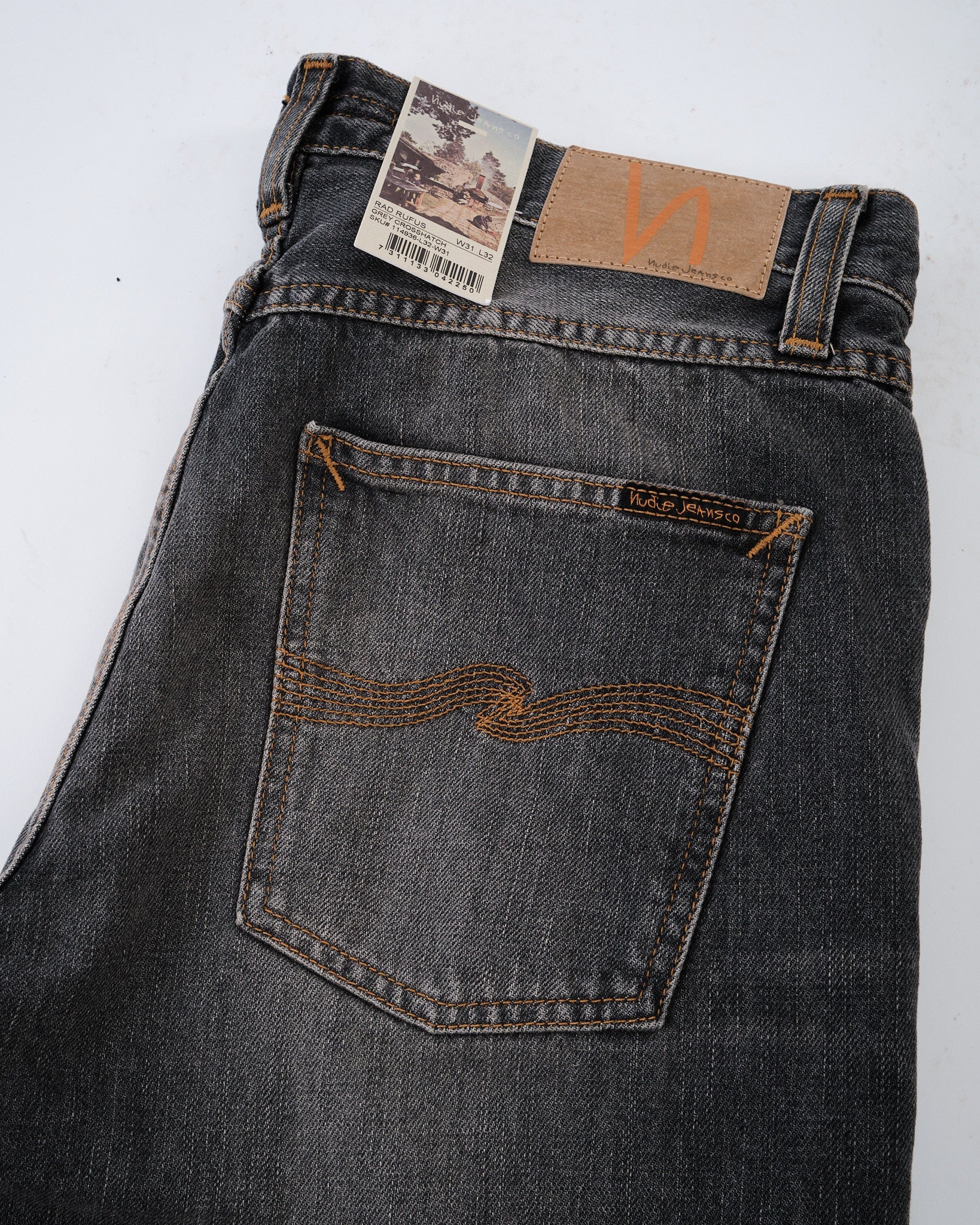 Tauchen Sie ein in kühnen Denim-Stil mit NUDIE JEANS CO. RAD RUFUS GRAU CROSSHATCH. Diese hochgeschnittenen, regulär geschnittenen Jeans mit geradem Bein zeichnen sich durch eine auffällige graue Waschung mit tiefen Kontrasten aus. Gefertigt aus schwarzem Denim, zeigt der Stoff eine robuste Kreuzschraffur-Textur, die reiche Höhen und Tiefen mit einem dynamischen, faserigen Erscheinungsbild schafft.
