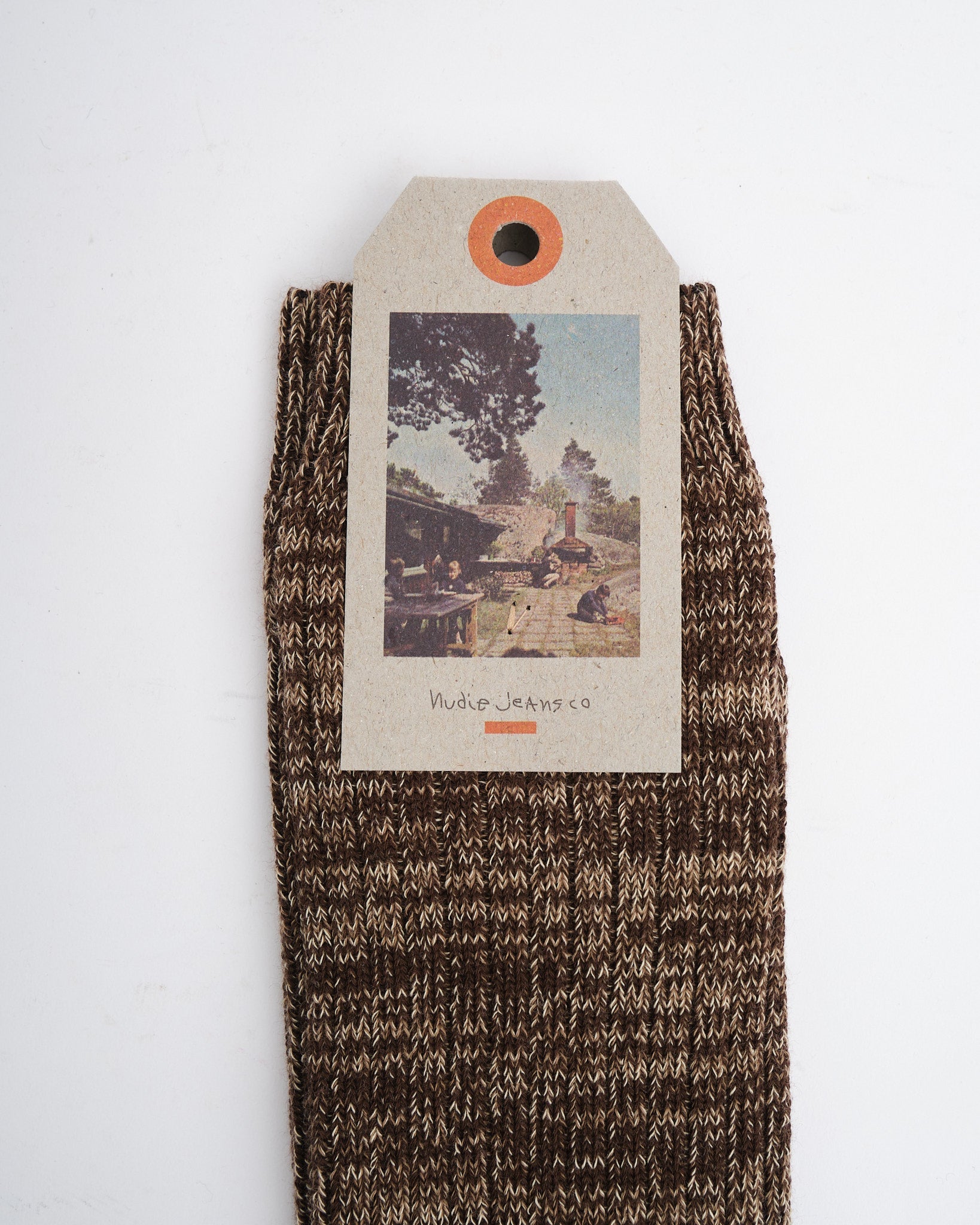 Die NUDIE JEANS CO. RASMUSSON HERREN RIPPENSOCKEN BROWNMELANGE bieten sowohl Komfort als auch zeitlosen Stil, gefertigt in einem weichen mittelschweren 3x1 Rippstrick für eine enganliegende, doch atmungsaktive Passform. Die Mischung aus braunen Garnen erzeugt einen reichhaltigen Melange-Effekt, der diesen Socken ein klassisches, texturiertes Aussehen verleiht.