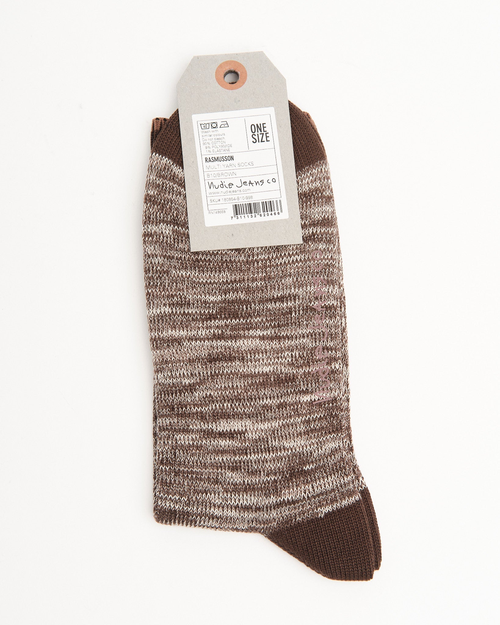 Rasmusson Multi Yarn Socken Braun von Nudie Jeans Co. Einheitsgröße Socken aus Bio-Baumwolle. Halbfeines Strickmuster mit Streifendetails. Vergiss nicht, deine Füße zu verwöhnen! Hergestellt in Portugal